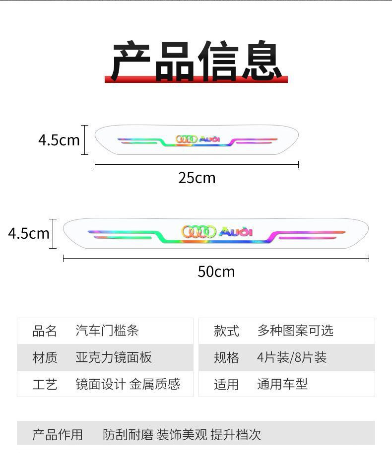 새로운 문 문턱 스티커 다채로운 아크릴 거울 문턱 스트립 내마모성 자동차 문턱 보호 스크래치 방지 스티커스토어 가기