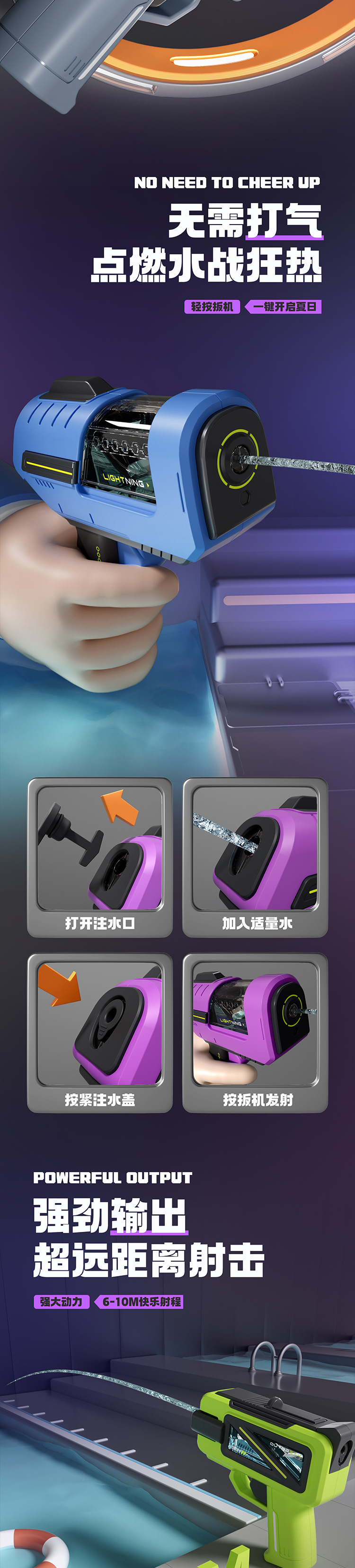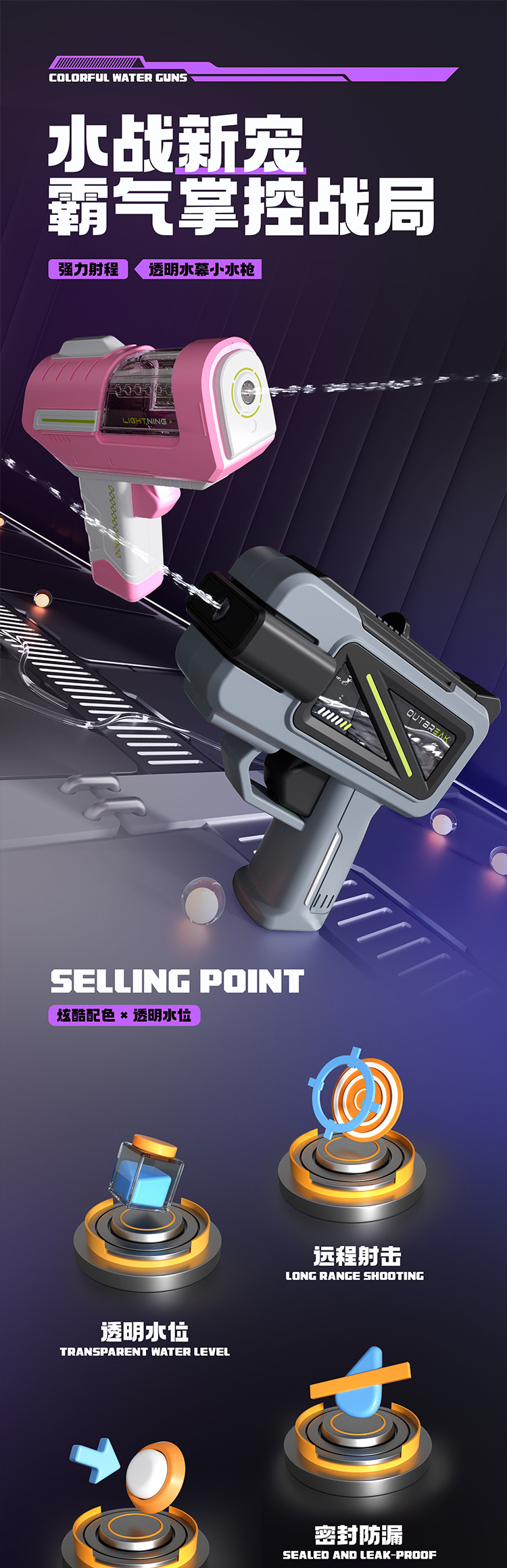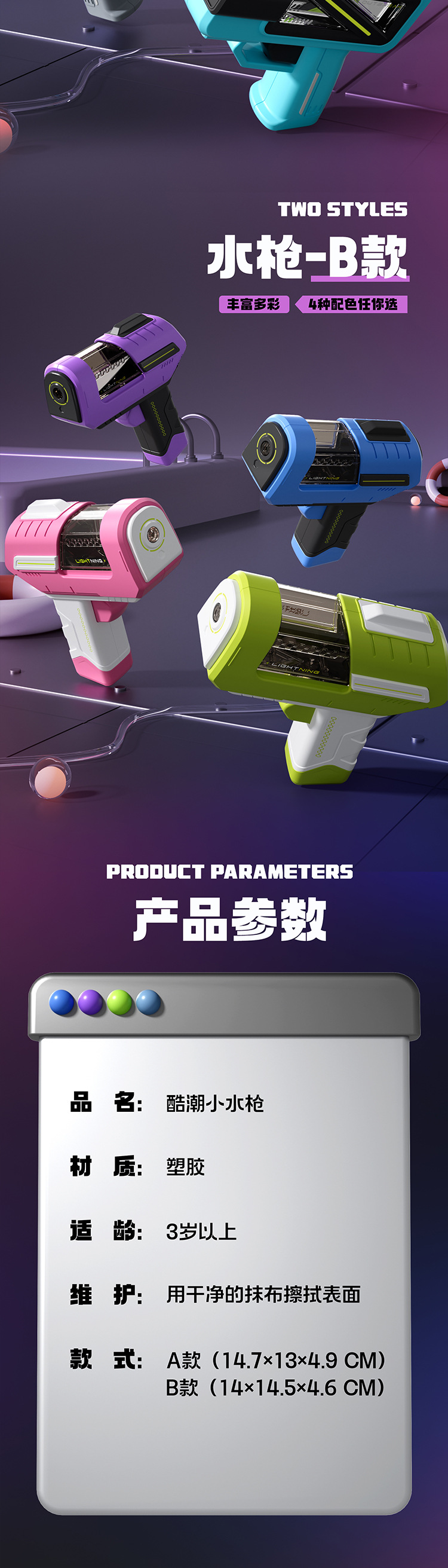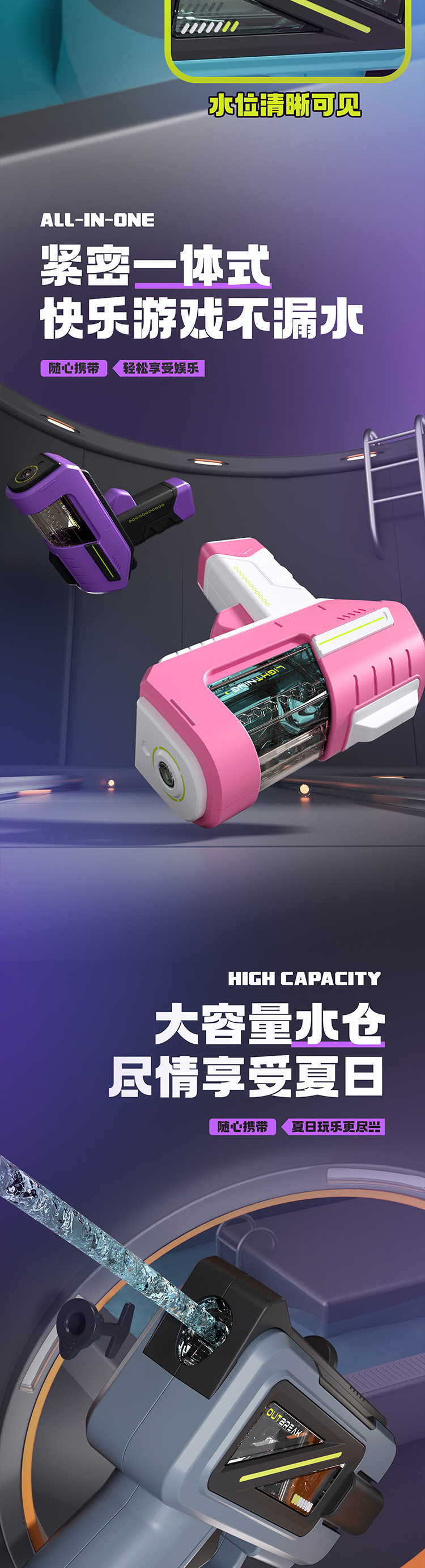 • 보라색 사각형 시원한 조수 물 총