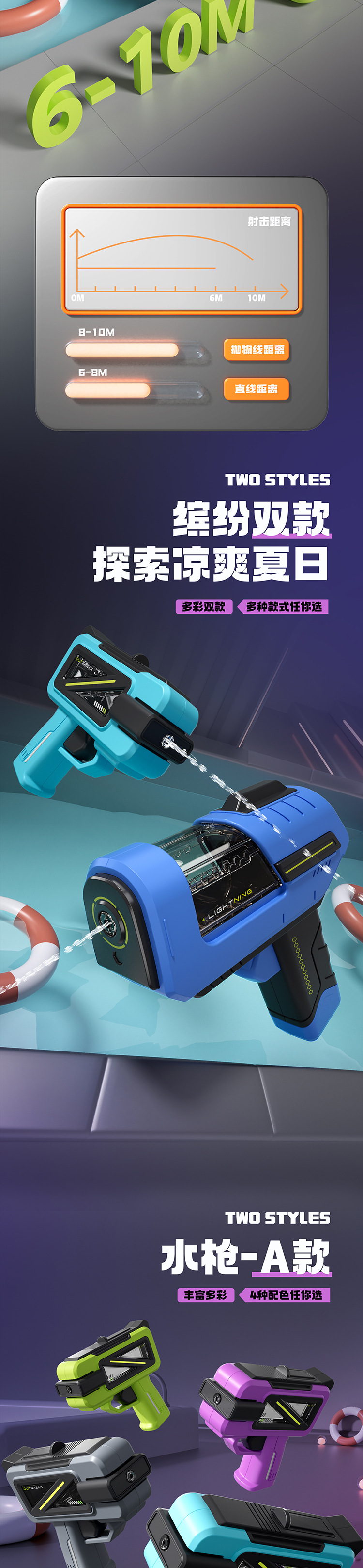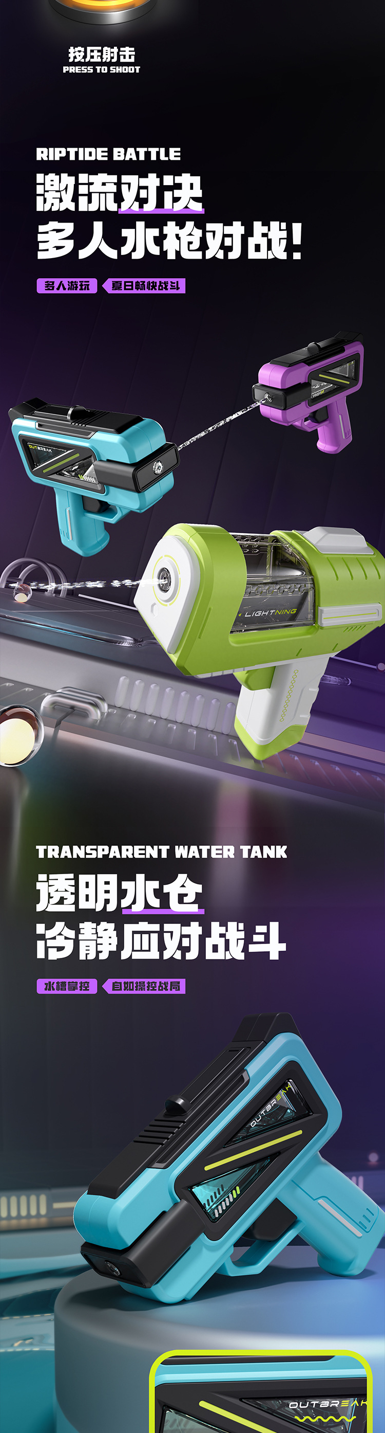 테크 스타일 물총, 고압 연사 대용량 물놀이 장난감, 어린이용 물싸움 장난감, 트렌디한 스타일