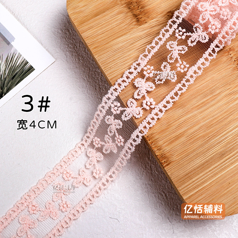 핑크 밀크 실크 레이스 중공 레이스 메쉬 간단한 한국식 활 부케 스트랩 선물 포장 액세서리