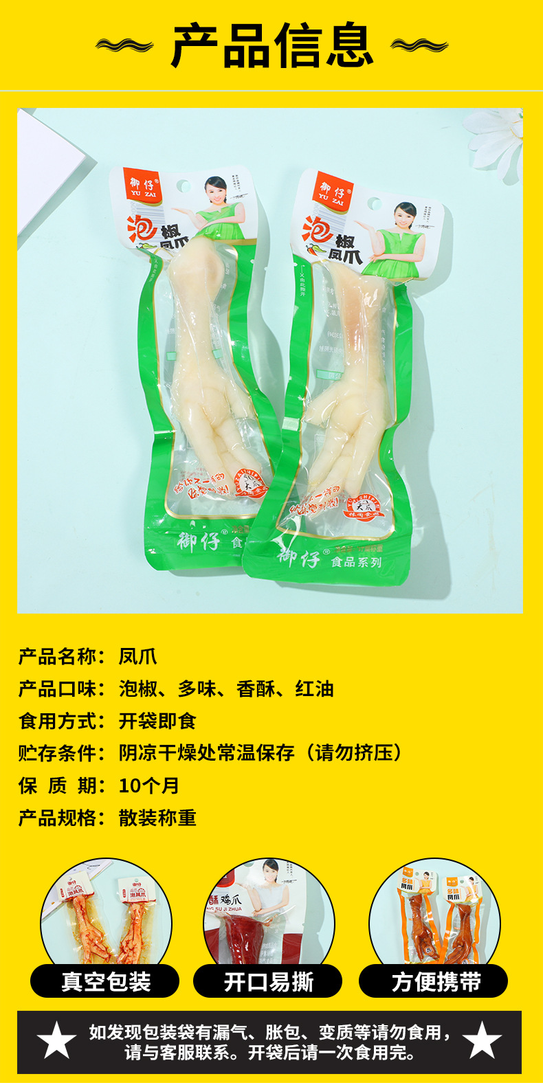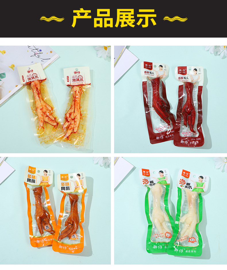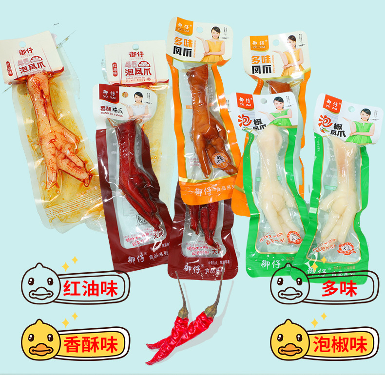 Yuzai 멀티 맛 치킨 피트 오픈 백 인스턴트 절인 후추 절인 닭 발 매운 닭 발 캐주얼 절인 치킨 스낵 도매