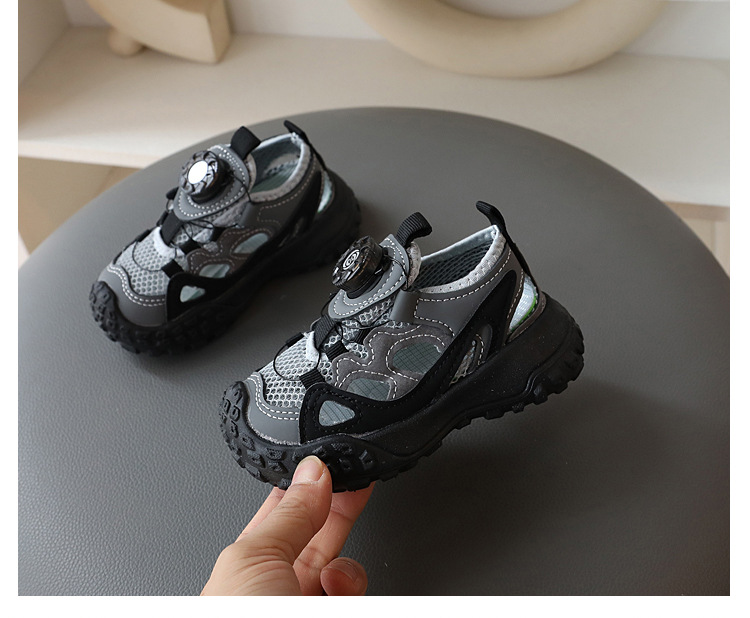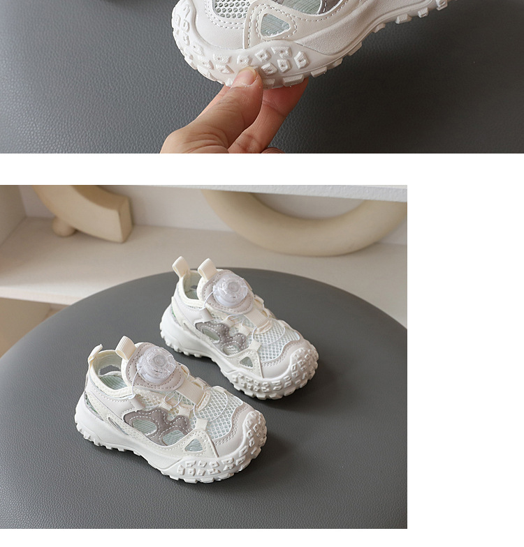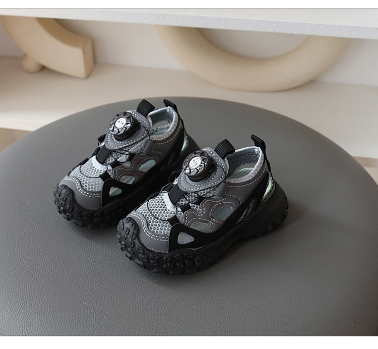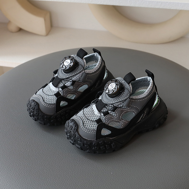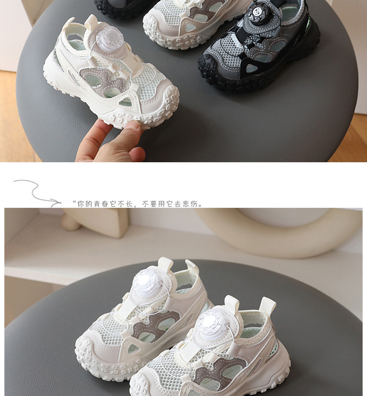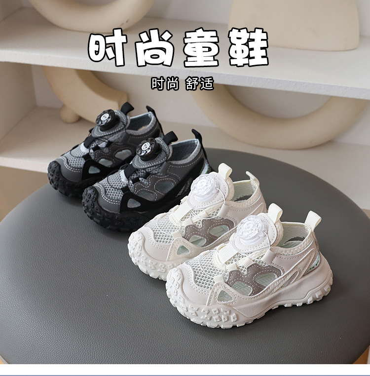 2024 년 여름 새로운 어린이 세미 샌들 중공 싱글 메쉬 통기성 캐주얼 슈즈 남성 베이비 아동용 소프트 하단 미끄럼 방지 신발