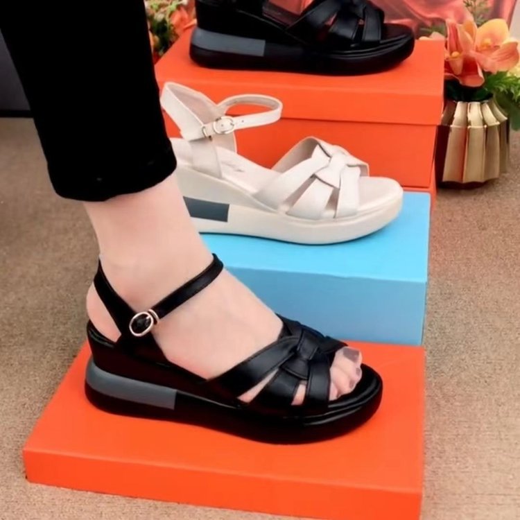국경 간 여름 새로운 아마존 부드러운 밑창 엄마 샌들 한 단어 버클 패셔너블하지 않은 두꺼운 밑바닥으로 된 슬로프 샌들 여성용스토어 가기