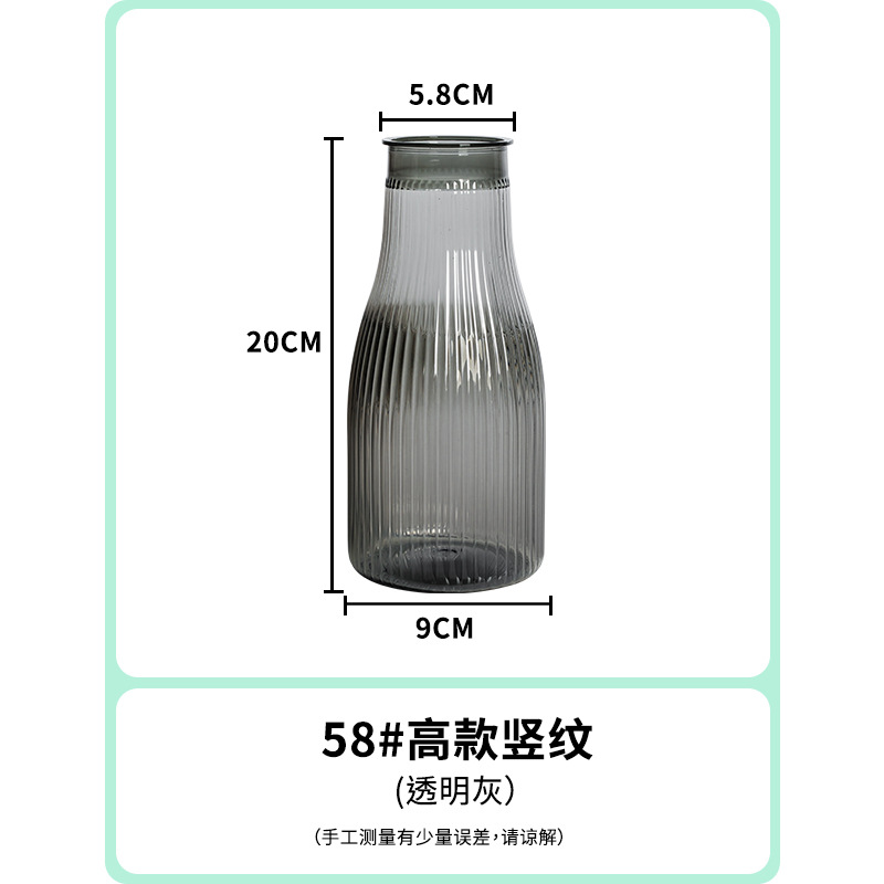 • 58 # 높은 수직 곡물 병 (투명 회색)
