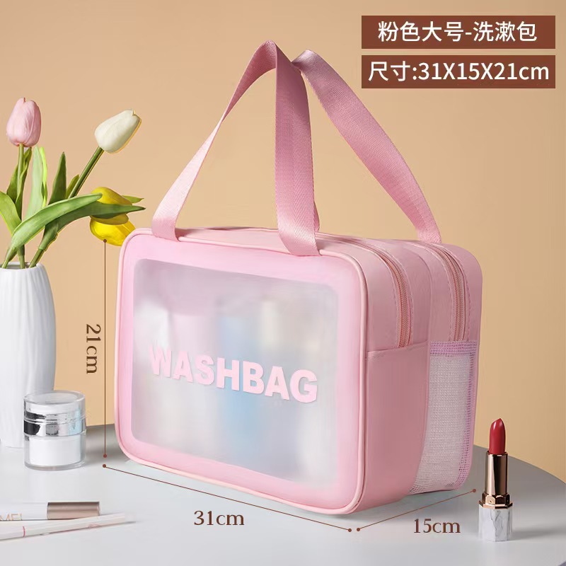휴대용 대용량 저장 가방 수영 가방 투명 워시 백 여행 프로스트 화장품 PU 방수 화장품 가방스토어 가기