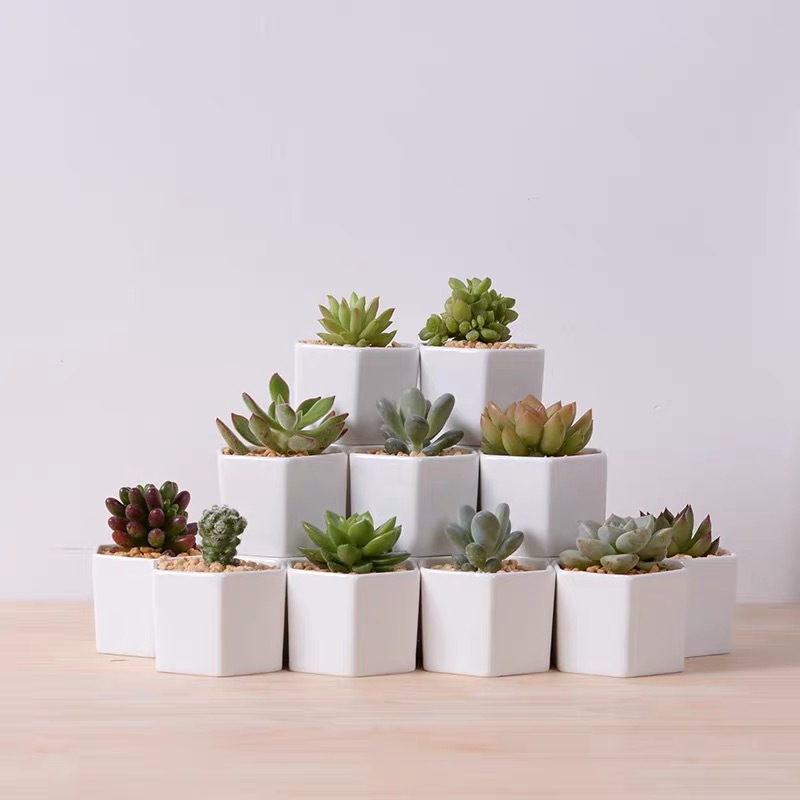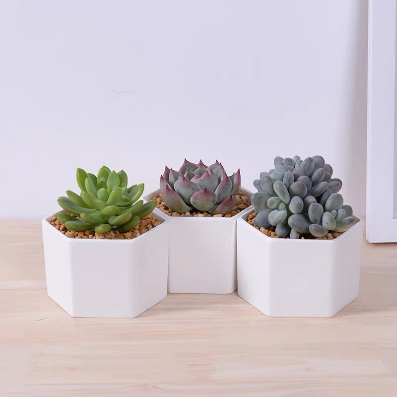 작은 육각형 다육 식물 냄비 세라믹 창조적 인 간단한 꽃 냄비 구멍 통기성 실내 사무실 개인화 된 귀여운 다육 질 꽃 냄비