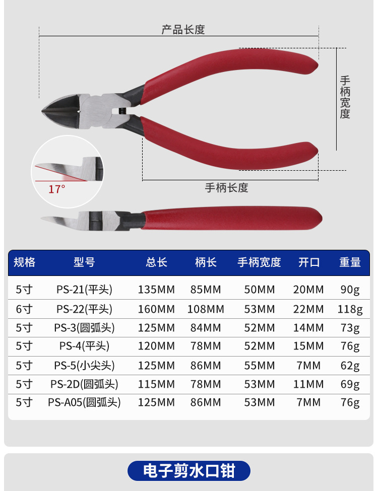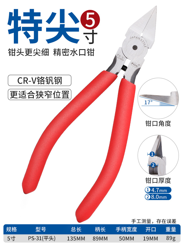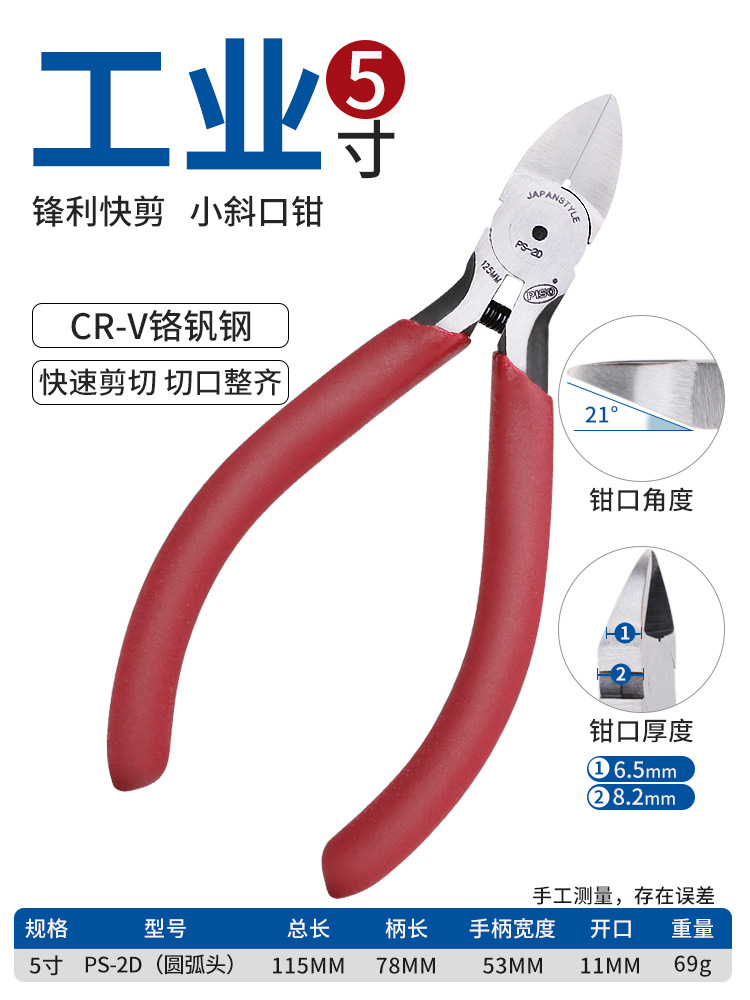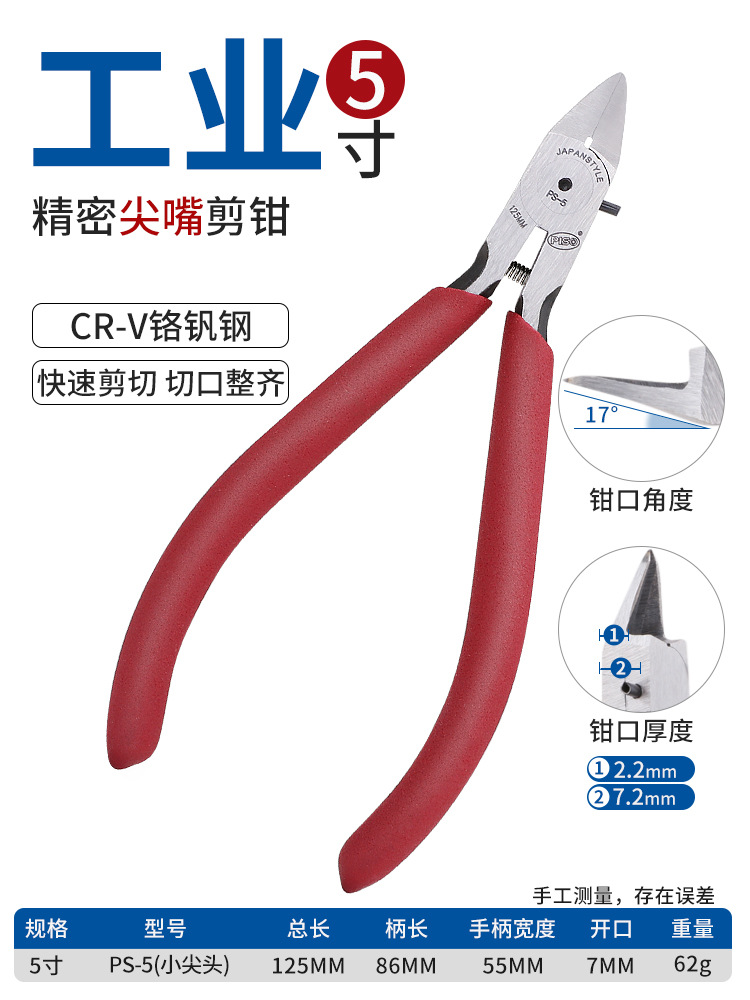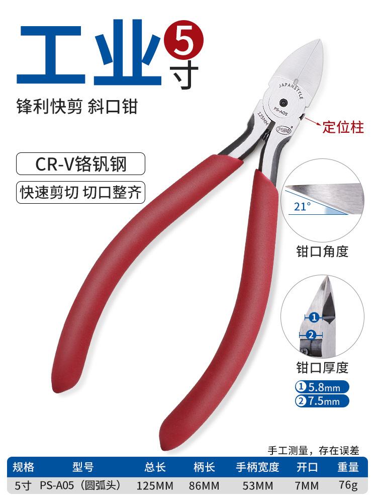 • 5inch [산업용 강화 모델] 대각선 펜치 레드 A05