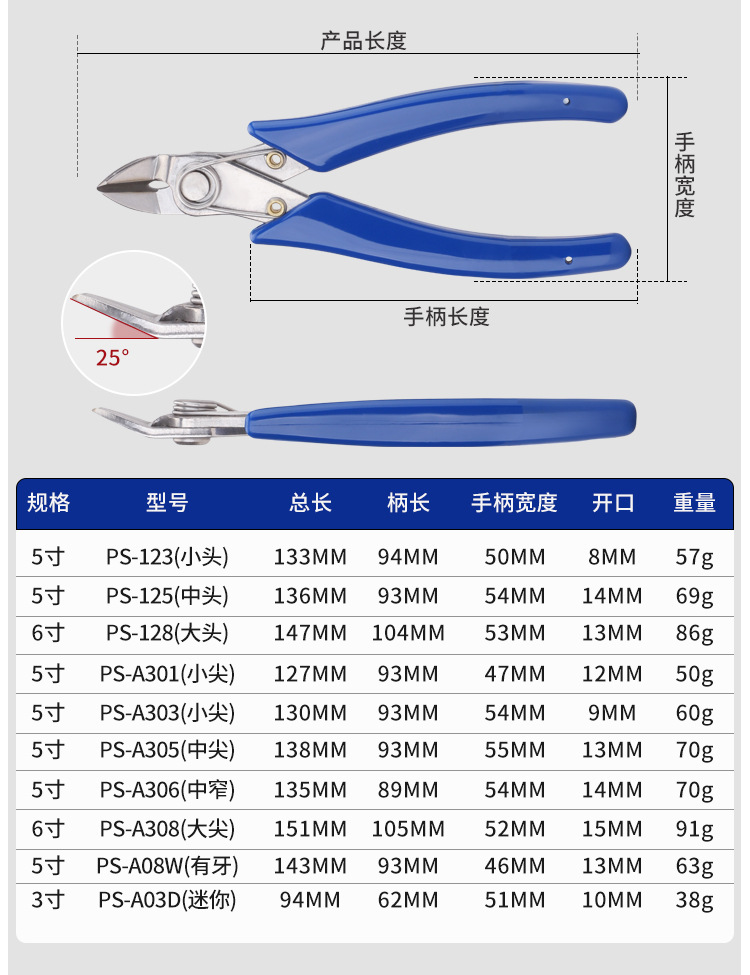• 5inch [고급 스테인레스 스틸] 소형 와이드 커팅 플라이어 306