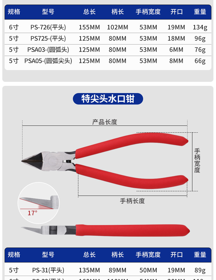 • 5inch [산업용 강화 모델] 소형 노즐 플라이어 레드 04