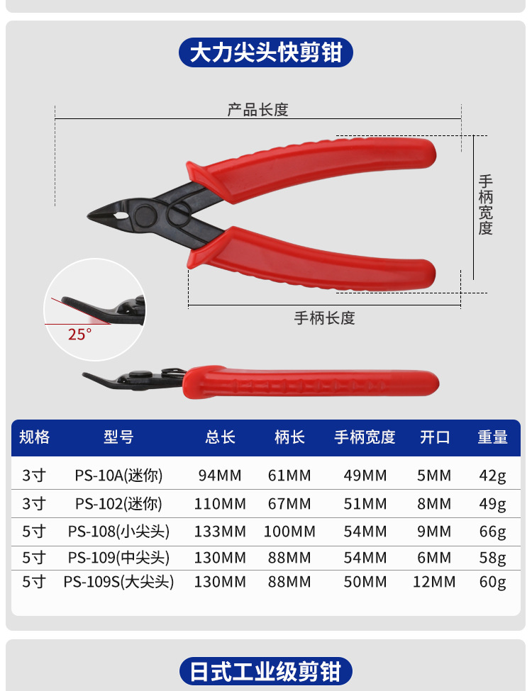 스톡포트 펜치, 와이어 절단용 펜치, 편향된 입과 경사진 입으로 강철 와이어를 절단할 수 있는 산업용 고경도 모델 수입 경사진 펜치스토어 가기