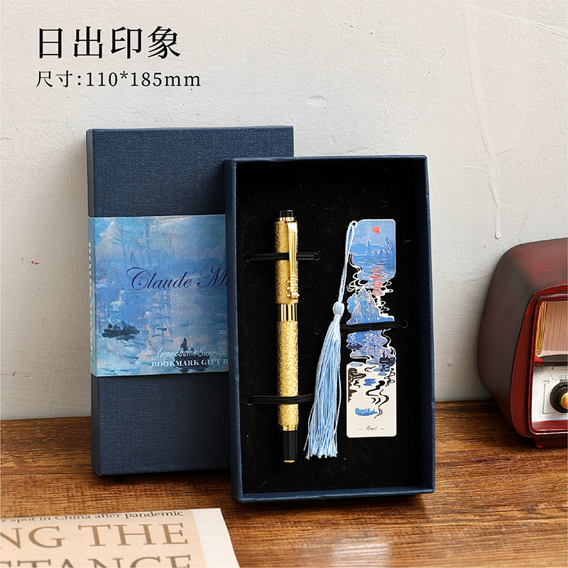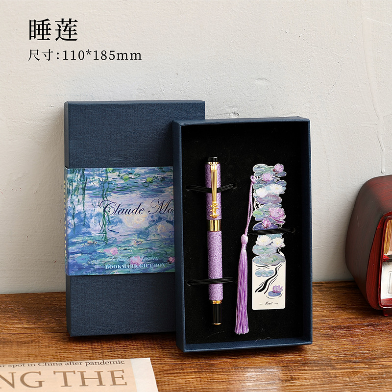 • 유명한 그림 유화 북마크와 펜 선물 상자-수련