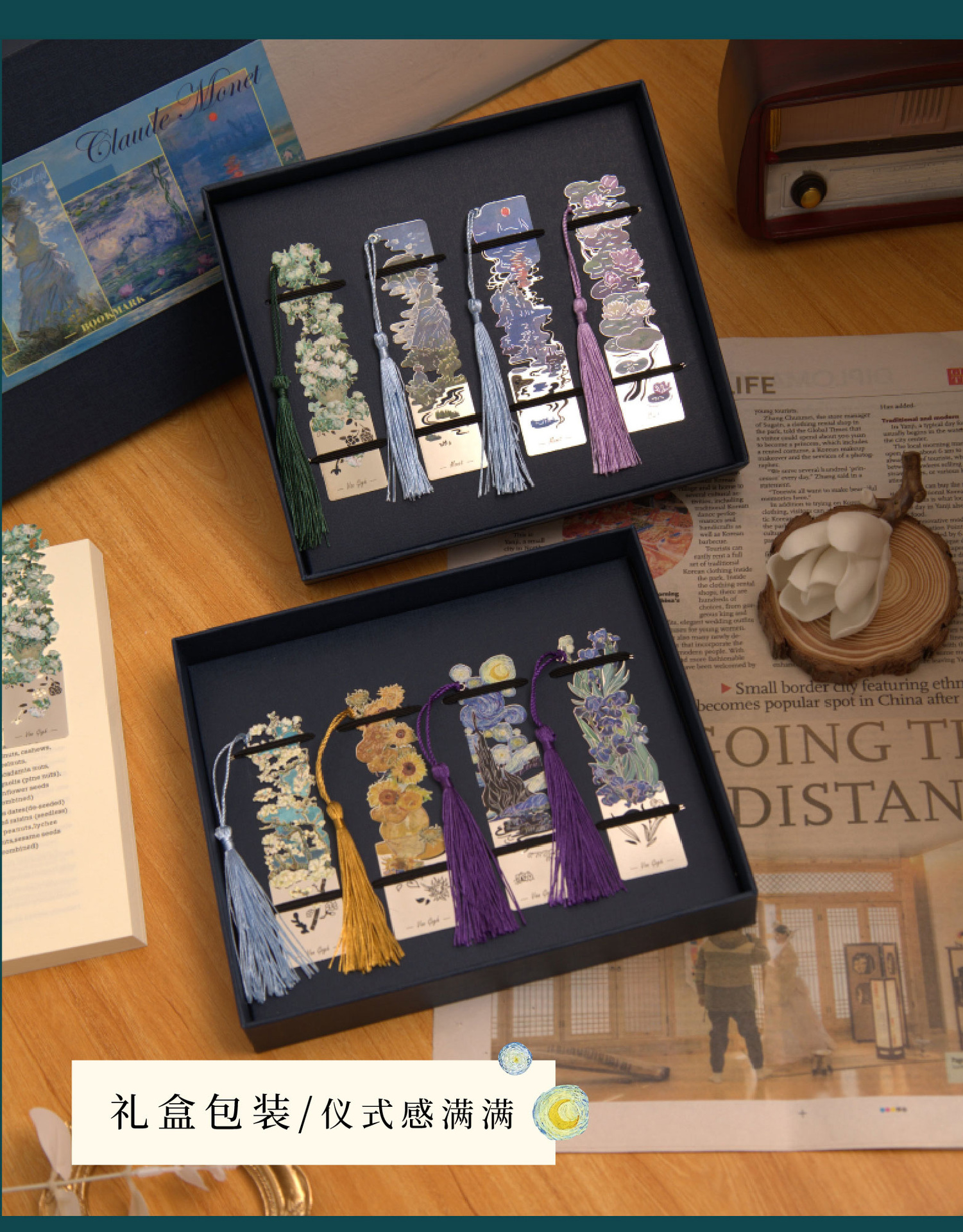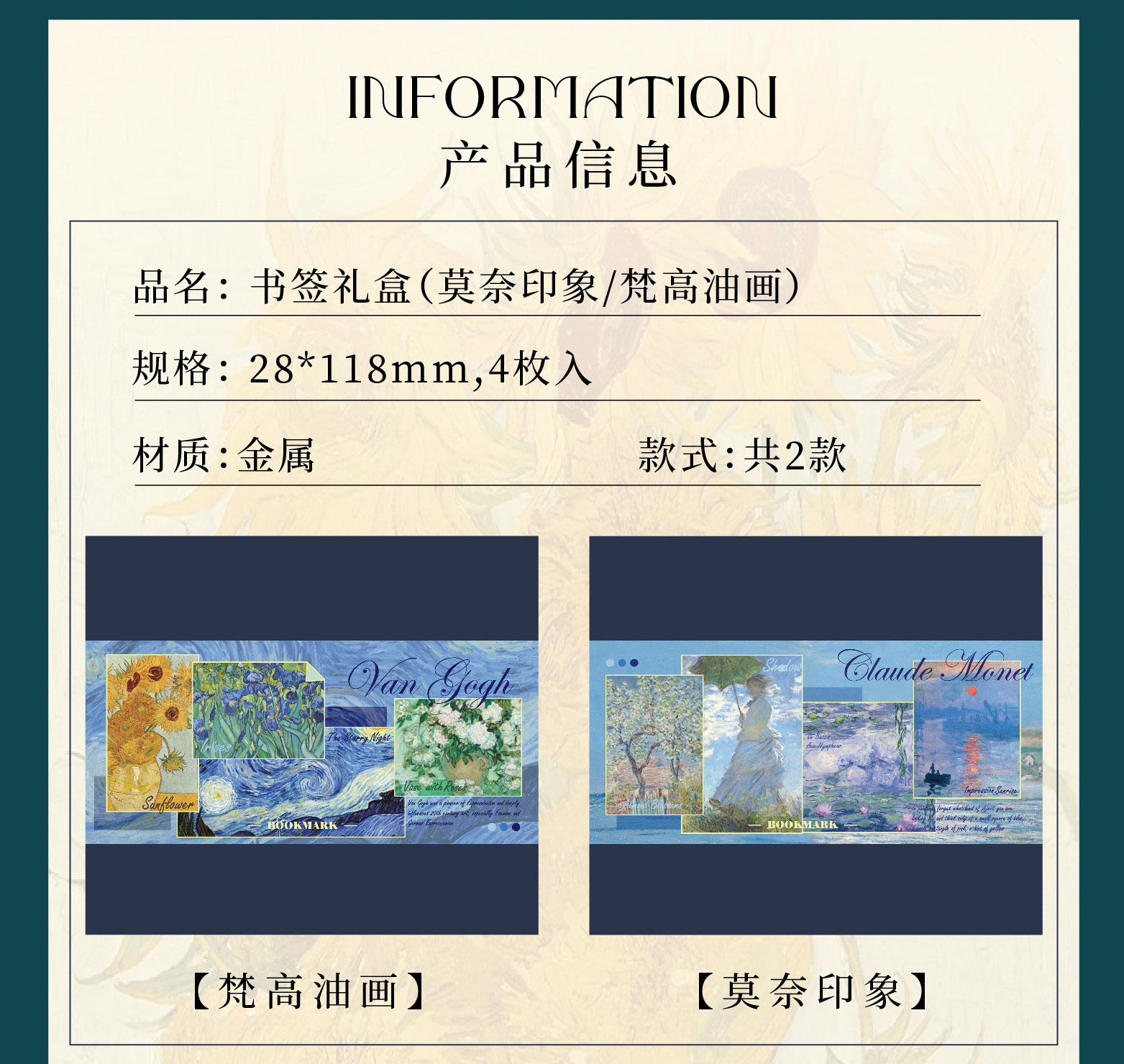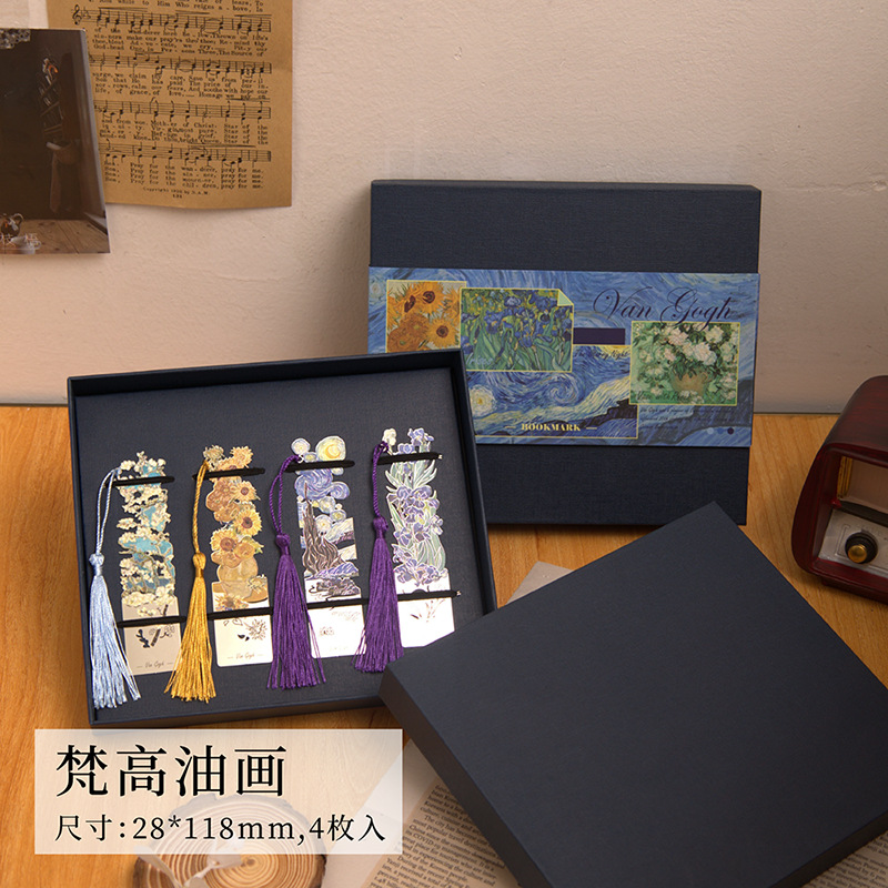 • 유명한 회화 유화 책갈피 4 팩 선물 상자-반 고흐 유화