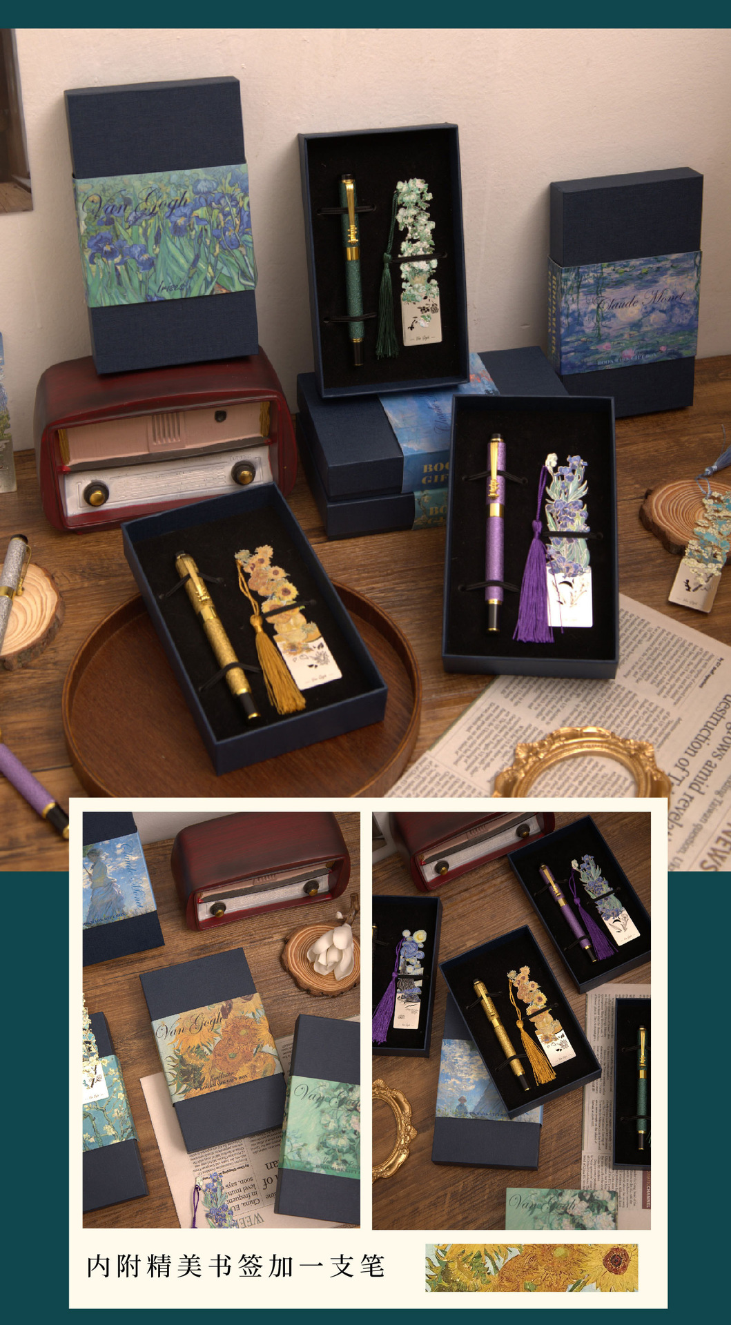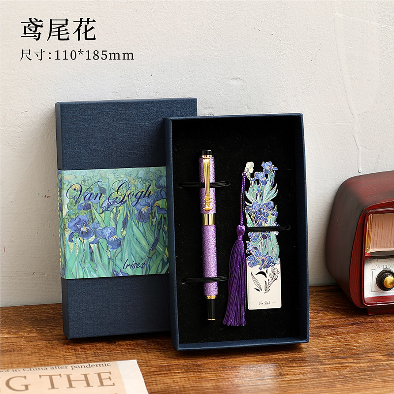 • 유명한 그림 유화 북마크와 펜 선물 상자-아이리스