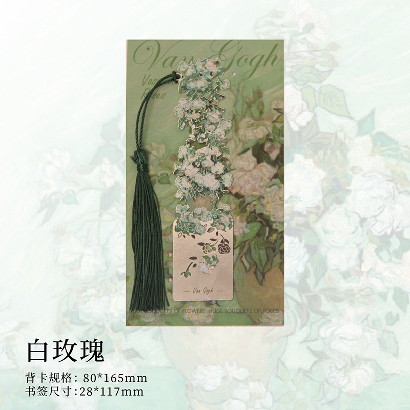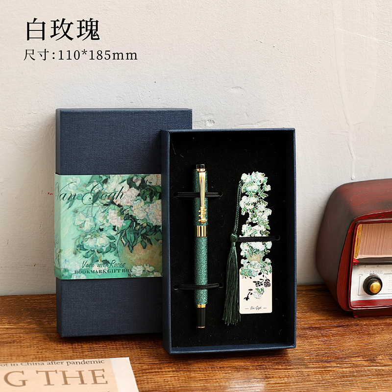 • 펜 선물 상자와 함께 유명한 그림 유화 북마크-화이트 로즈