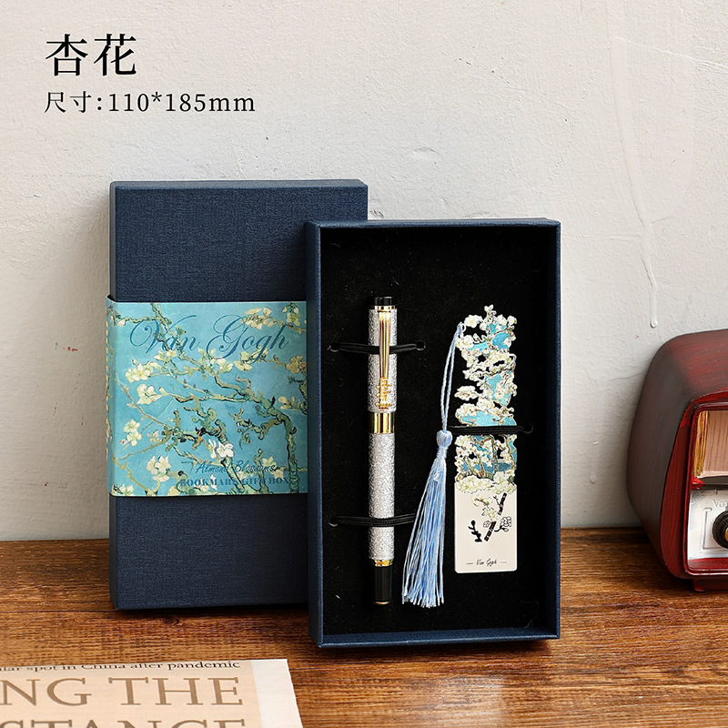 • 유명한 그림 유화 북마크와 펜 선물 상자-살구색 꽃