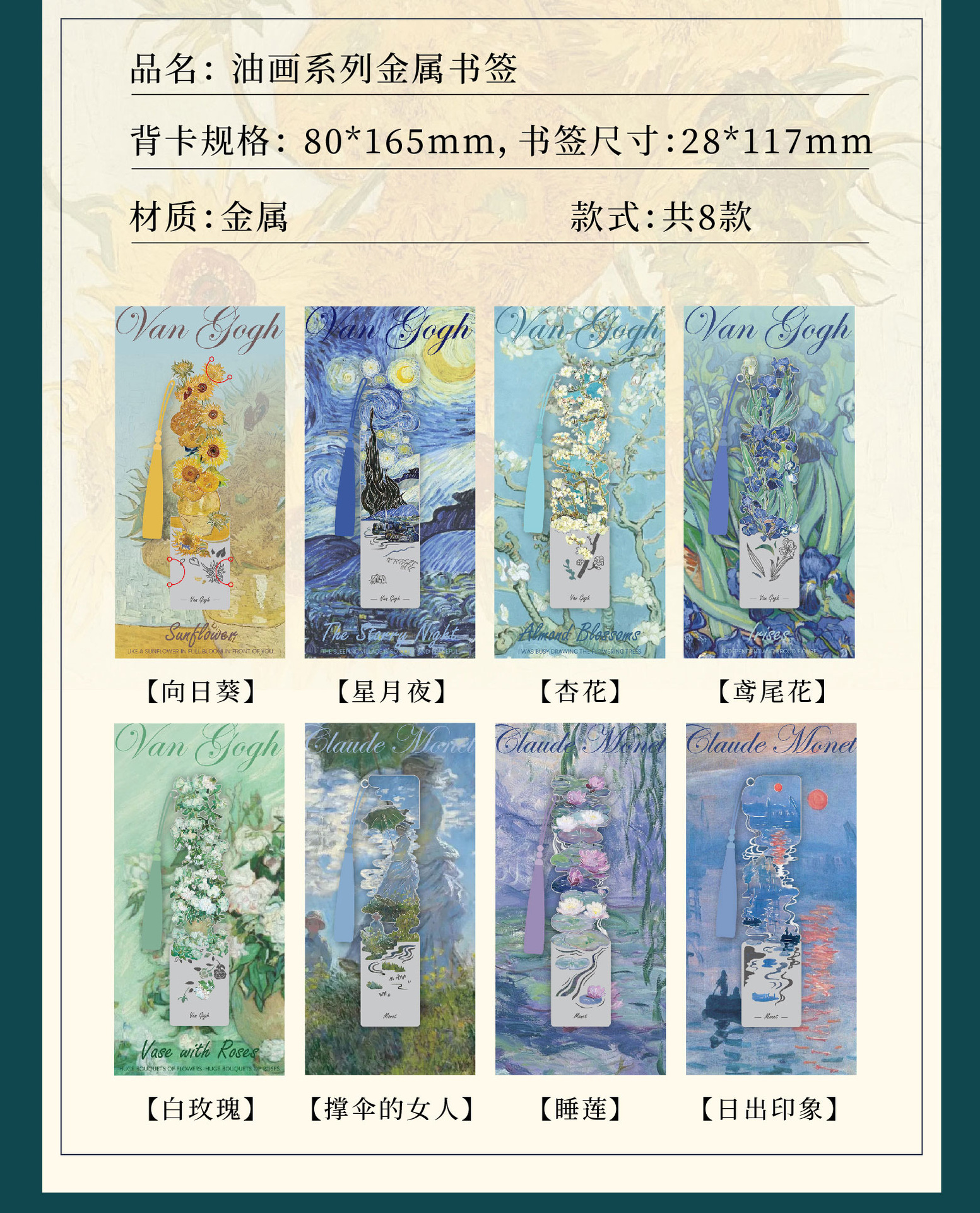 유화 스타일 복고풍 유명한 그림 금속 북마크 유명한 그림 유화 북마크 시리즈 손 계정 독서 책 클립 책 버클 펜던트스토어 가기