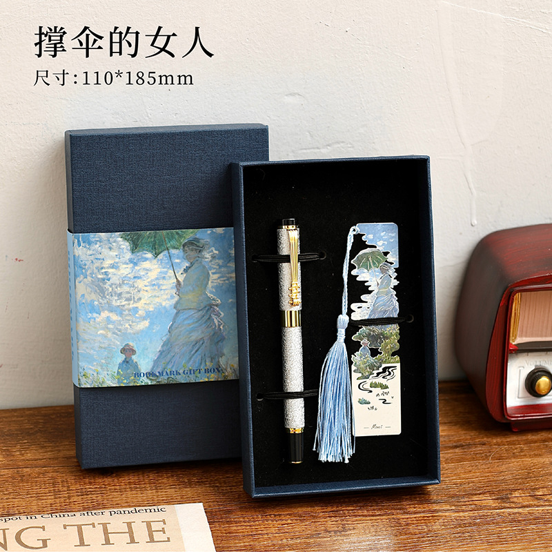• 유명한 그림 유화 북마크와 펜 선물 상자-우산 여자
