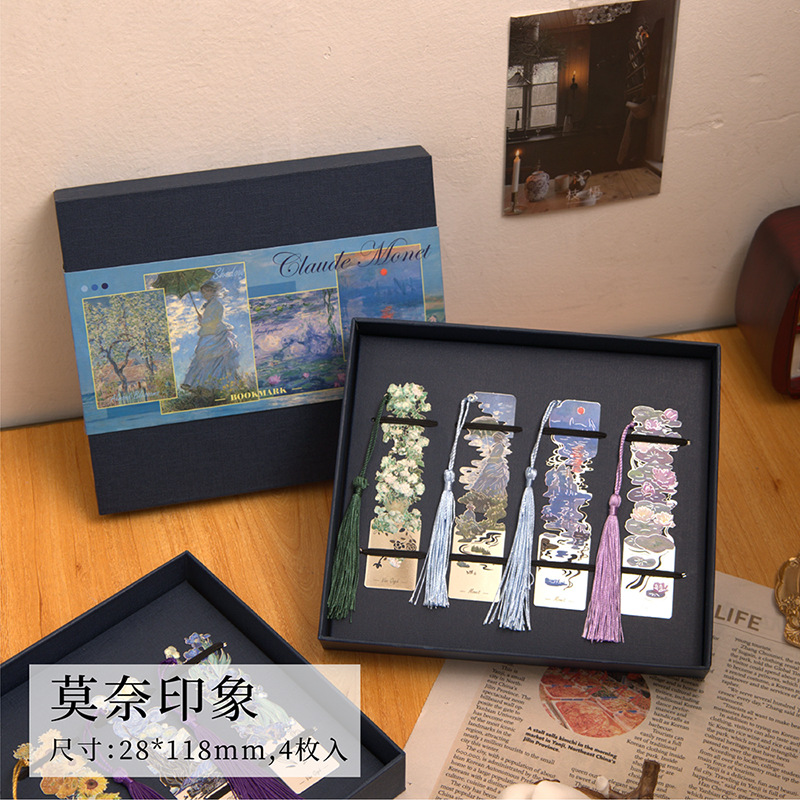 • 유명한 그림 유화 북마크 4 팩 선물 상자-모네 인상