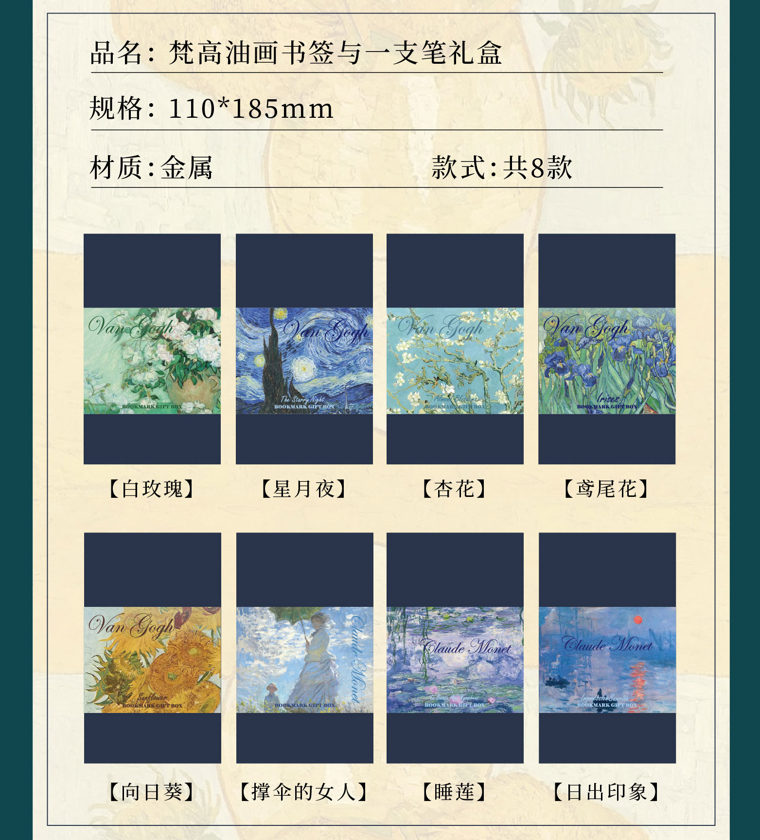 • 유명한 그림 유화 북마크와 펜 선물 상자-별이 빛나는 달의 밤