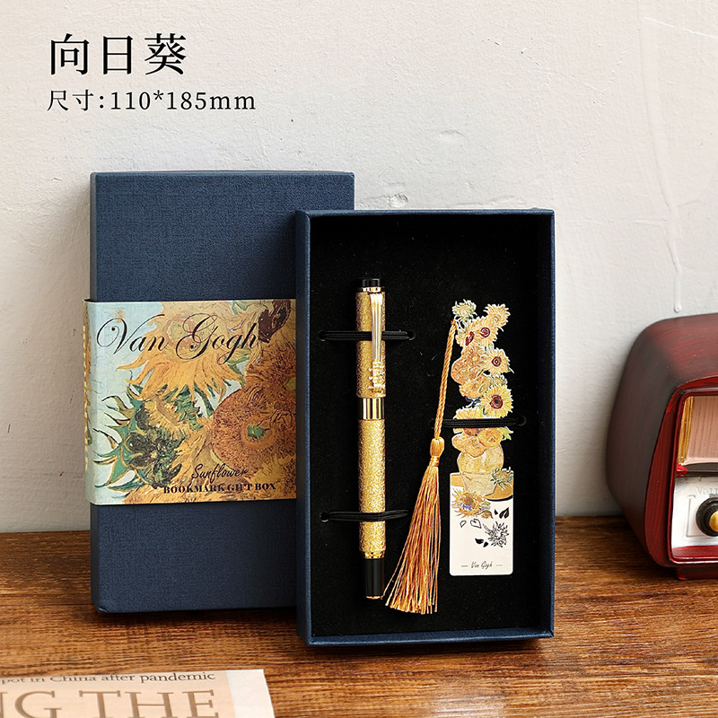 • 유명한 그림 유화 북마크와 펜 선물 상자-해바라기