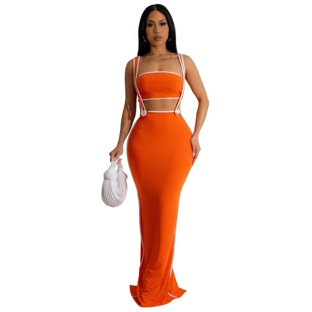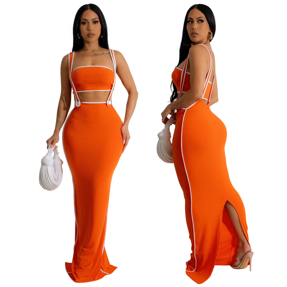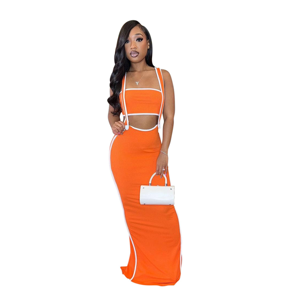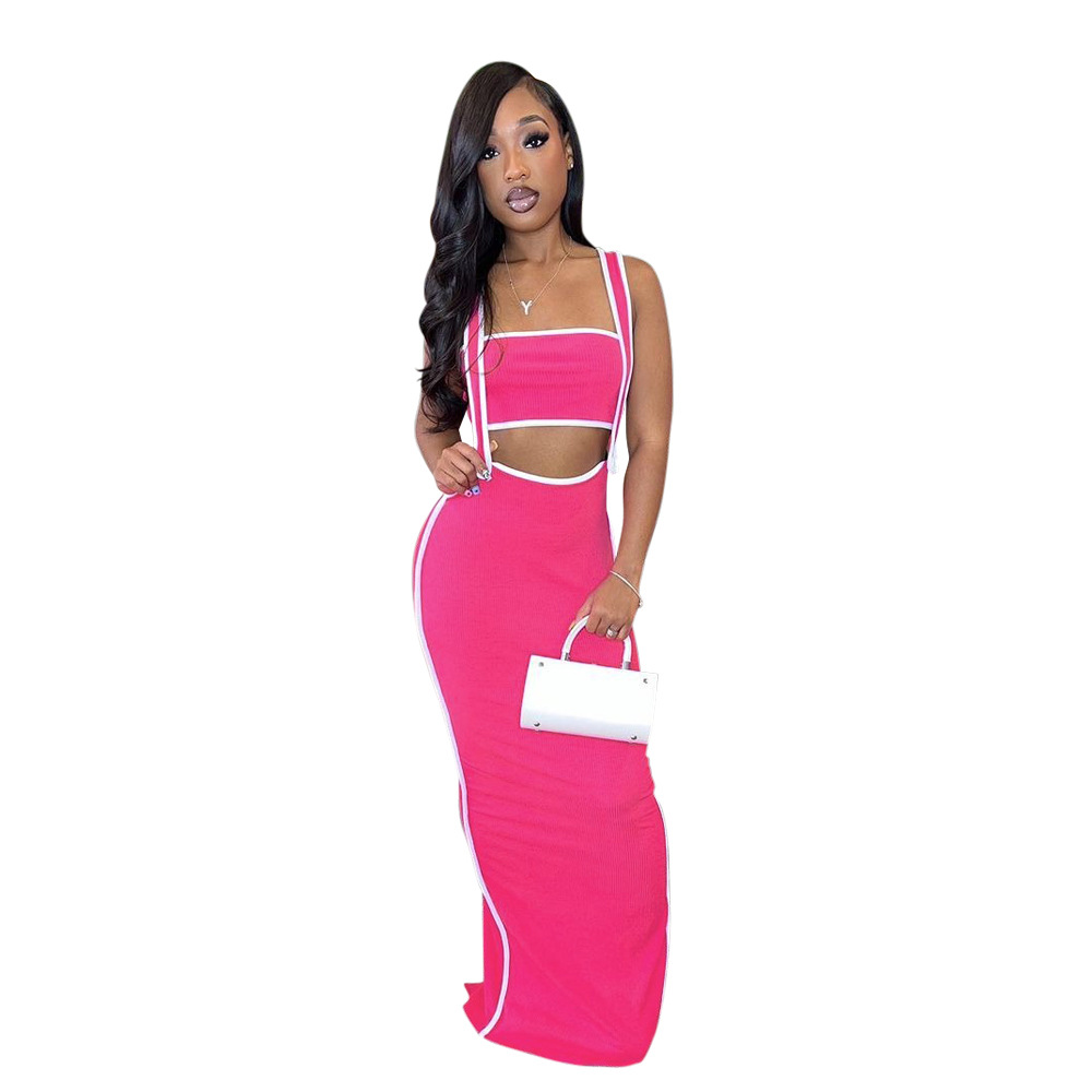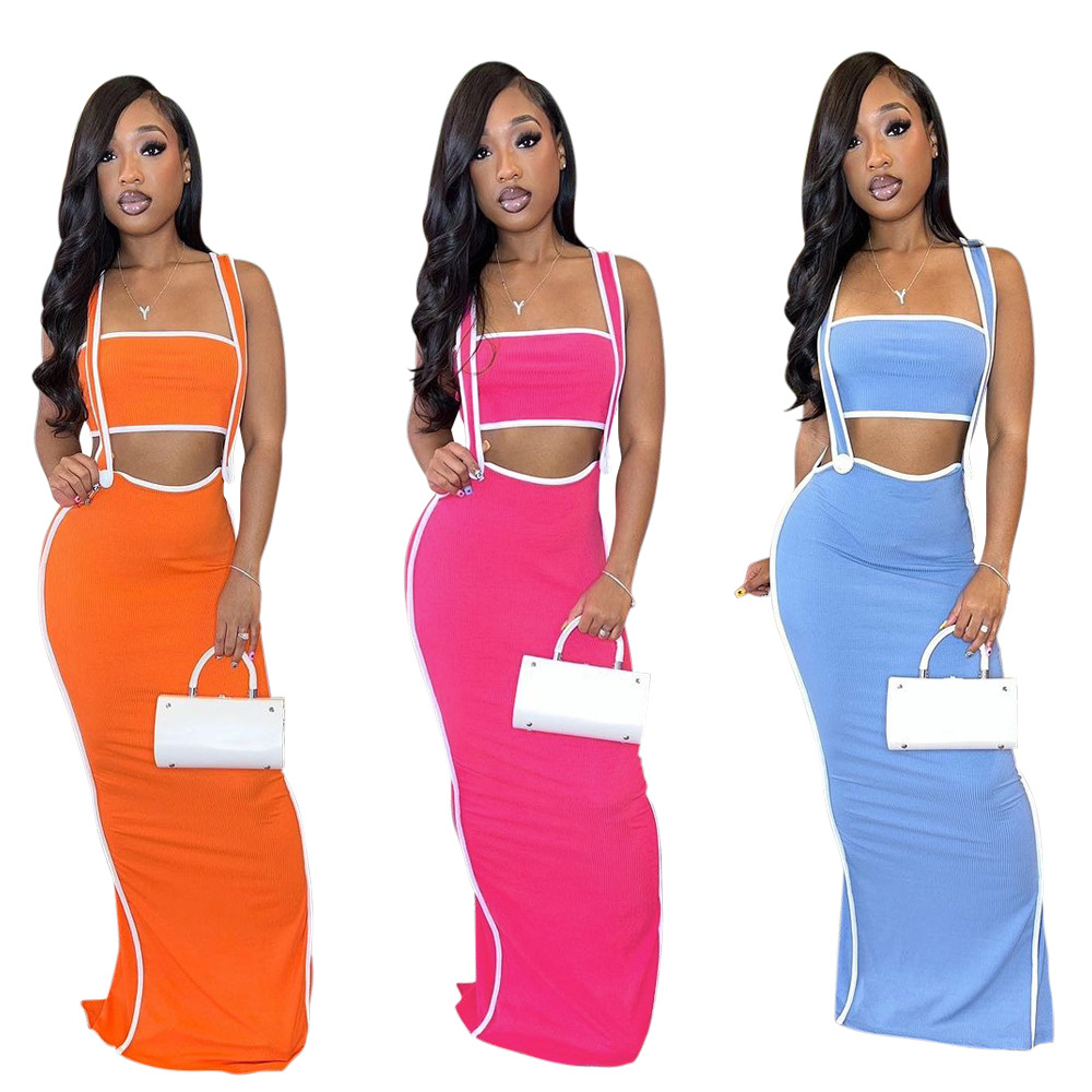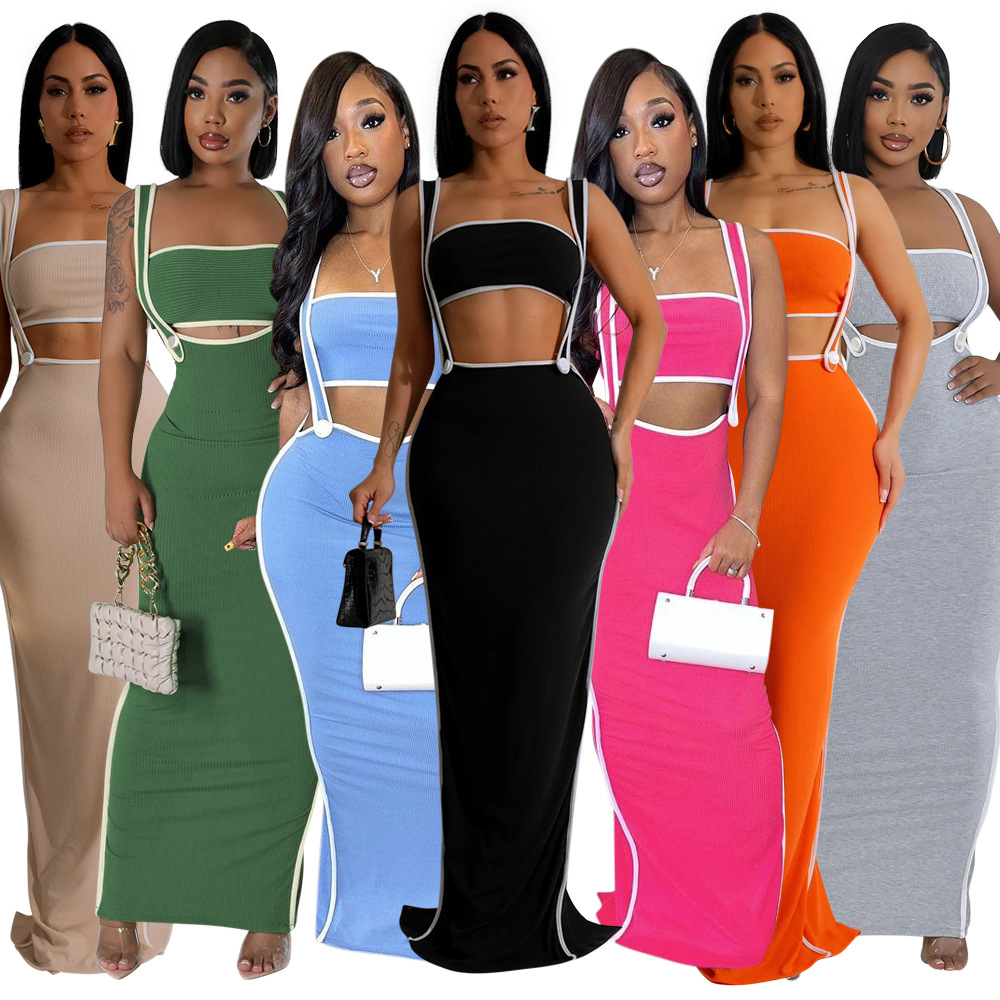 CY901205 유럽과 미국 아마존 새로운 패션 섹시 슬링 힙합 원피스 스트랩리스 솔리드 컬러 투피스 세트