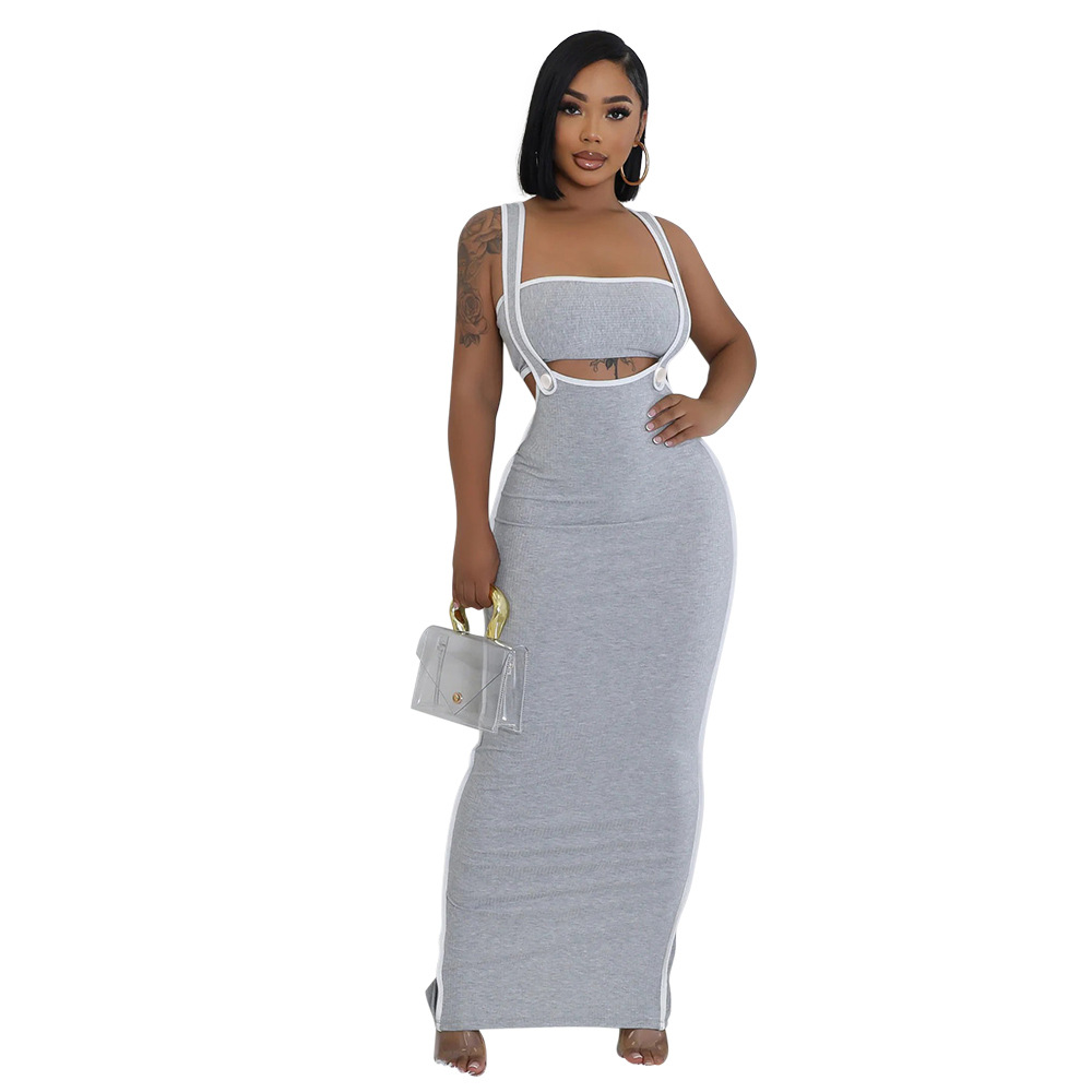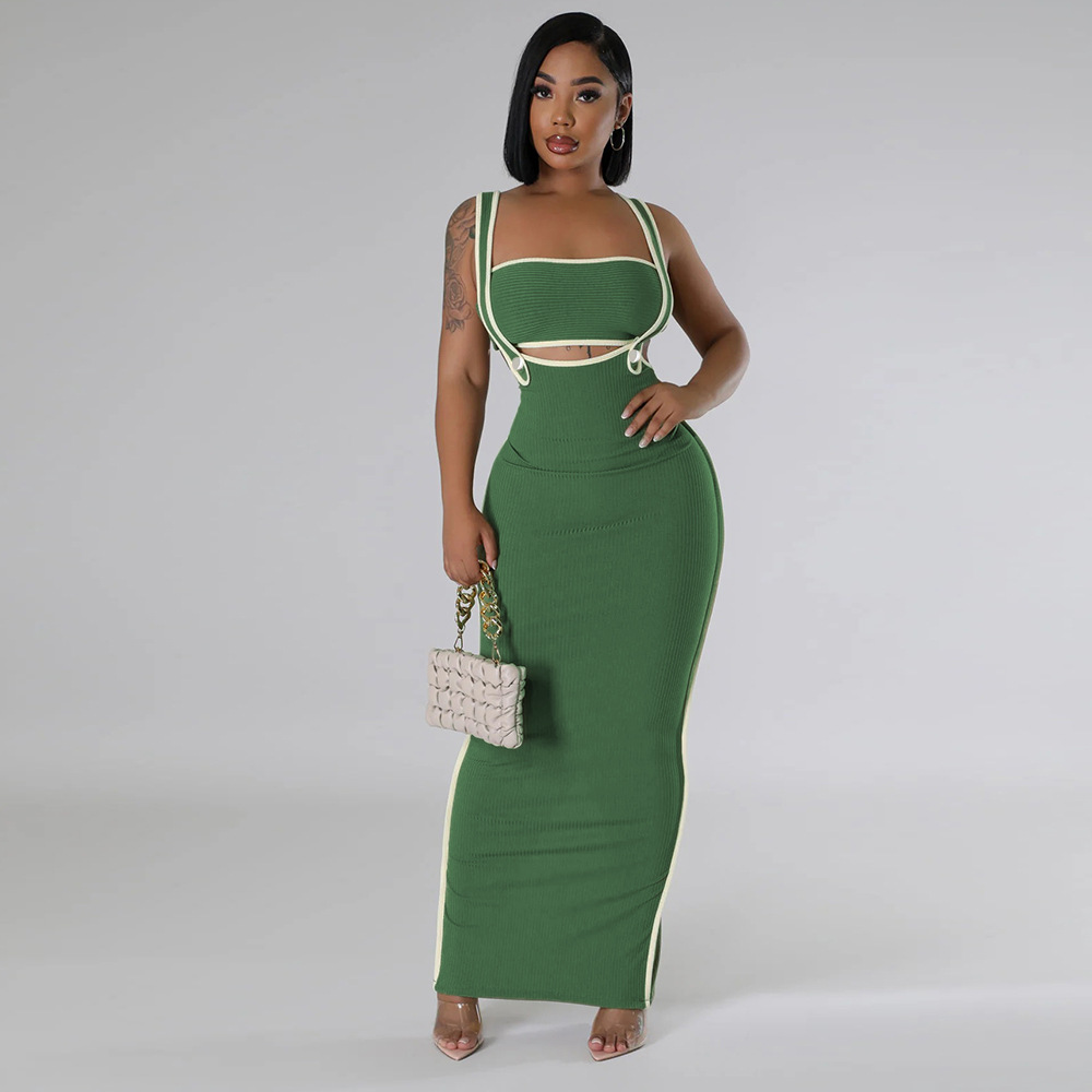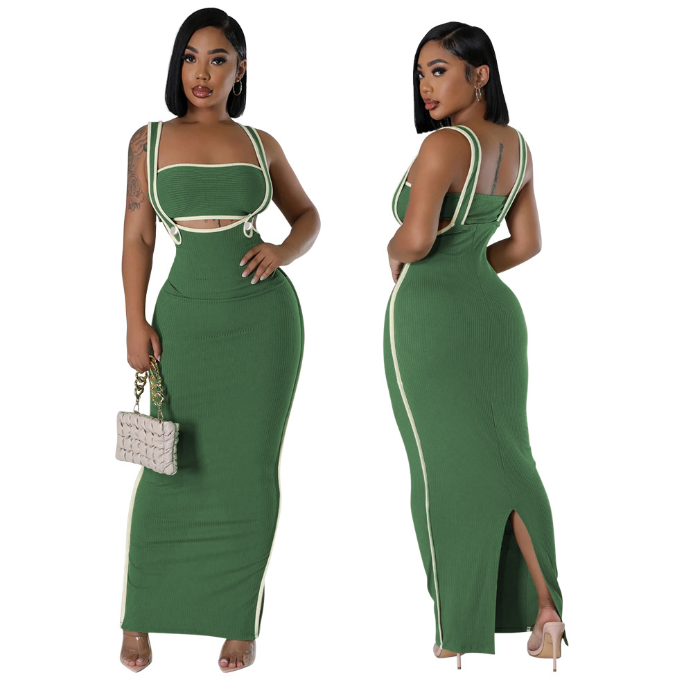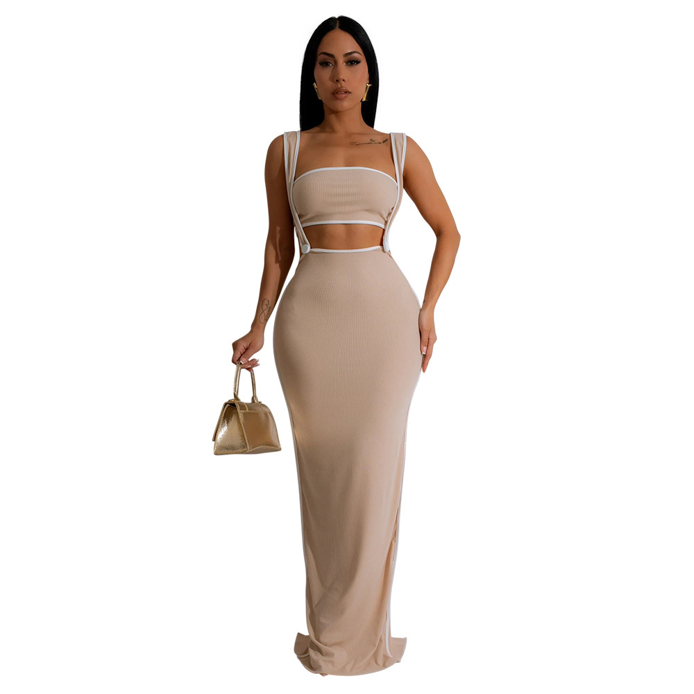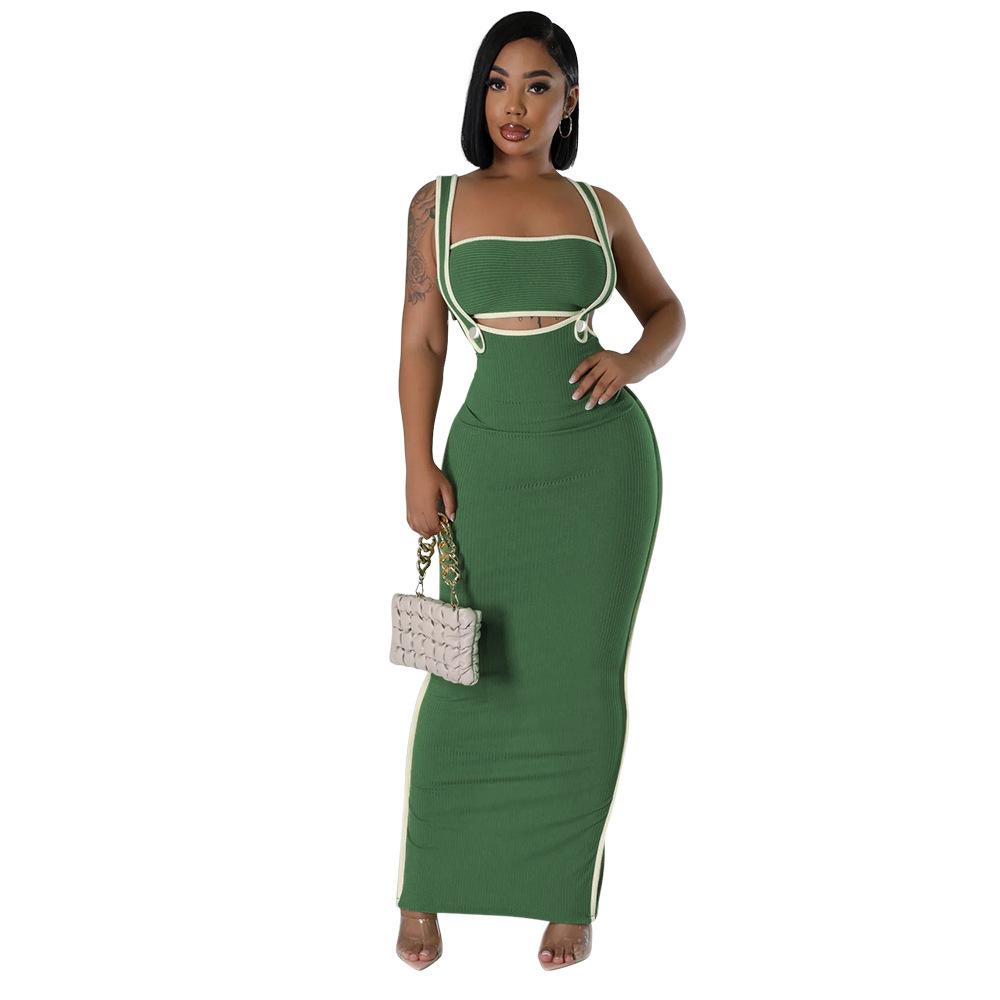CY901205 유럽과 미국 아마존 새로운 패션 섹시 슬링 힙합 원피스 스트랩리스 솔리드 컬러 투피스 세트