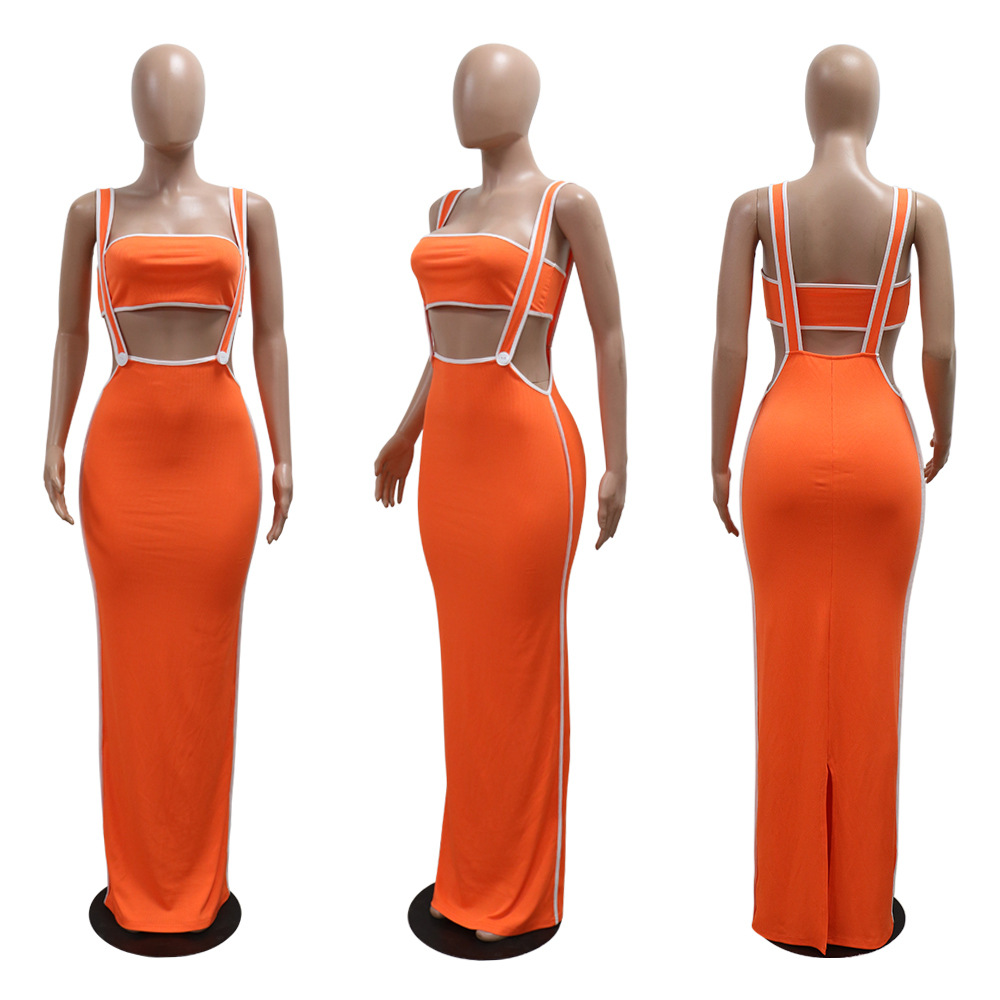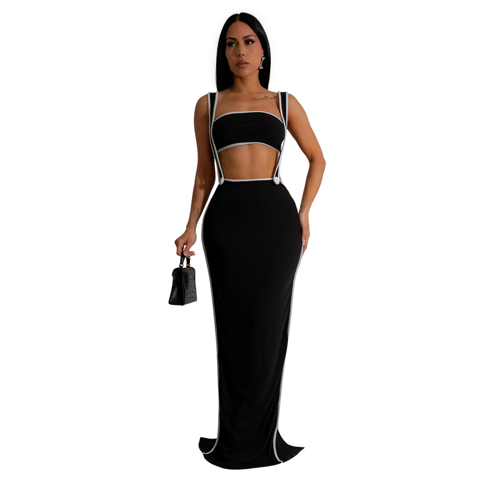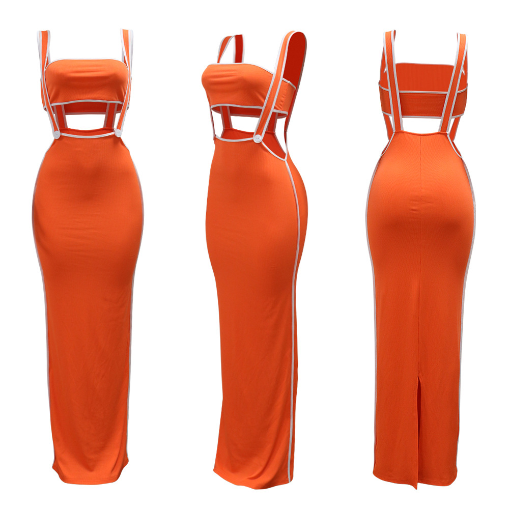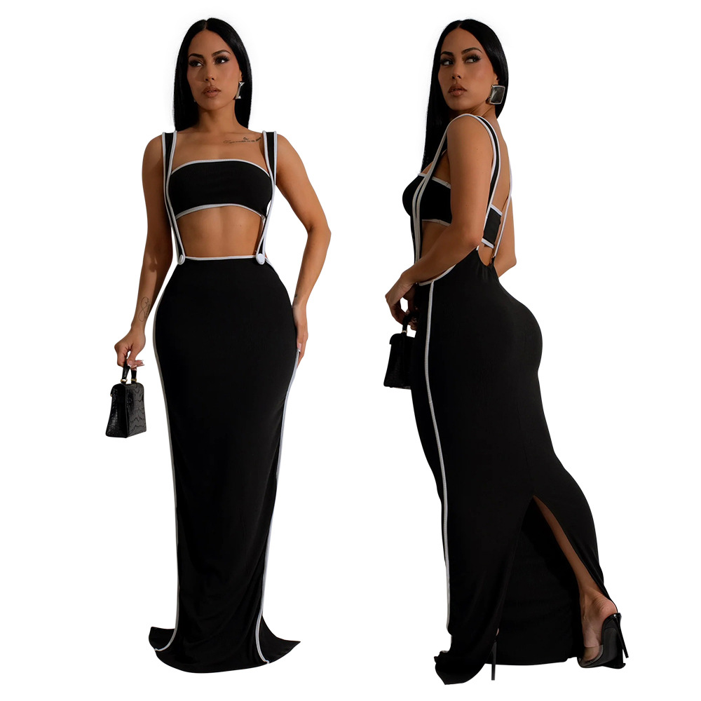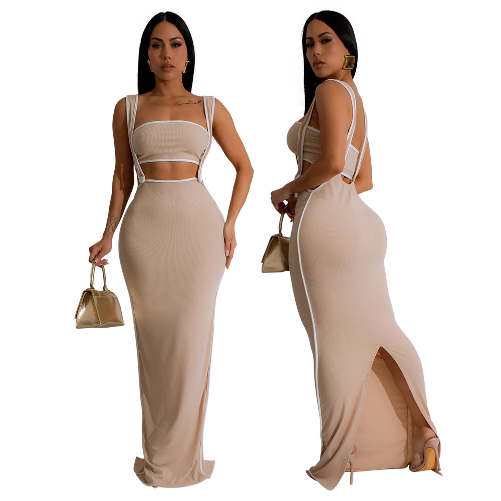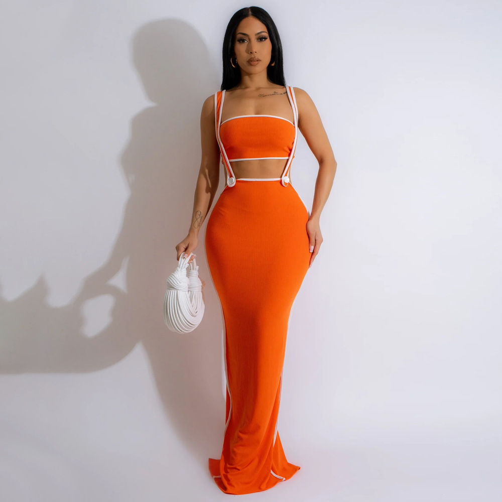 CY901205 유럽과 미국 아마존 새로운 패션 섹시 슬링 힙합 원피스 스트랩리스 솔리드 컬러 투피스 세트