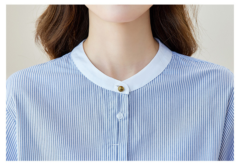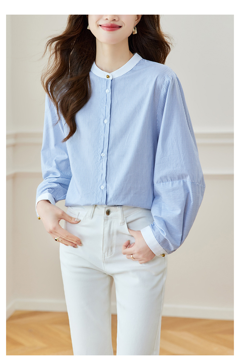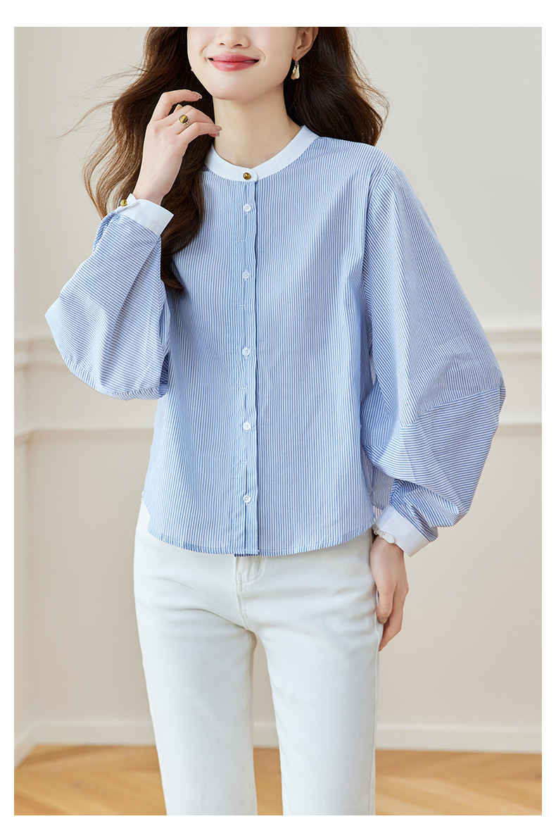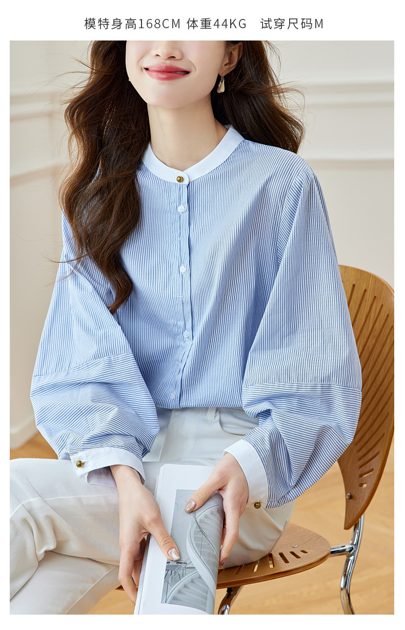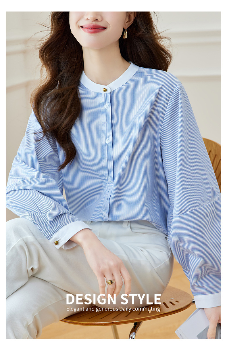 블루 스트라이프 셔츠 여성용 긴팔 2026 봄 신상 라운드넥 탑 한국 스타일 패셔너블하고 다용도로 활용 가능한 루즈핏 슬리밍 셔츠스토어 가기