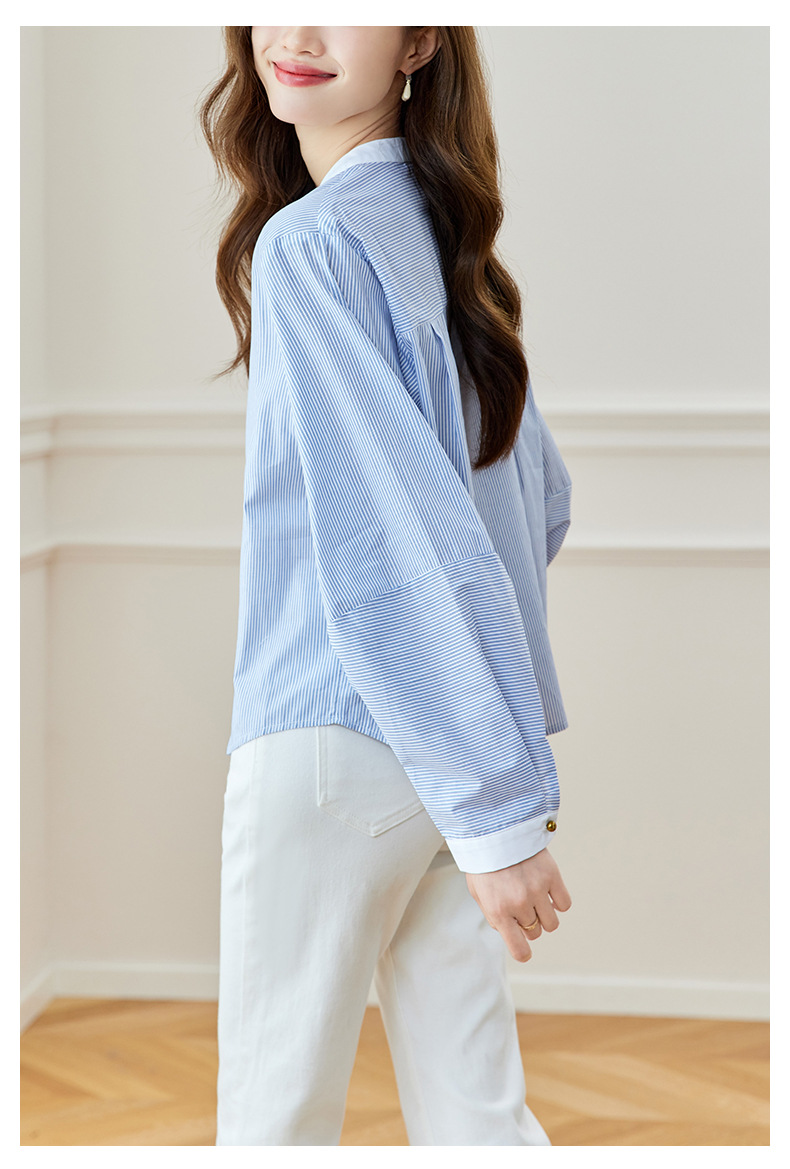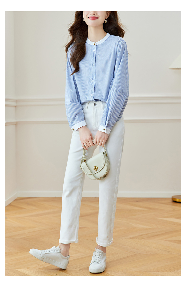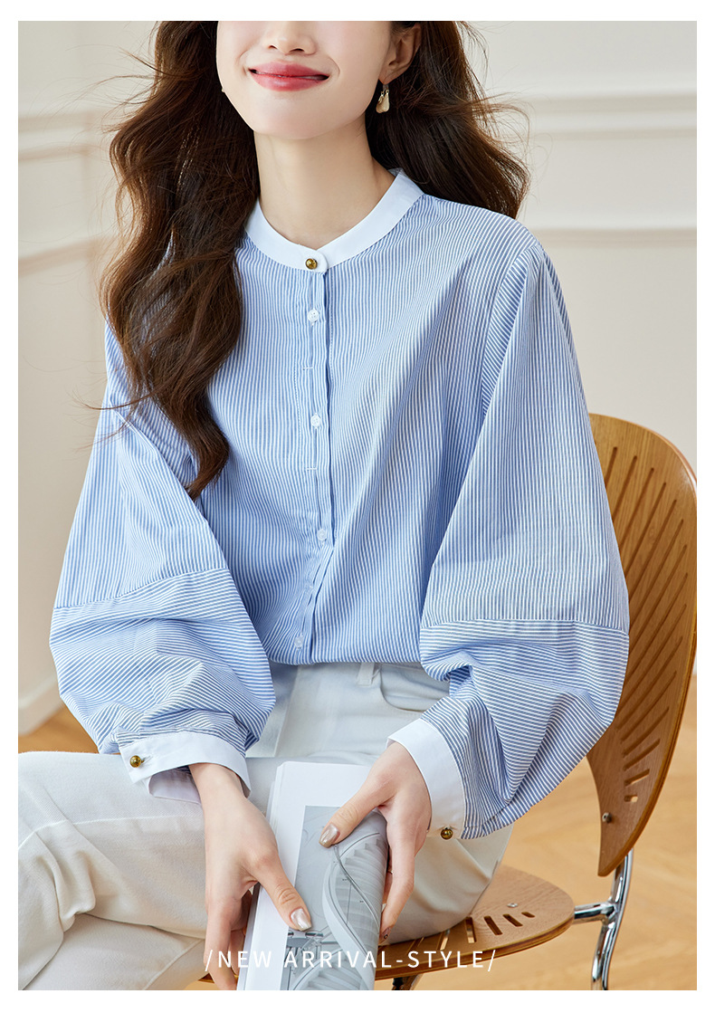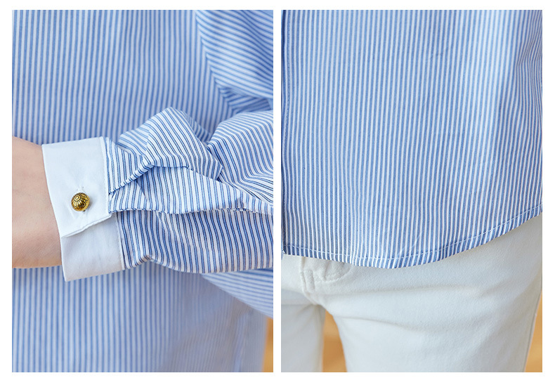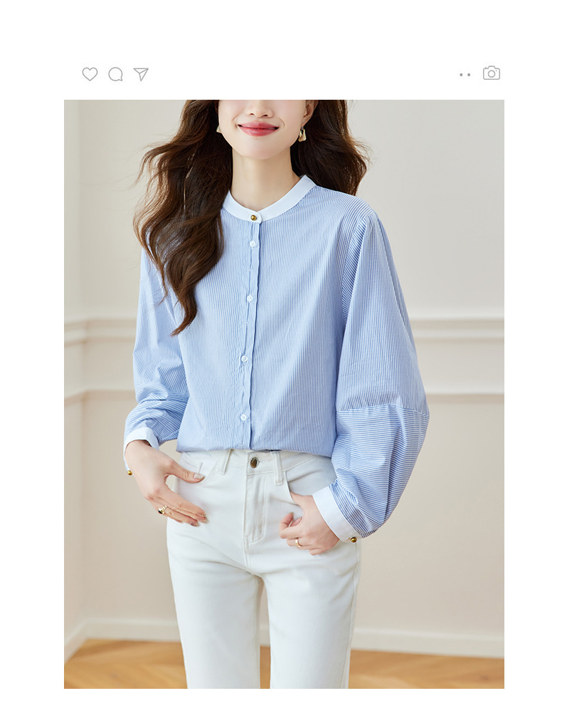 블루 스트라이프 셔츠 여성용 긴팔 2026 봄 신상 라운드넥 탑 한국 스타일 패셔너블하고 다용도로 활용 가능한 루즈핏 슬리밍 셔츠스토어 가기