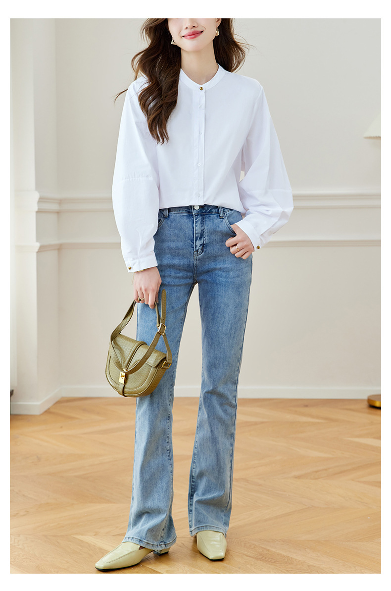 블루 스트라이프 셔츠 여성용 긴팔 2026 봄 신상 라운드넥 탑 한국 스타일 패셔너블하고 다용도로 활용 가능한 루즈핏 슬리밍 셔츠
