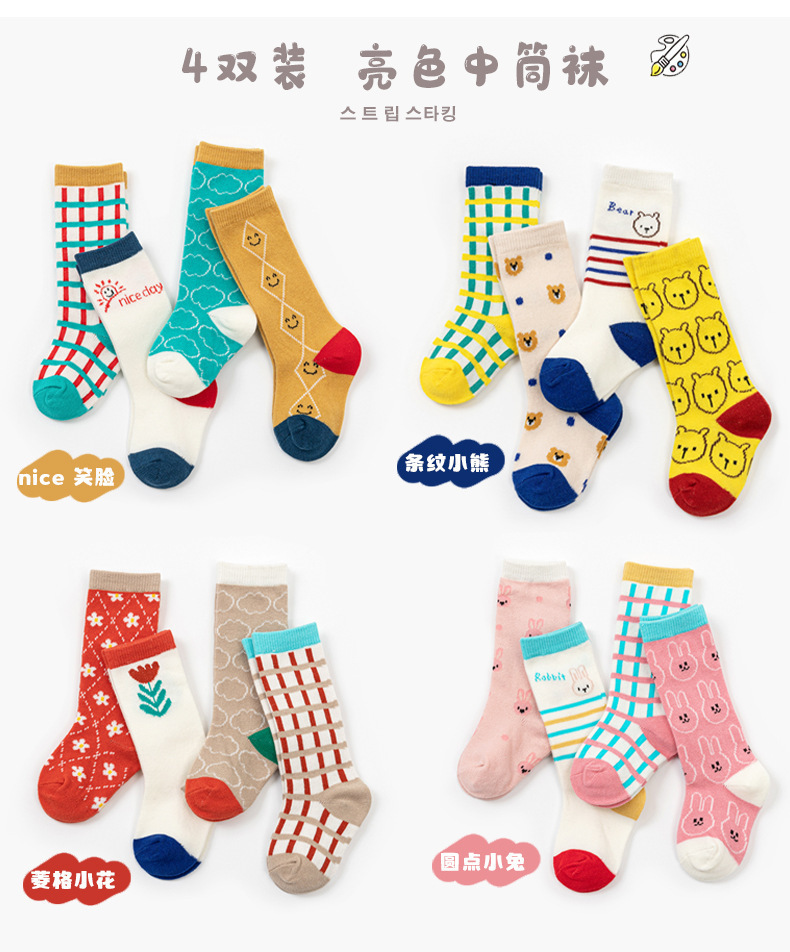 23 봄 여름 어린이 양말 만화 남녀 아기 양말 아기 양말 아기 양말 아기 양말 밝은 색상 중간 길이 양말스토어 가기