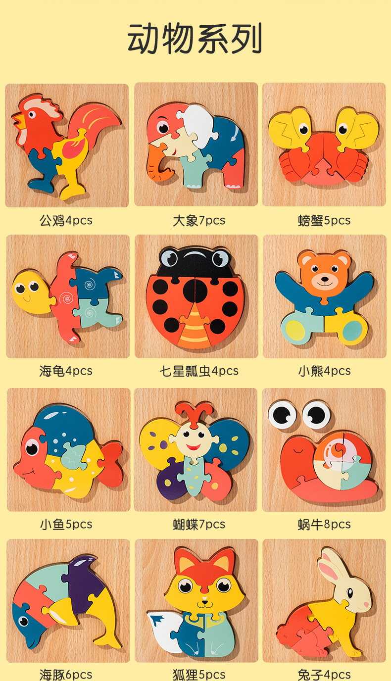 어린이 3 차원 퍼즐 만화 동물 나무 퍼즐 아기 조기 교육 두꺼운 퍼즐 장난감 도매