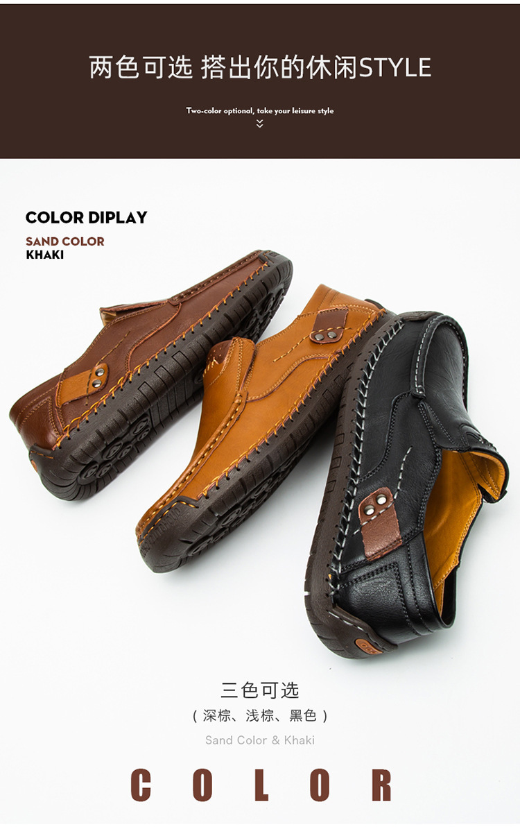손으로 꿰매는 남성 신발 야외 캐주얼 신발 슬립 온 플랫 가죽 신발 봄 로우 탑 플러스 사이즈 크로스 보더 로퍼 국수스토어 가기