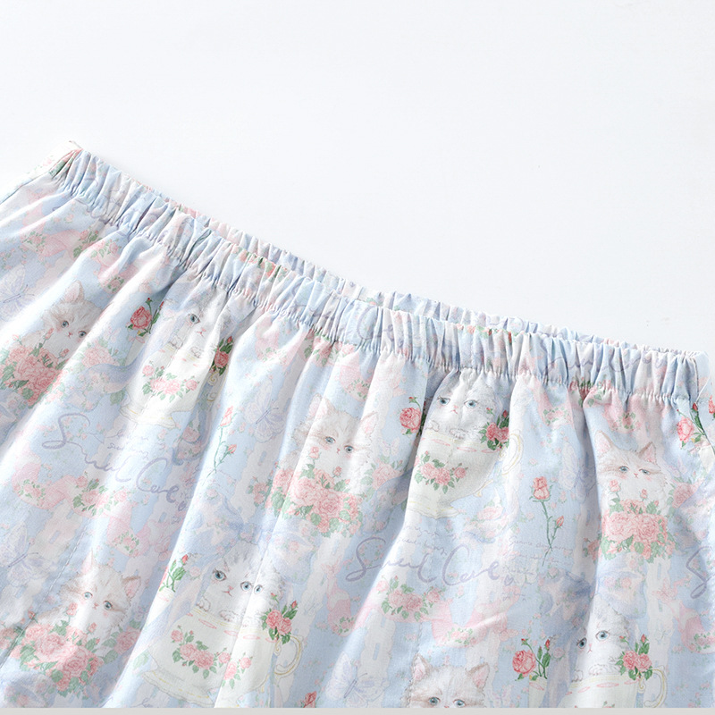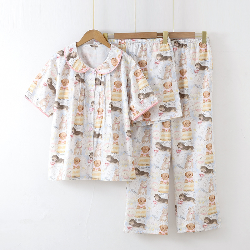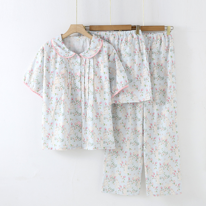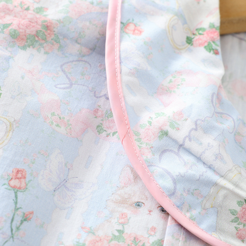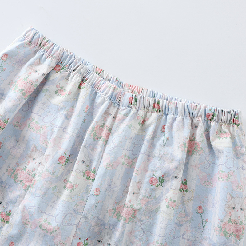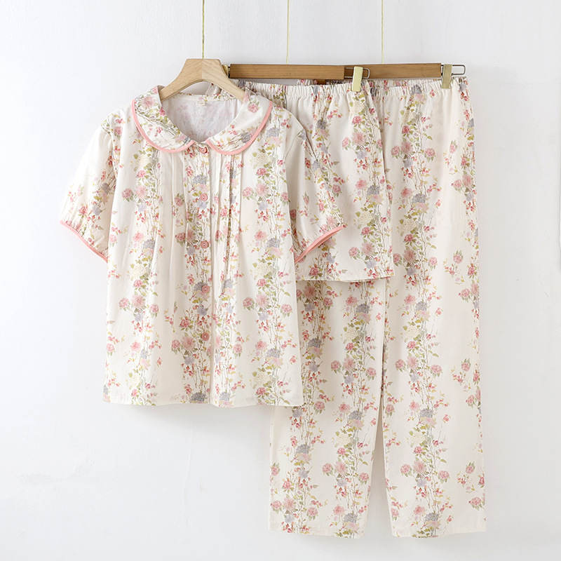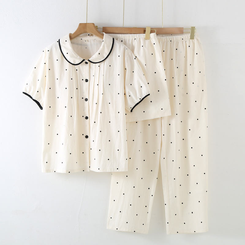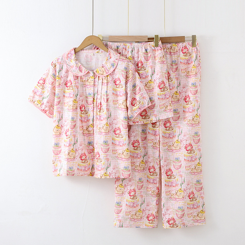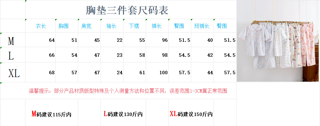 봄과 가을 면화 여성용 잠옷 여름 얇은 신선한 달콤한 소녀 옆집 세트 반팔 바지 3 종 세트스토어 가기