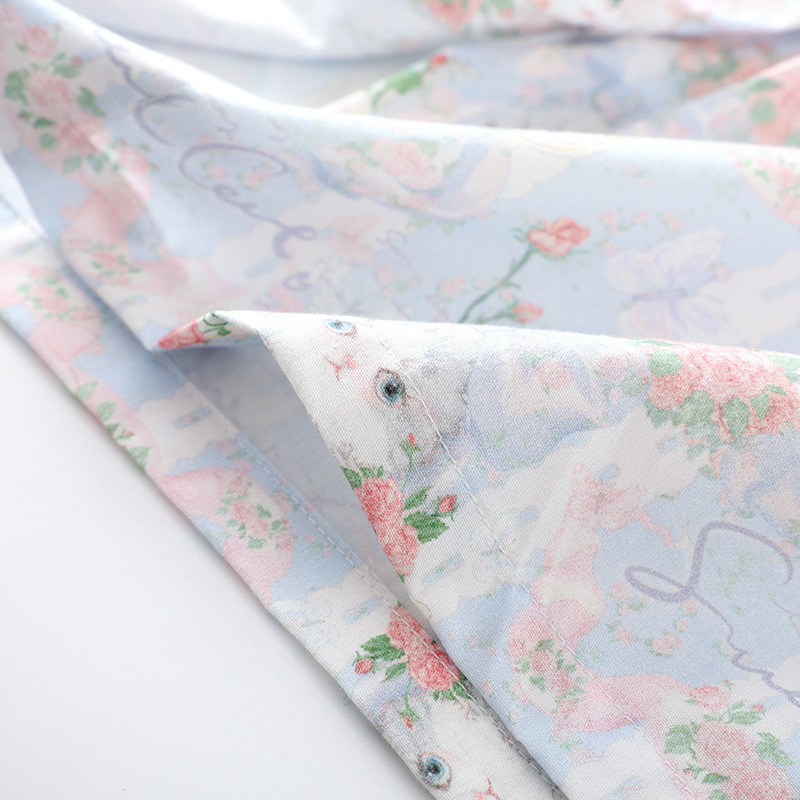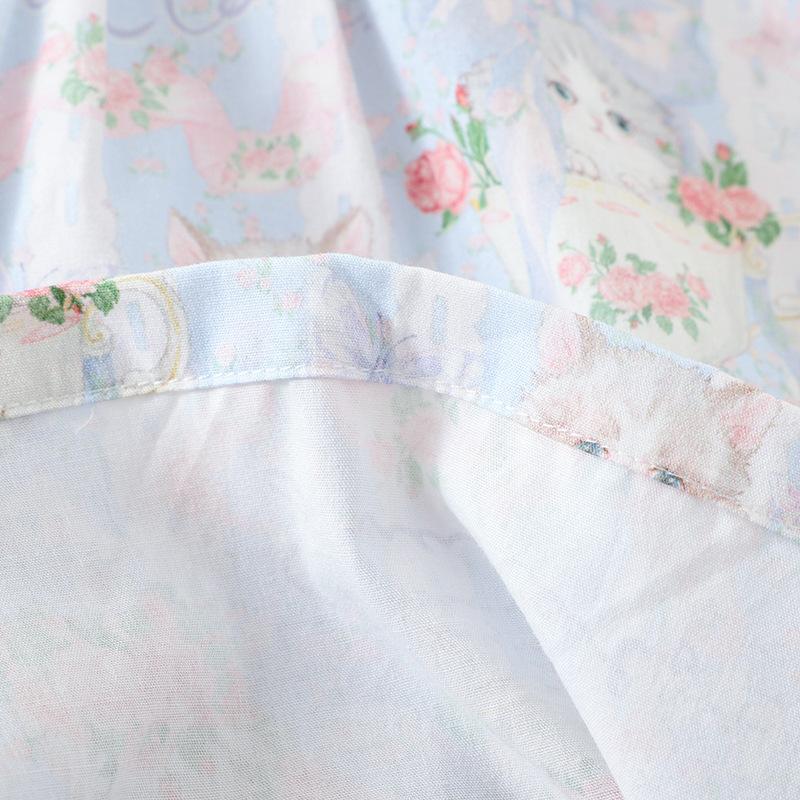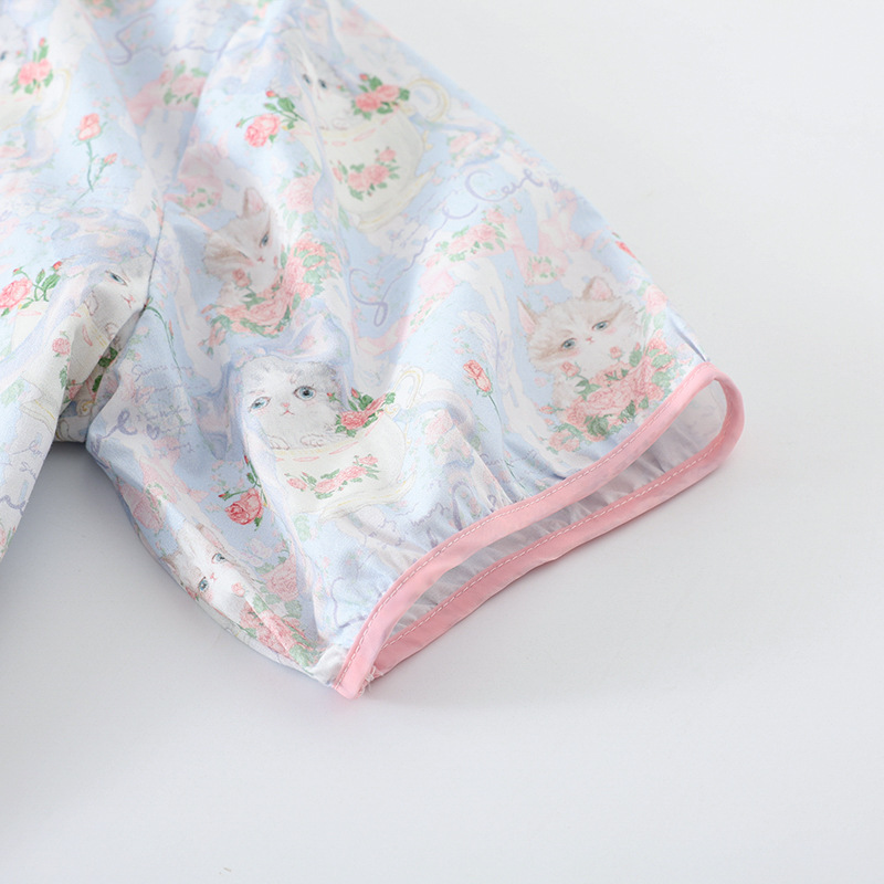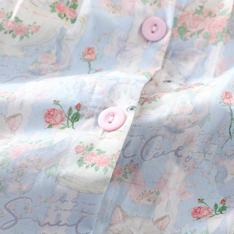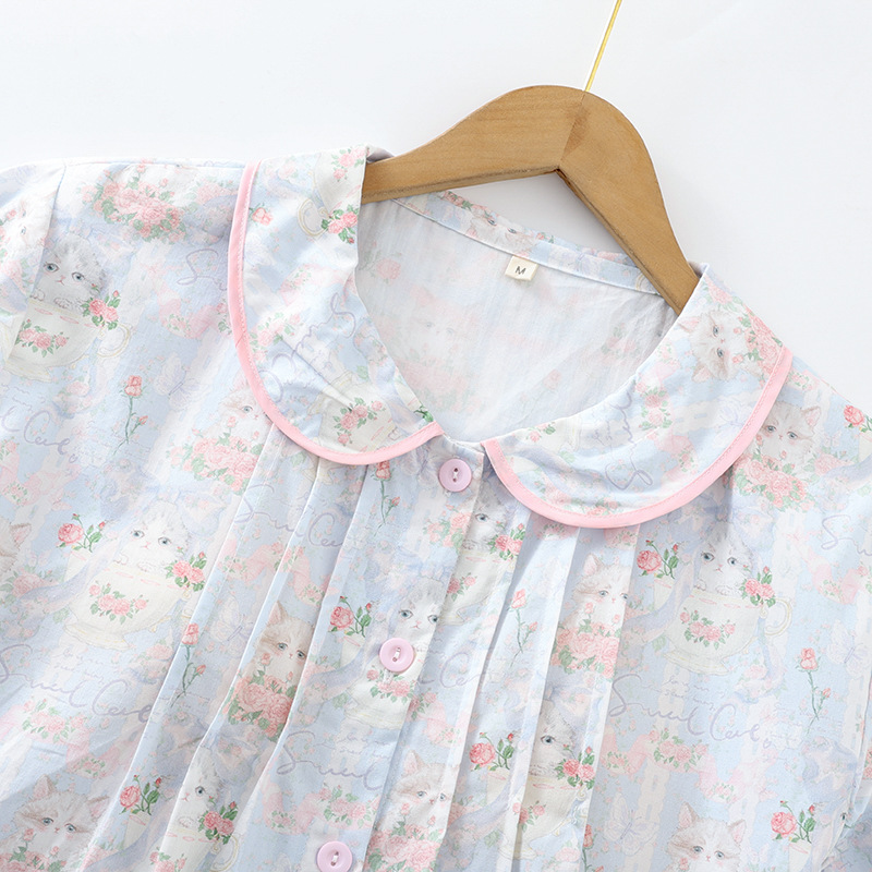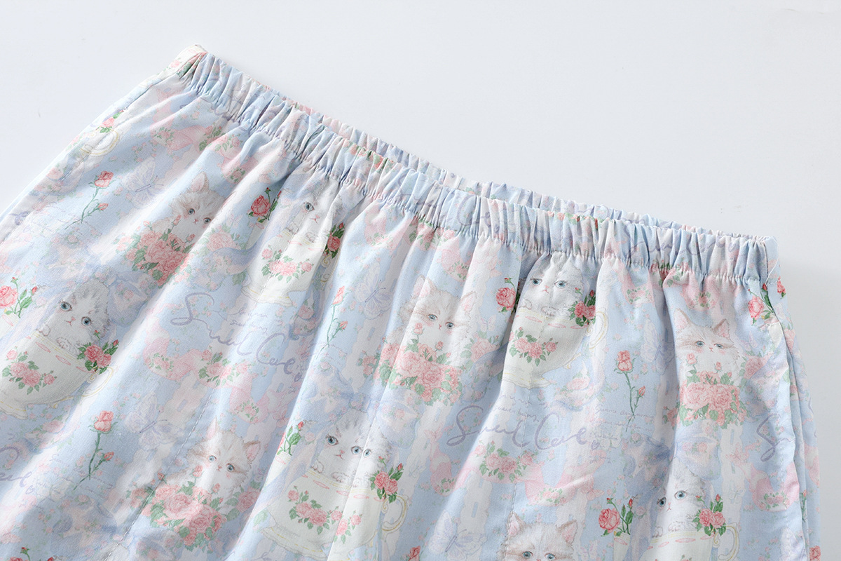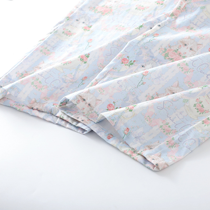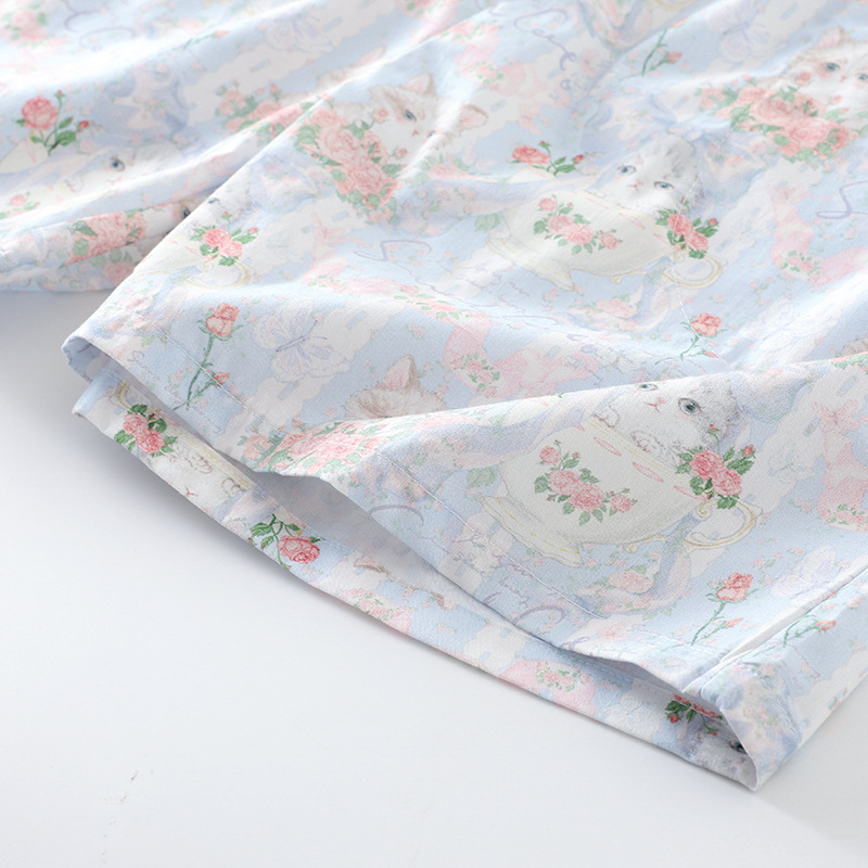 봄과 가을 면화 여성용 잠옷 여름 얇은 신선한 달콤한 소녀 옆집 세트 반팔 바지 3 종 세트스토어 가기