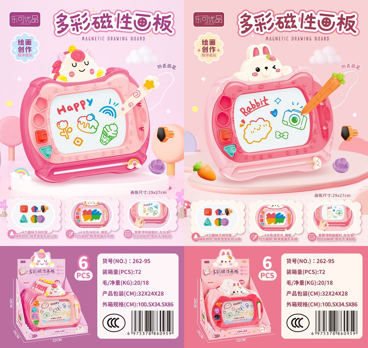• 다채로운 자기 드로잉 보드 (72 PC)