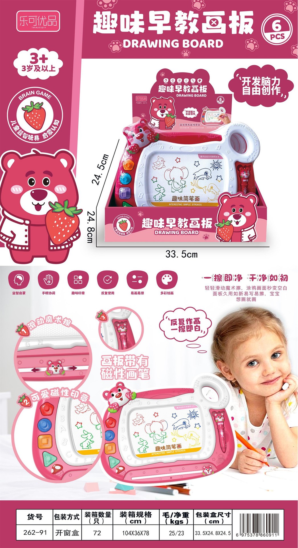 딸기 곰 조기 교육 드로잉 보드 다채로운 자기 드로잉 보드 쓰기 보드 퍼즐 부모-자녀 상호 작용 유치원 기관 선물스토어 가기