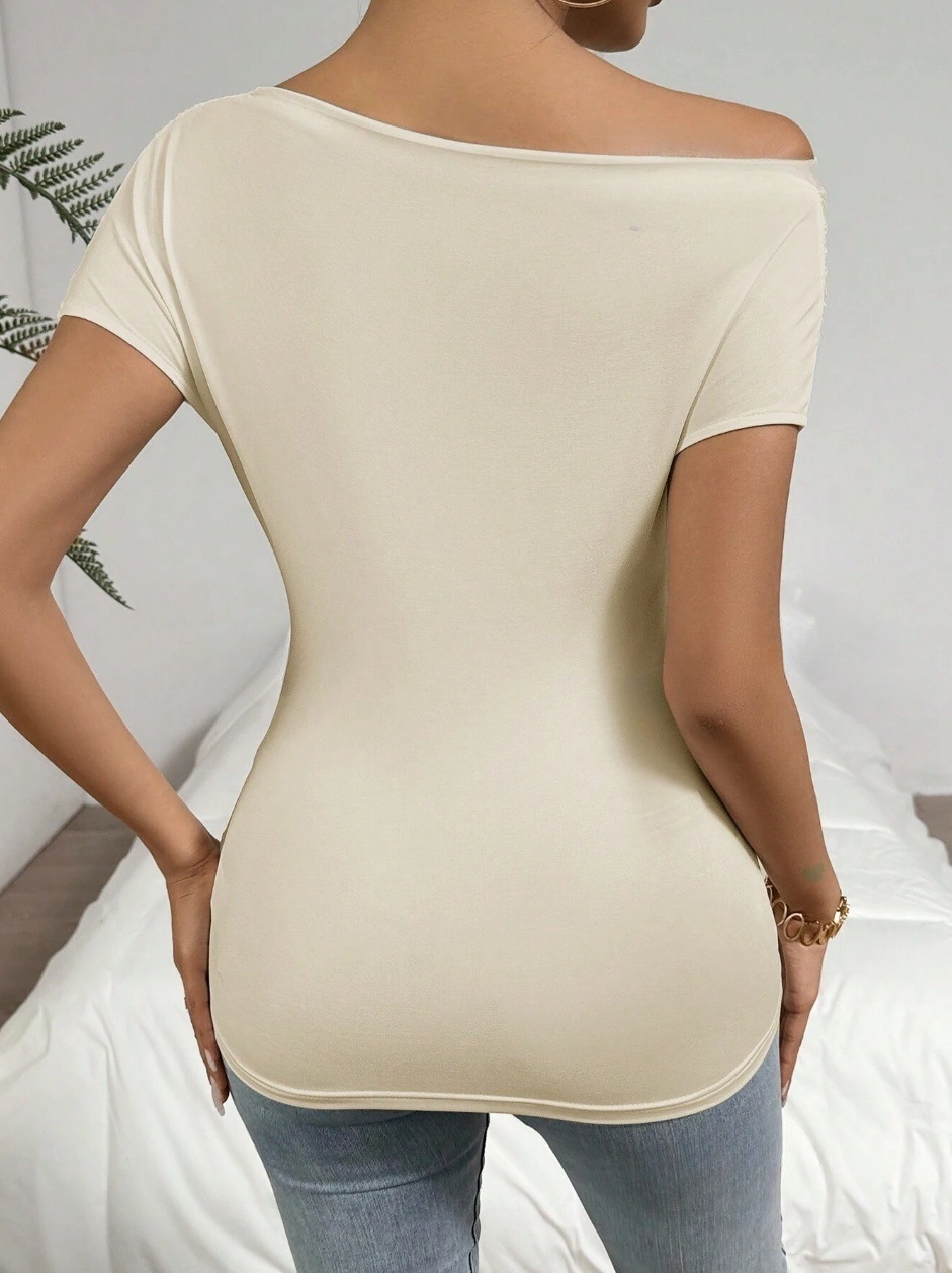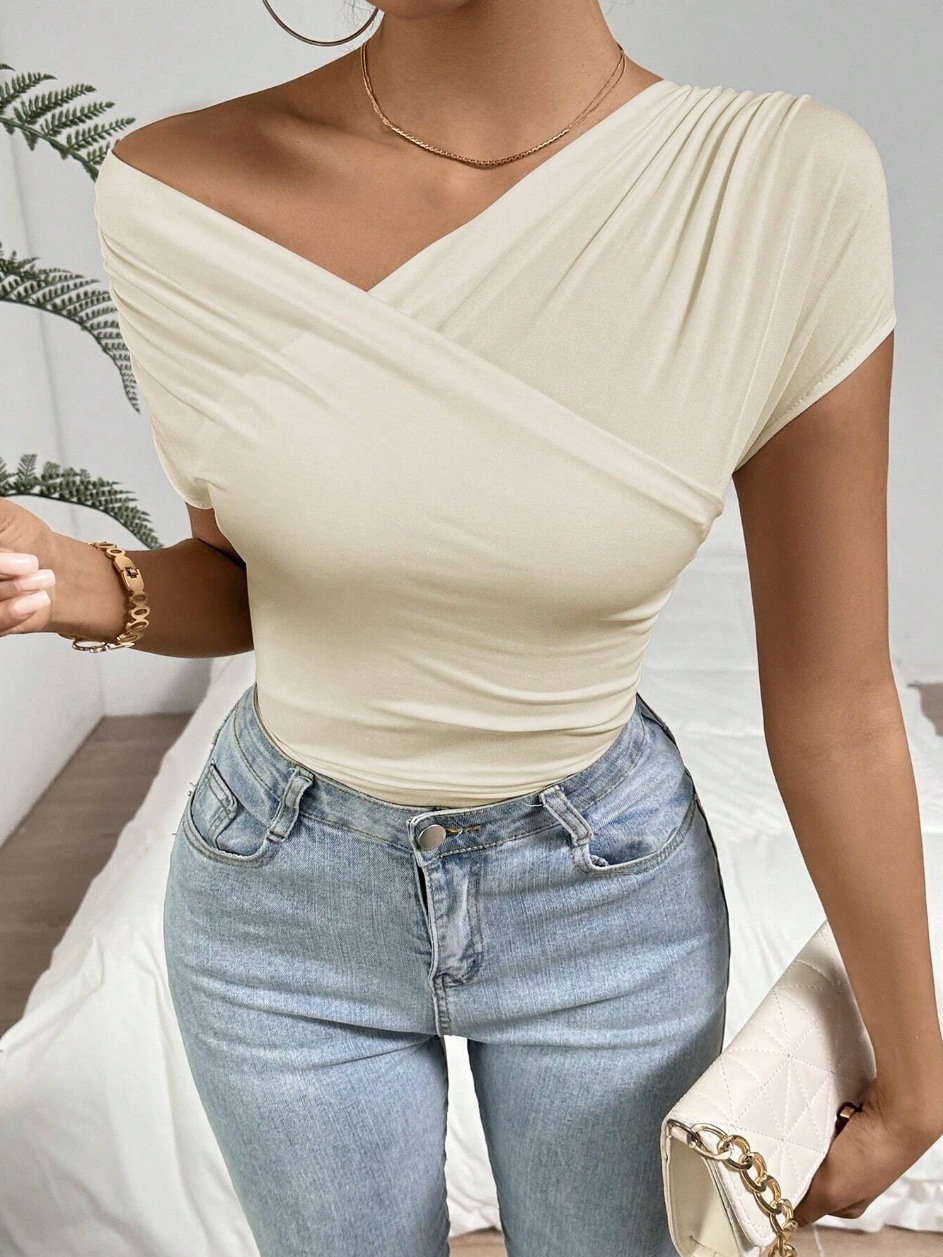 2024 아마존 독립 역 봄과 여름 폭발 울려 퍼진 오비큐 칼라 V-넥 섹시 탑 여성용 반팔 티셔츠스토어 가기