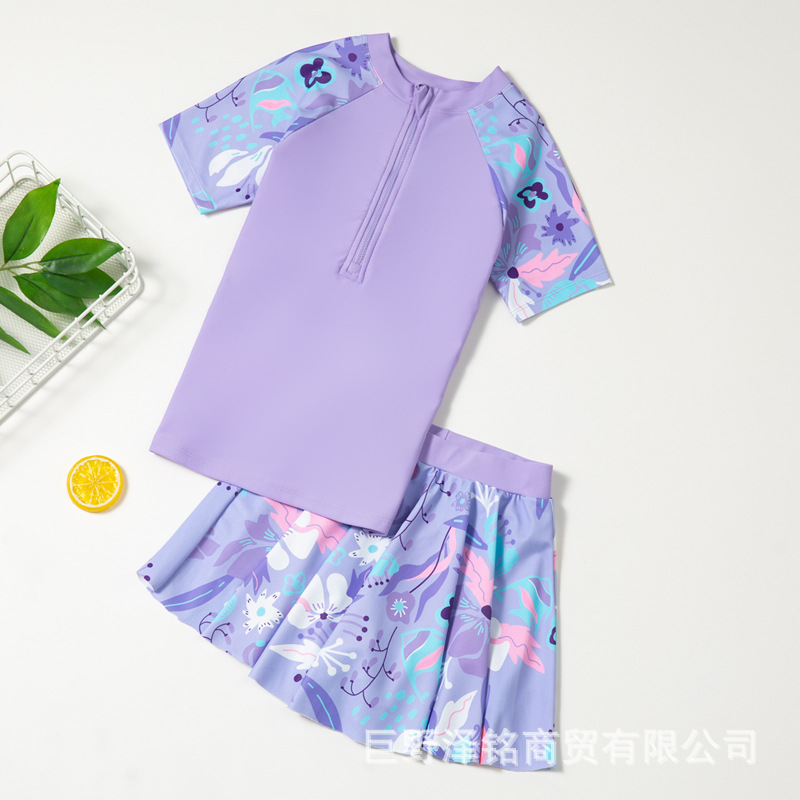 어린이 야외 분할 수영 치마 세트 공주 치마 수영복 세트 비치 휴가 빠른 건조 여자 수영복