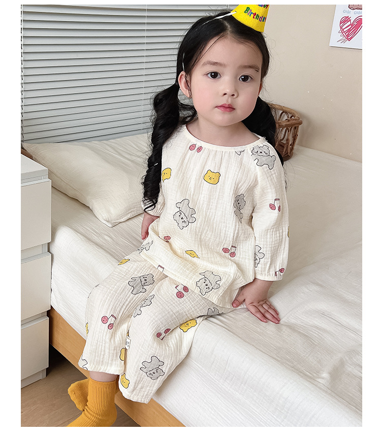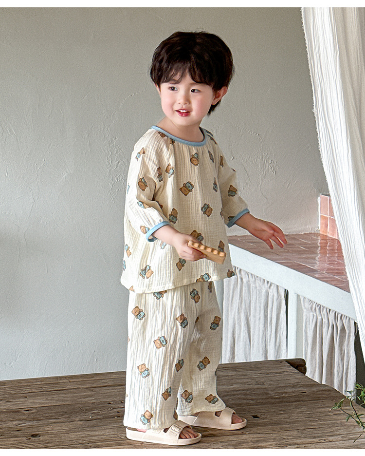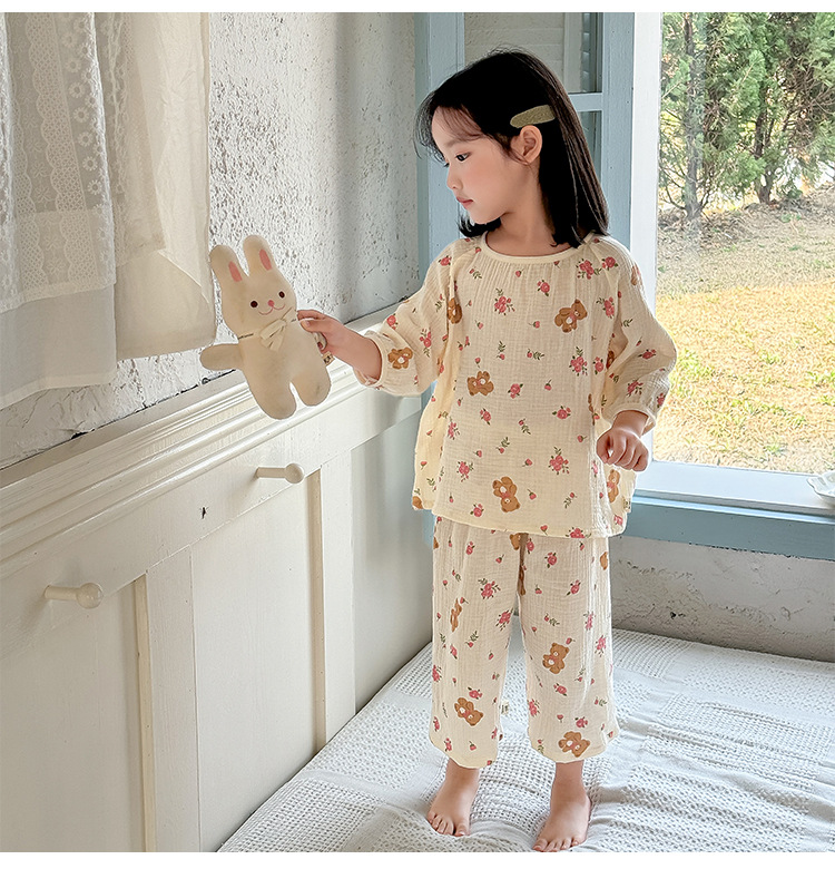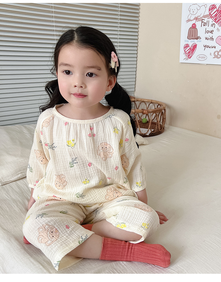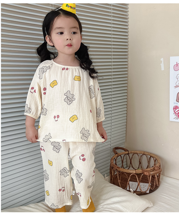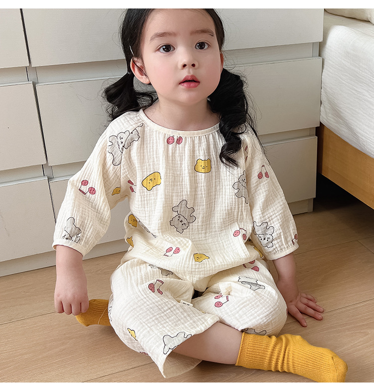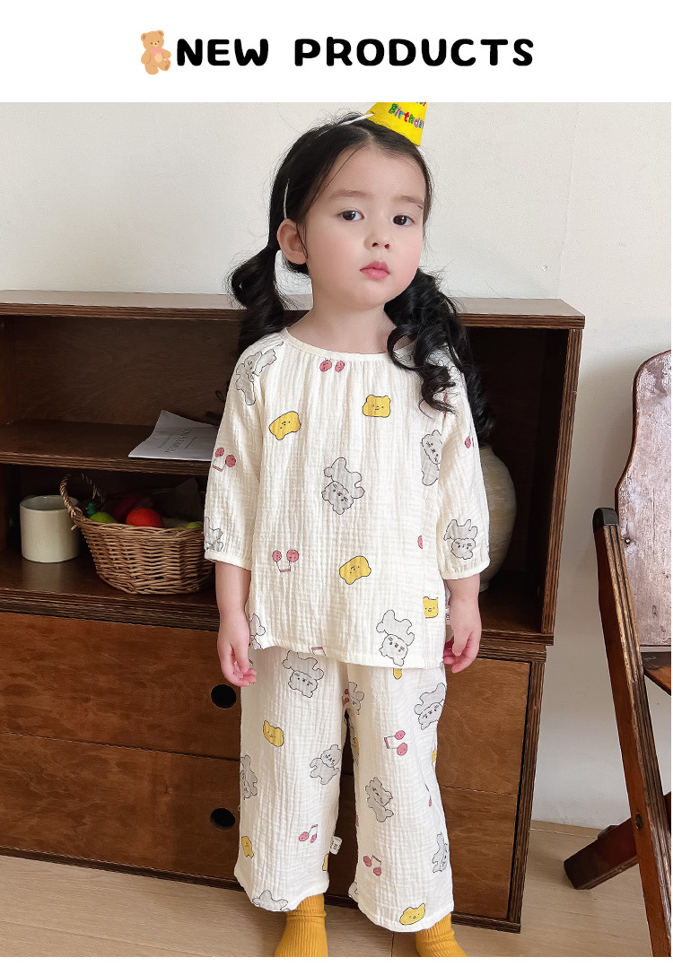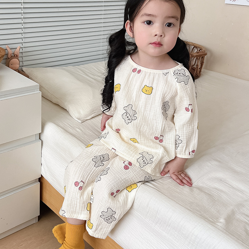 여름 귀여운 얇은 코튼 거즈 홈 의류 세트 어린이 잠옷 A 급 소년 소녀 아기 에어컨 옷스토어 가기