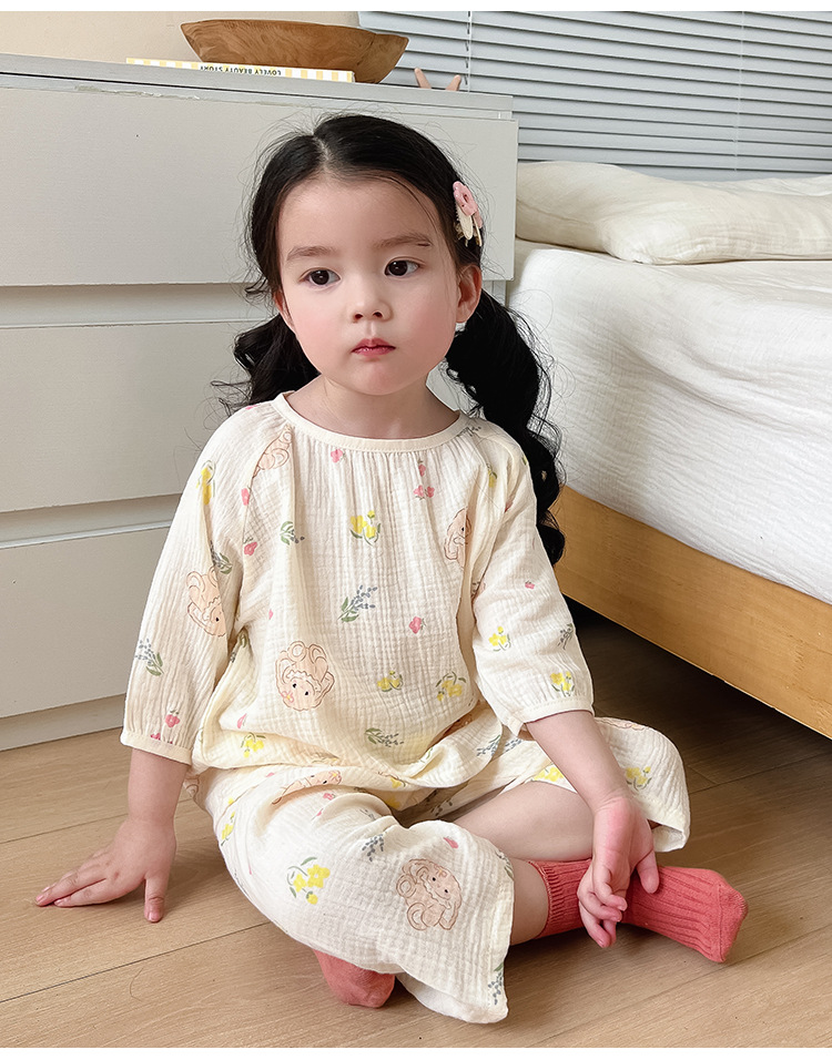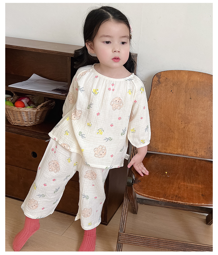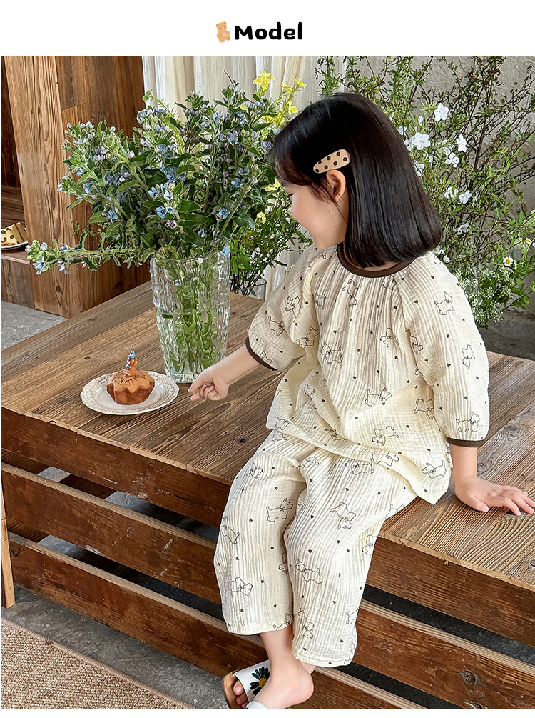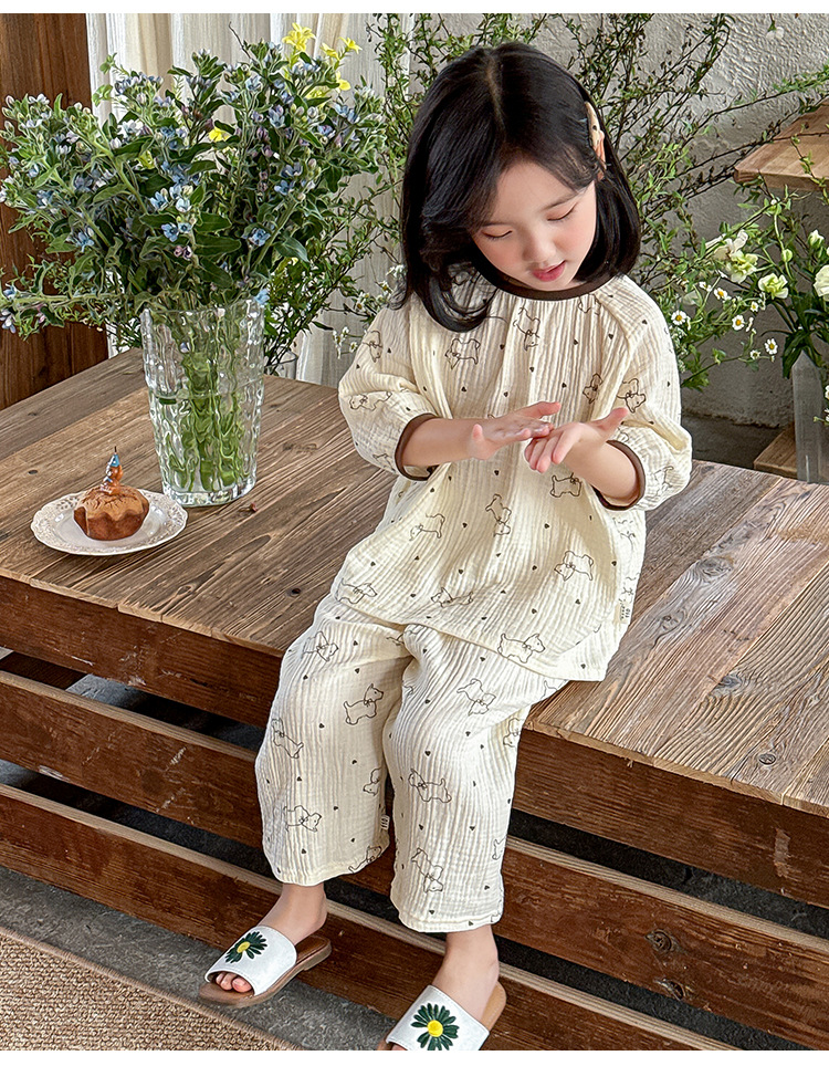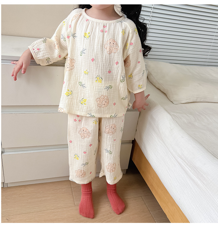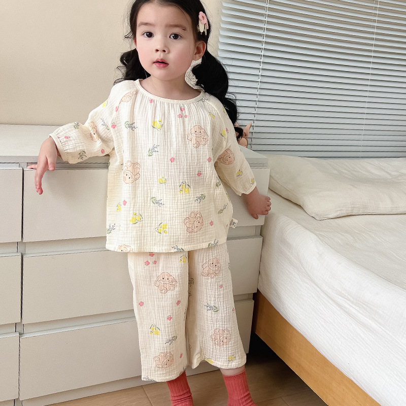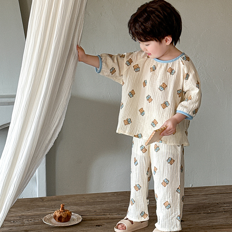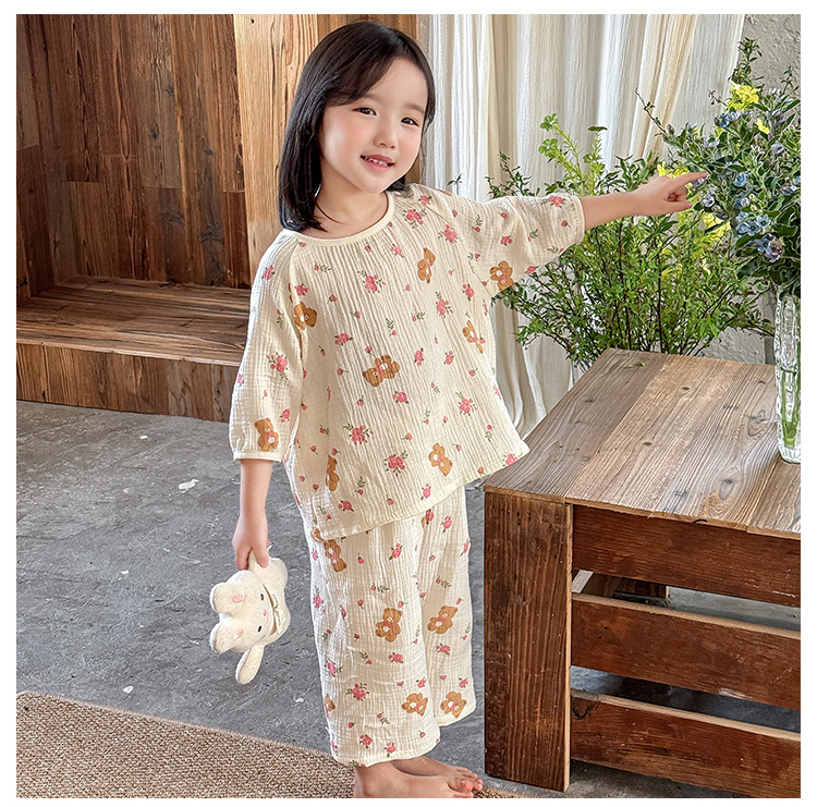 여름 귀여운 얇은 코튼 거즈 홈 의류 세트 어린이 잠옷 A 급 소년 소녀 아기 에어컨 옷스토어 가기