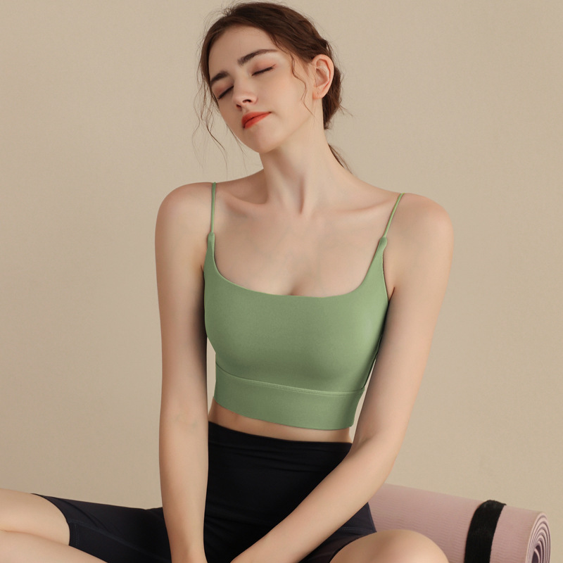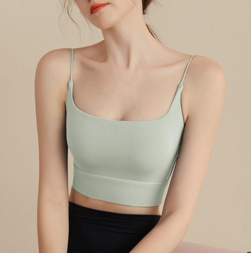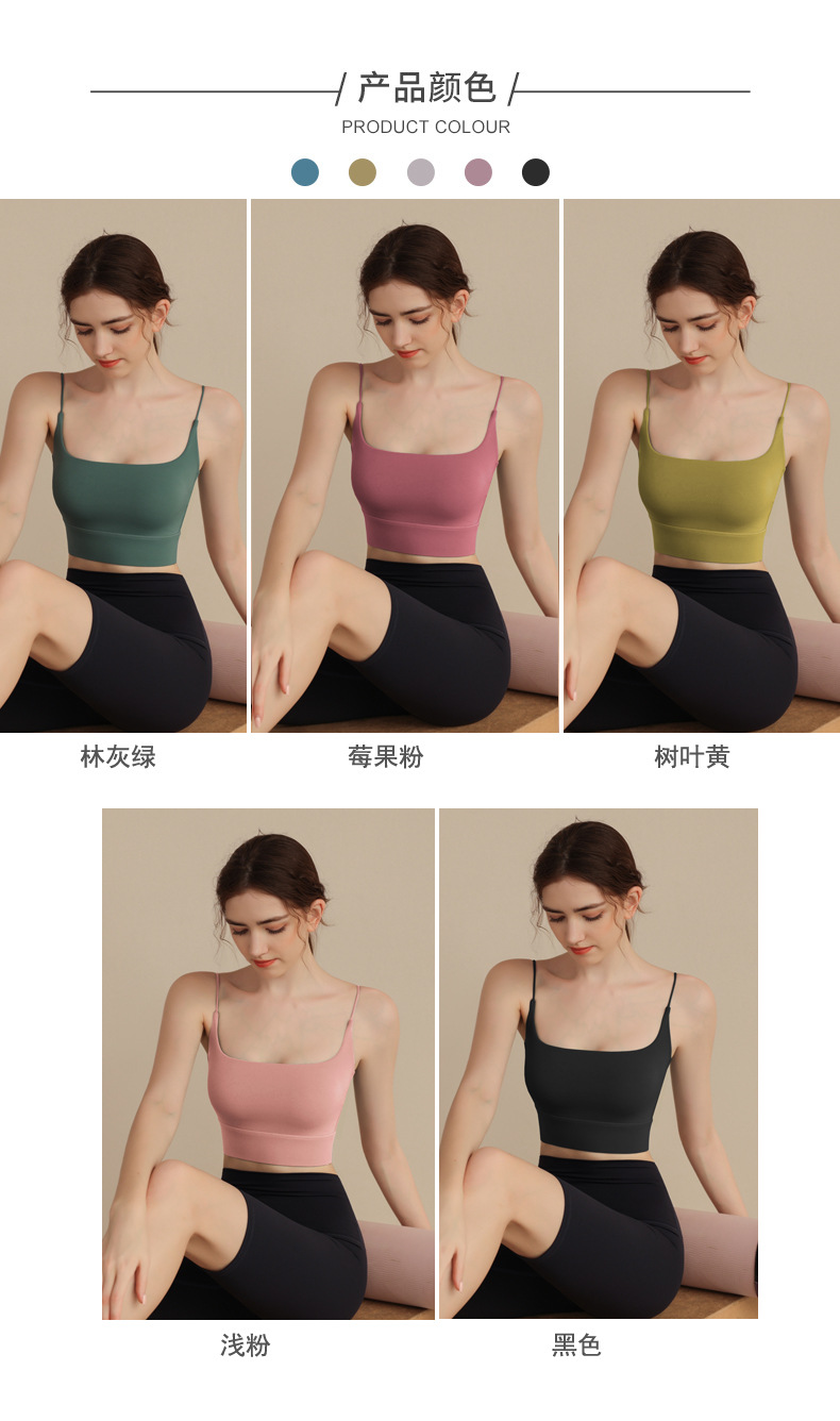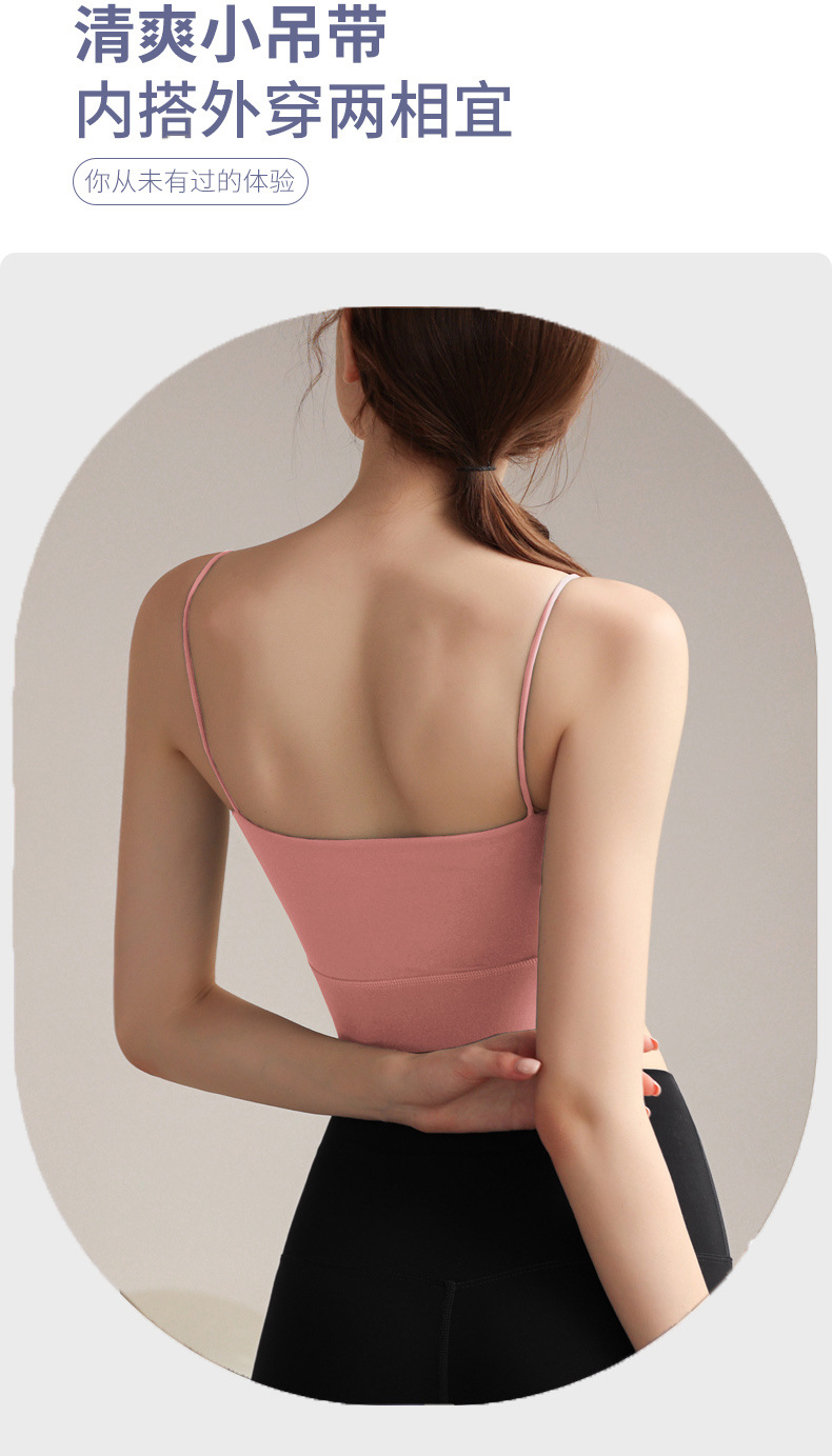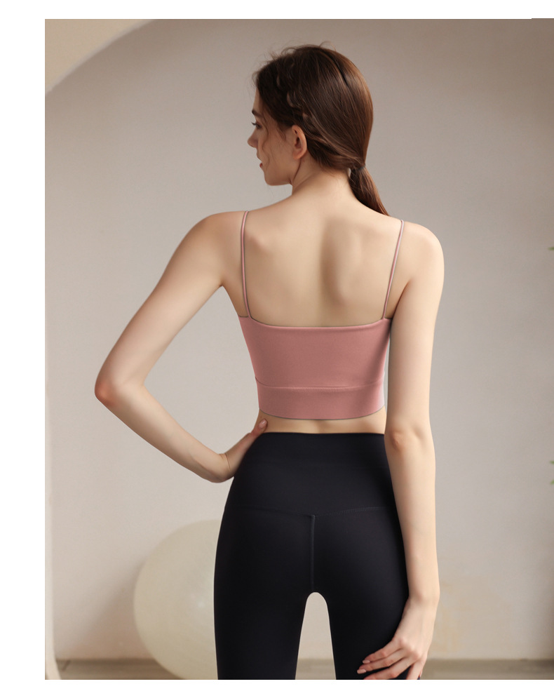스포츠 브래지어 얇은 어깨 끈 속옷 솔리드 컬러 내부 작은 슬링 아름다운 등 스포츠 피트니스 브래지어 가슴 패드 여름