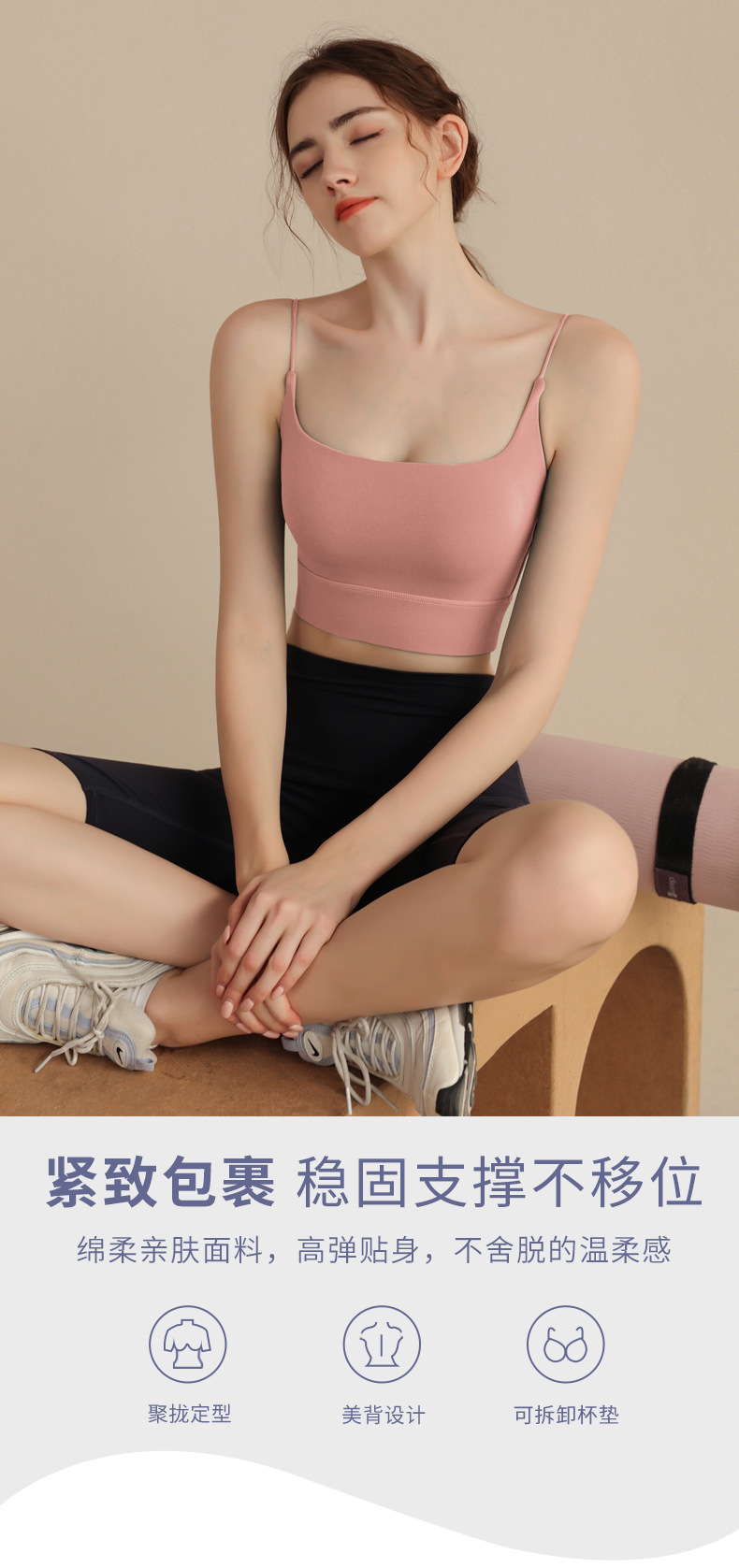 스포츠 브래지어 얇은 어깨 끈 속옷 솔리드 컬러 내부 작은 슬링 아름다운 등 스포츠 피트니스 브래지어 가슴 패드 여름스토어 가기