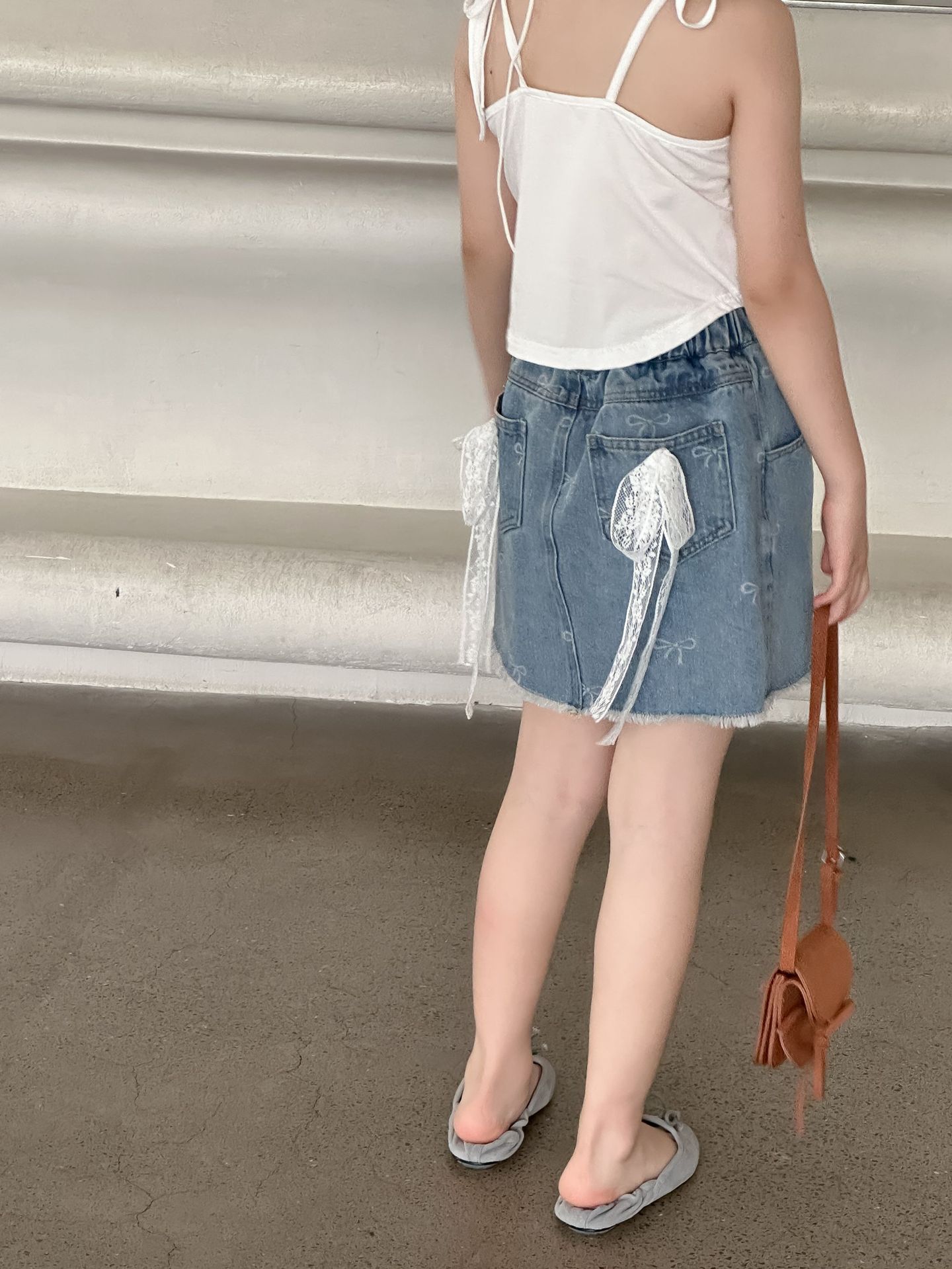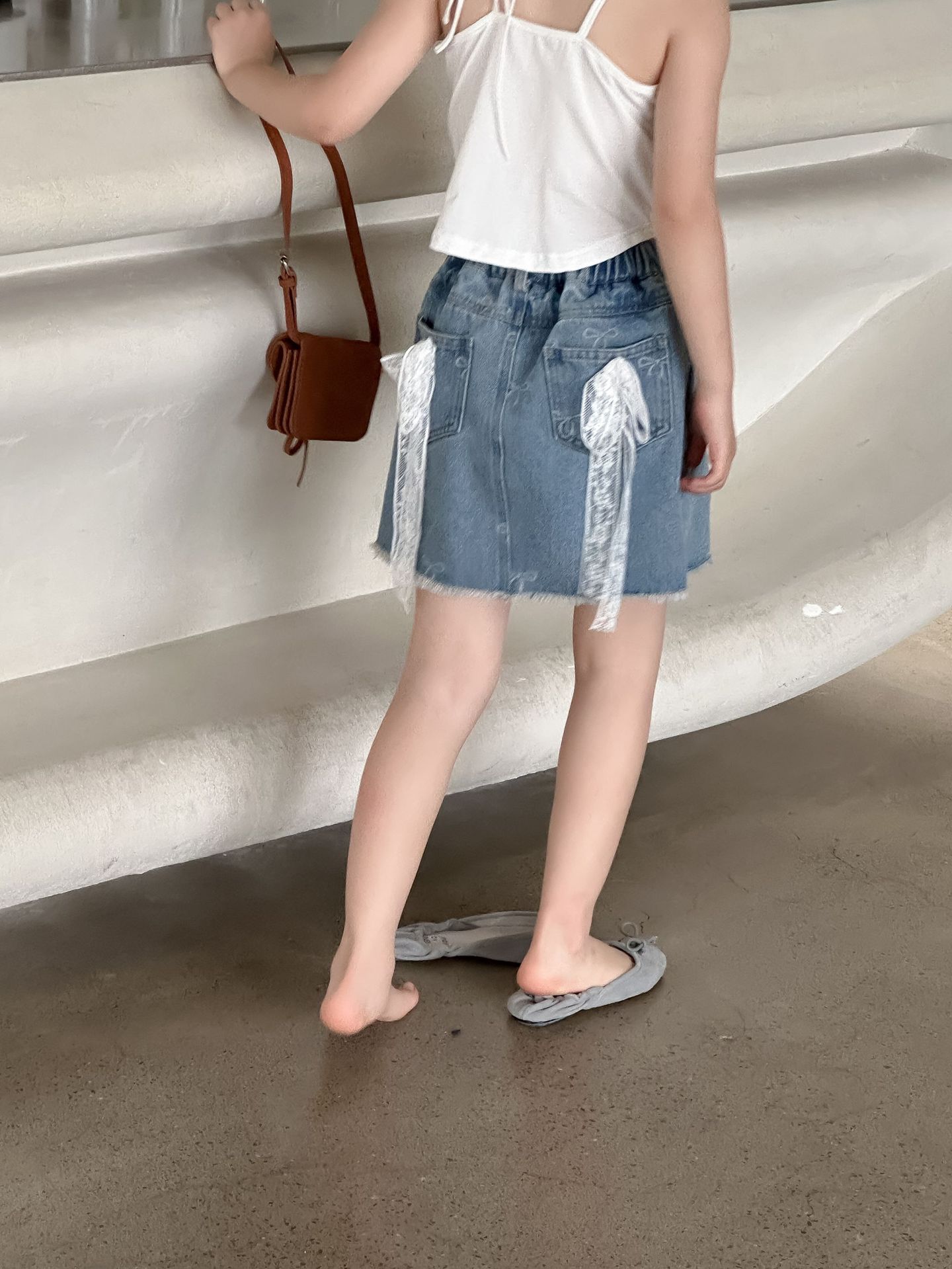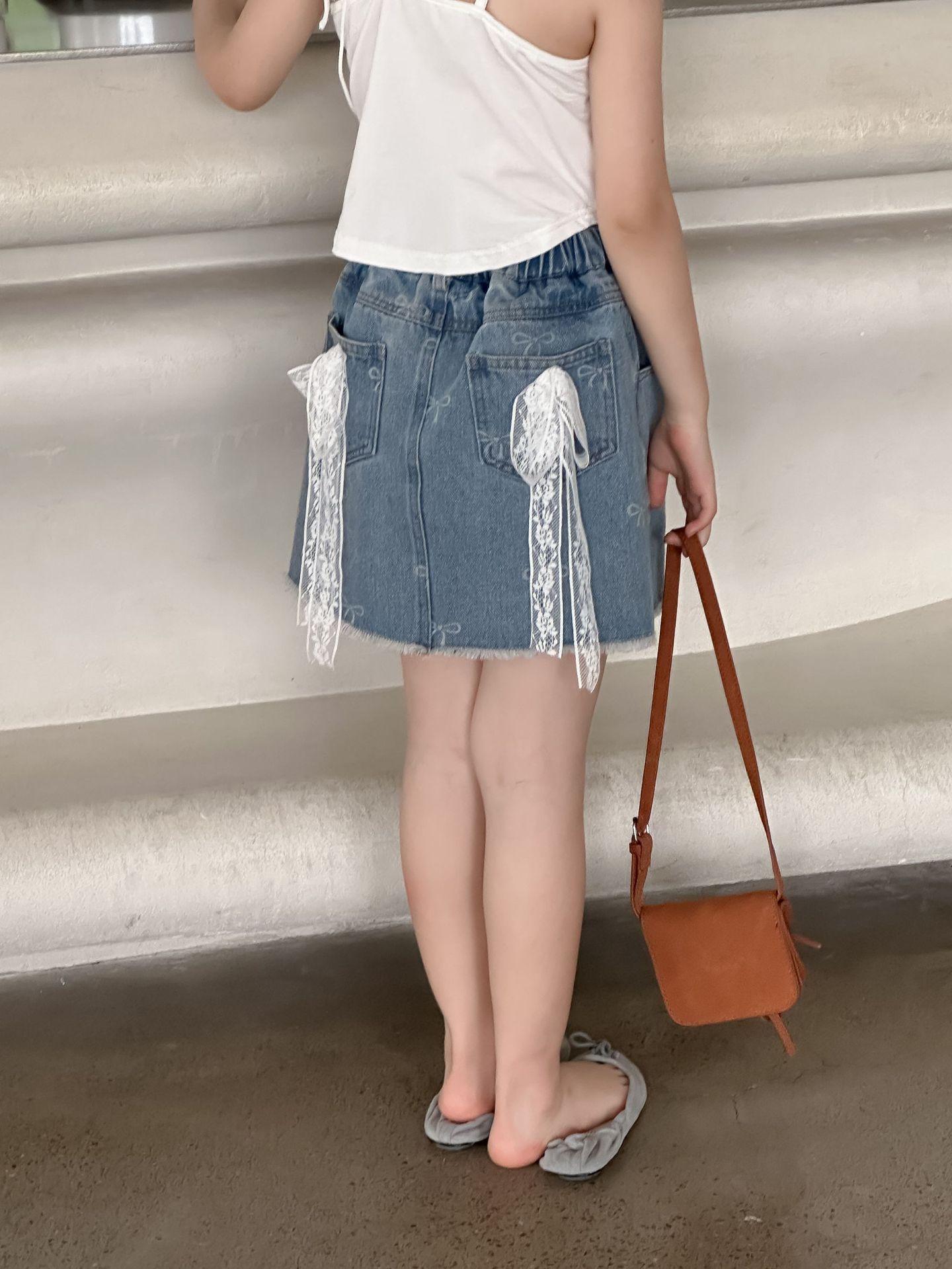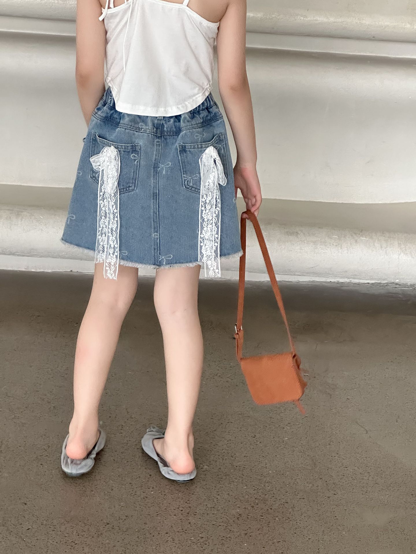 한국 스타일 아동복 2024 여름 소녀 활 짧은 치마 큰 소녀의 레이스 데님 스커트 달콤한 치마스토어 가기