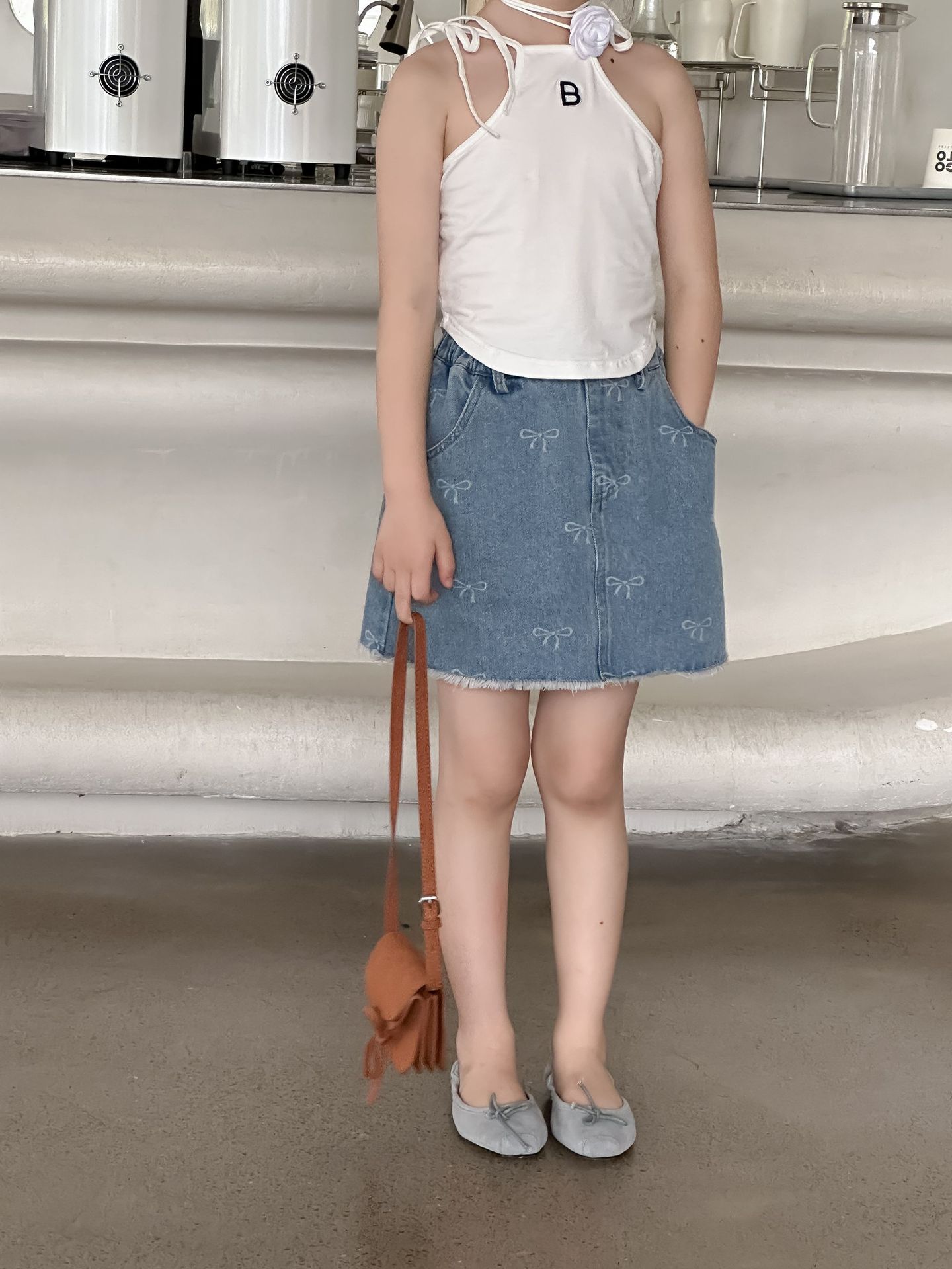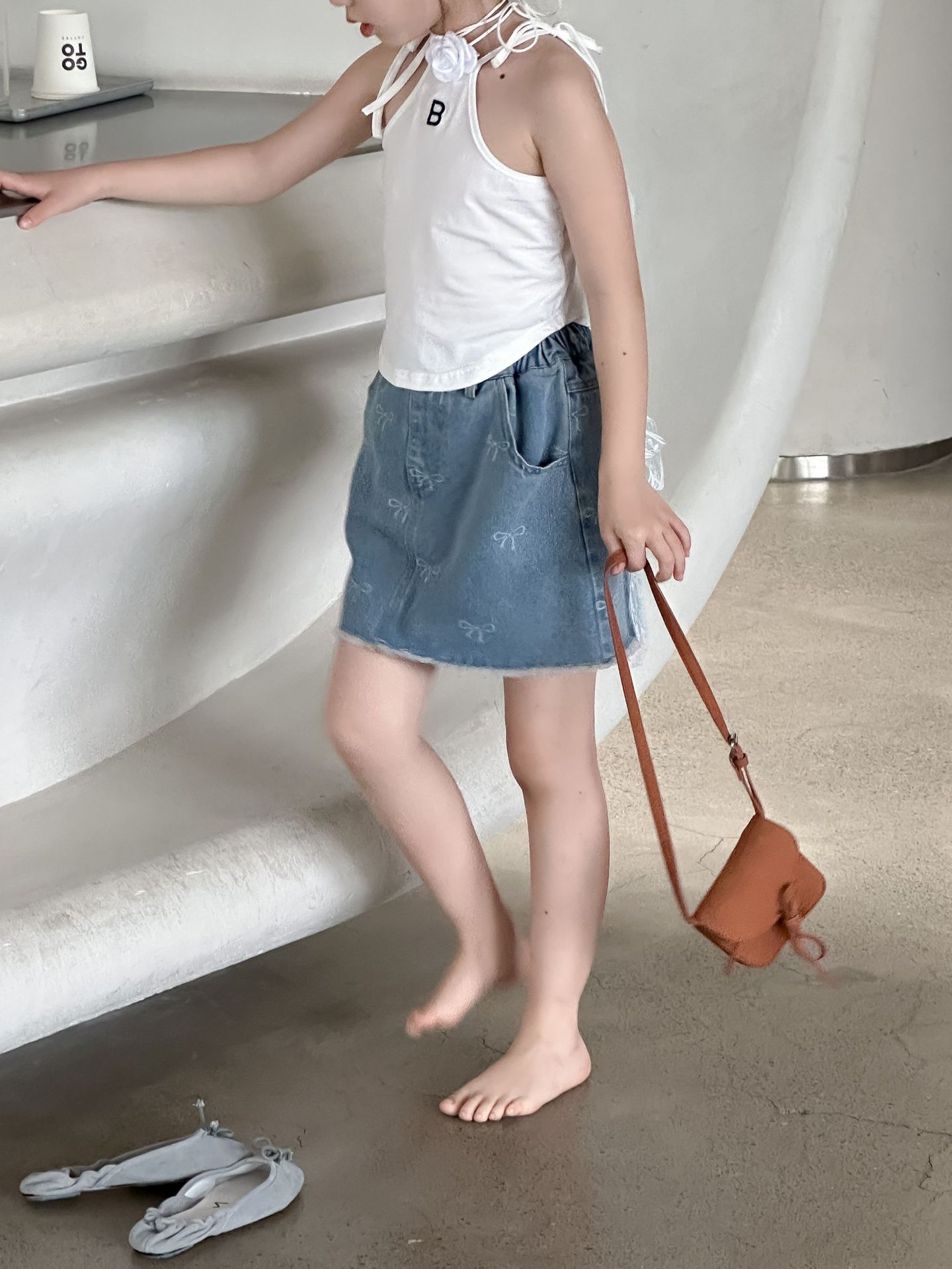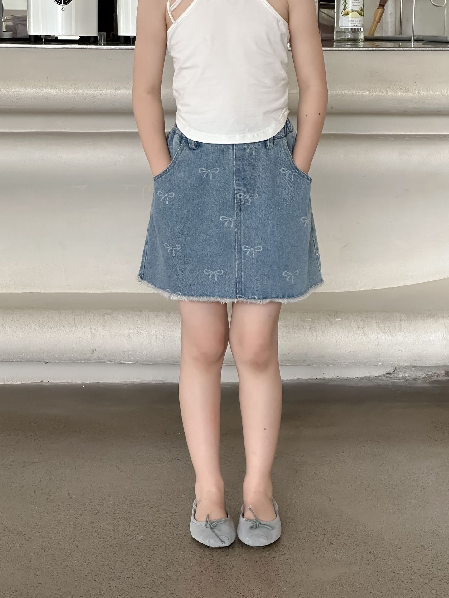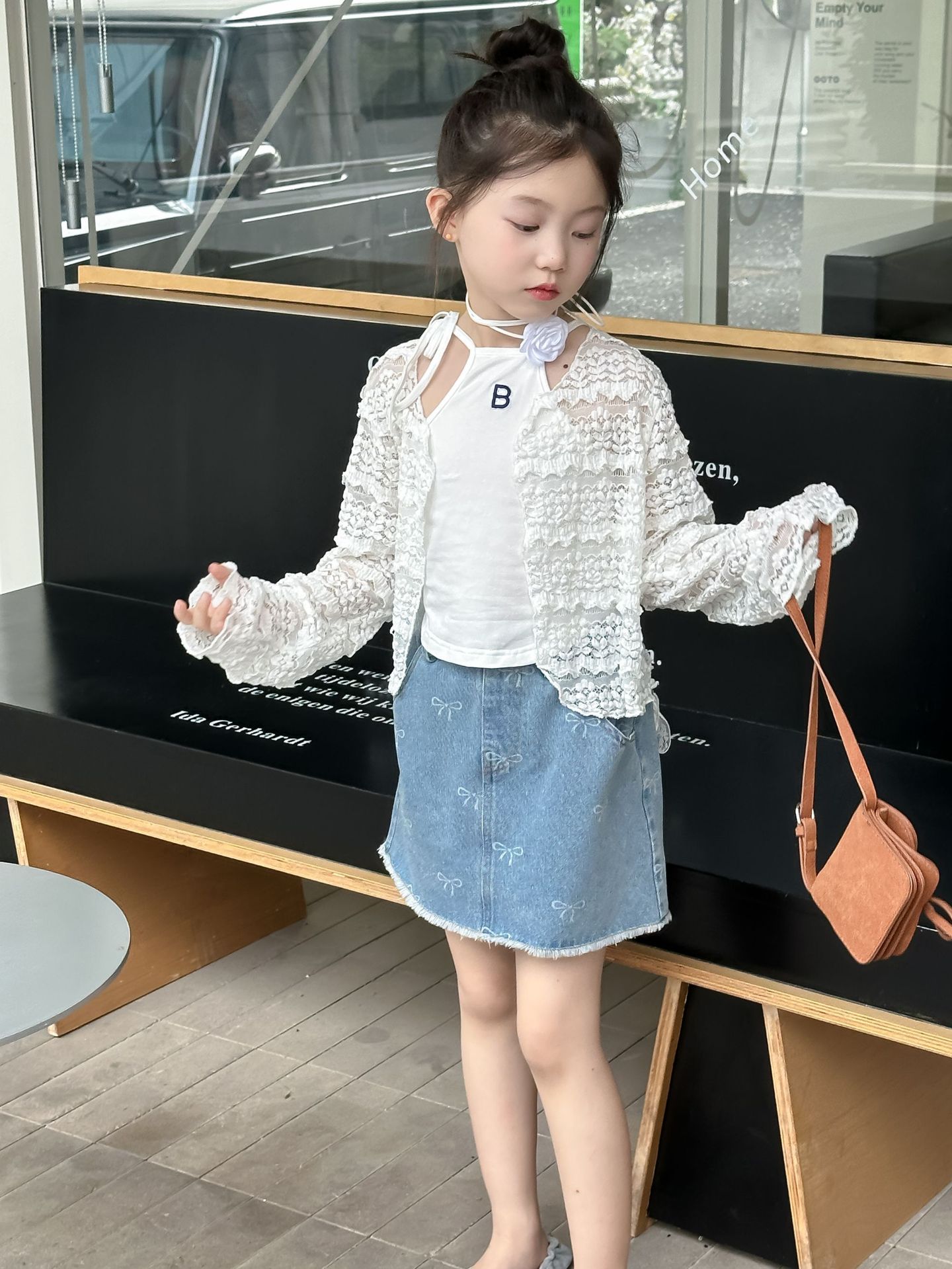 한국 스타일 아동복 2024 여름 소녀 활 짧은 치마 큰 소녀의 레이스 데님 스커트 달콤한 치마스토어 가기