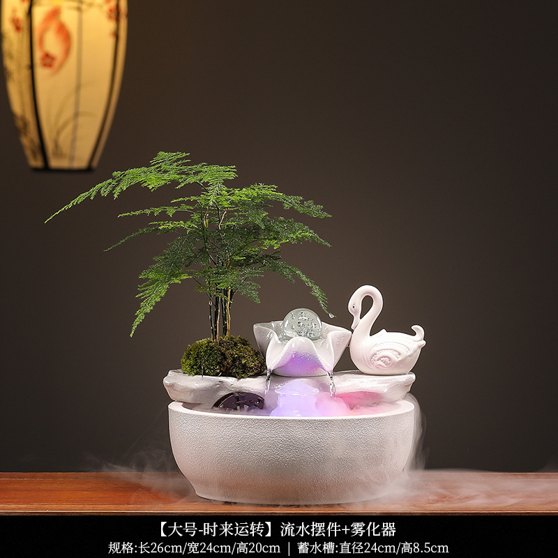세라믹 흐르는 물 어항 운세 만들기 풍수 휠 장식품 홈 오피스 데스크탑 장식 오프닝 집들이 선물