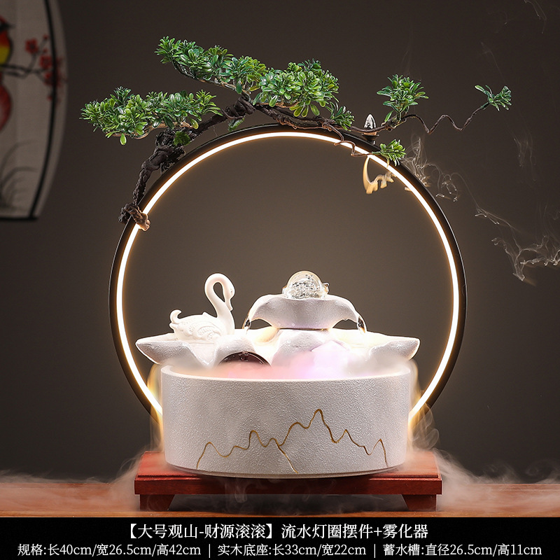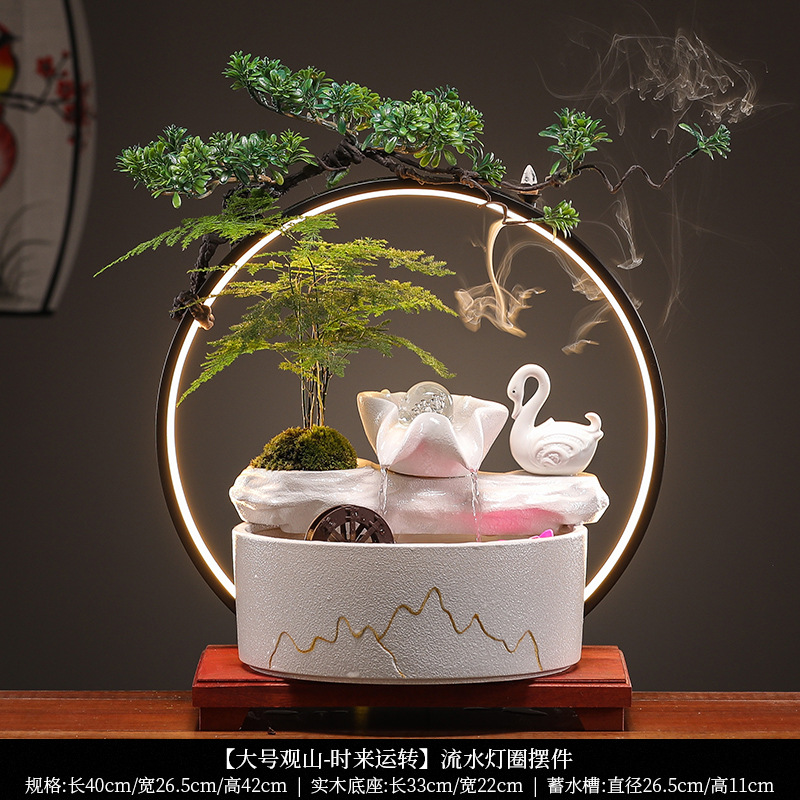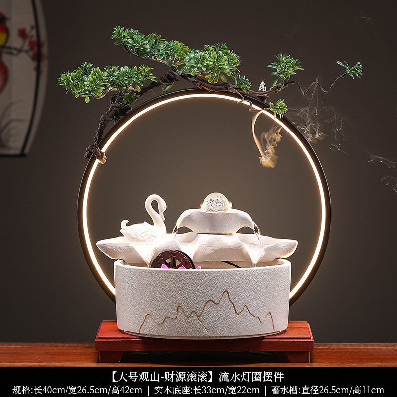 세라믹 흐르는 물 어항 운세 만들기 풍수 휠 장식품 홈 오피스 데스크탑 장식 오프닝 집들이 선물스토어 가기