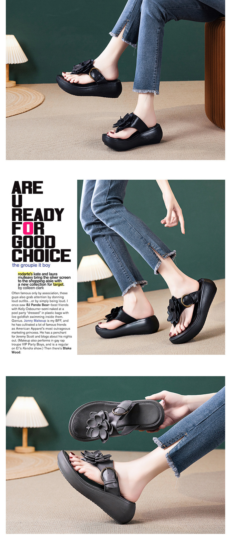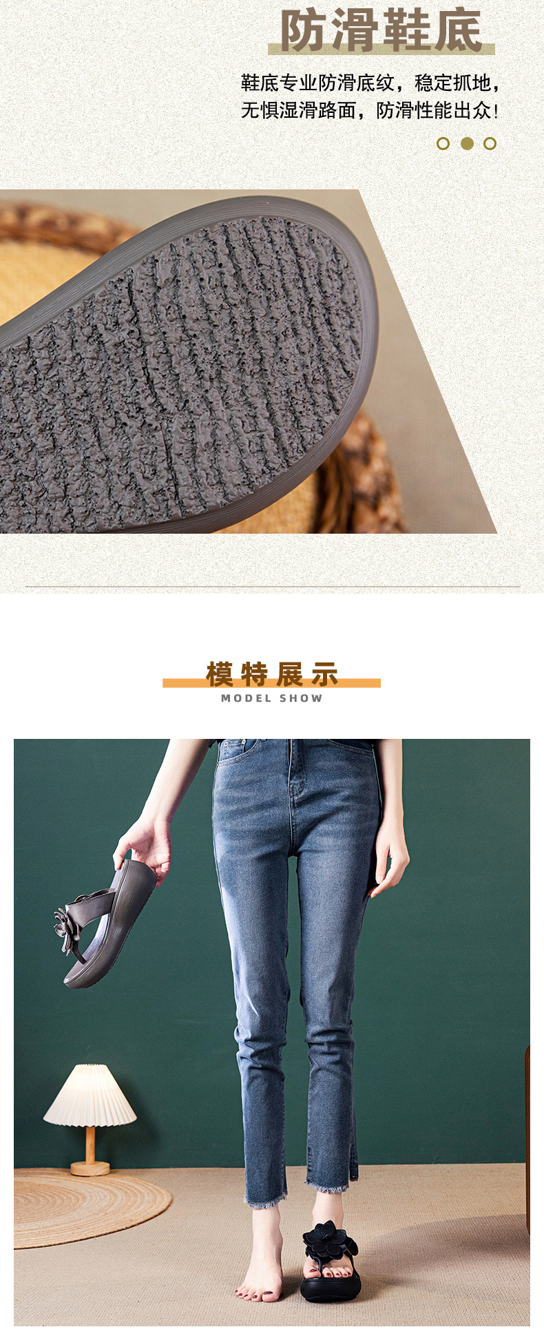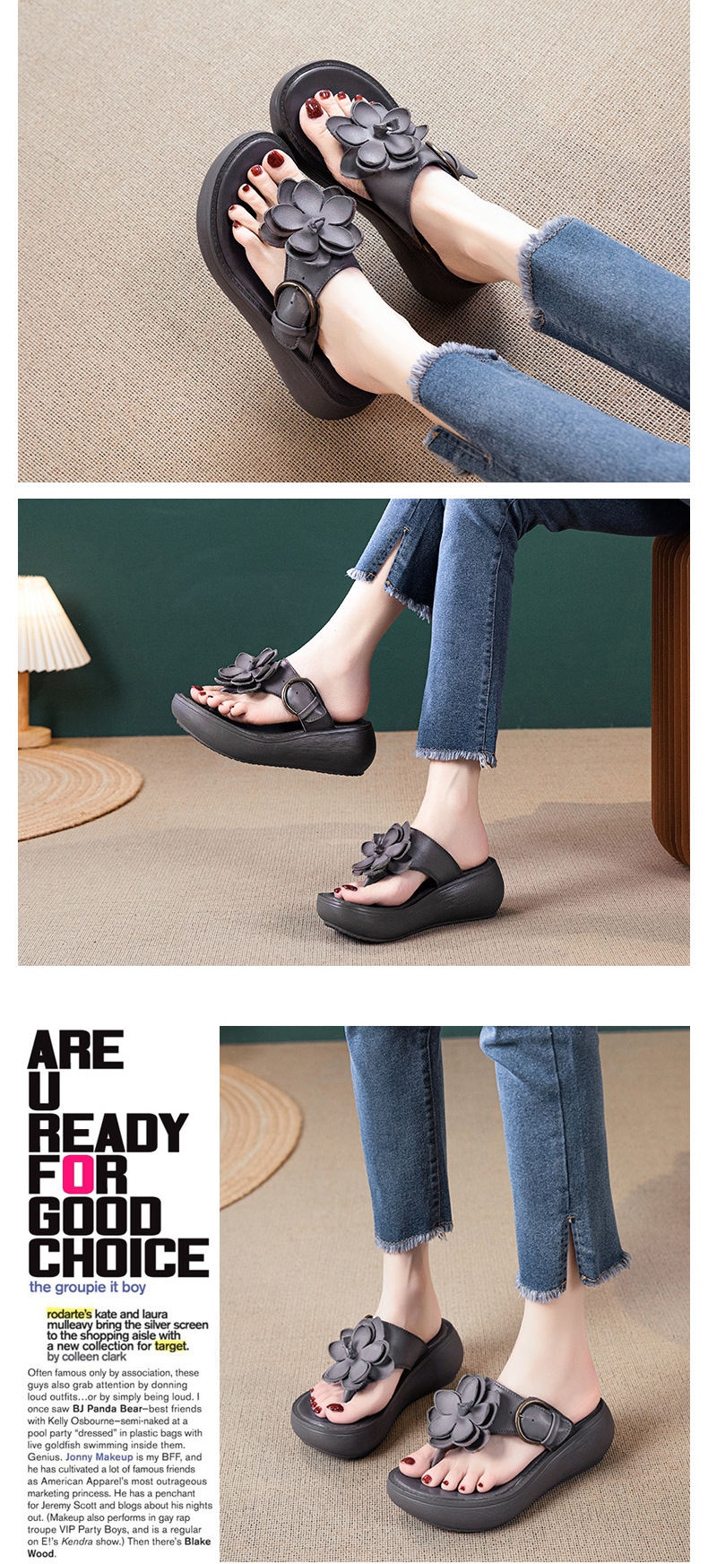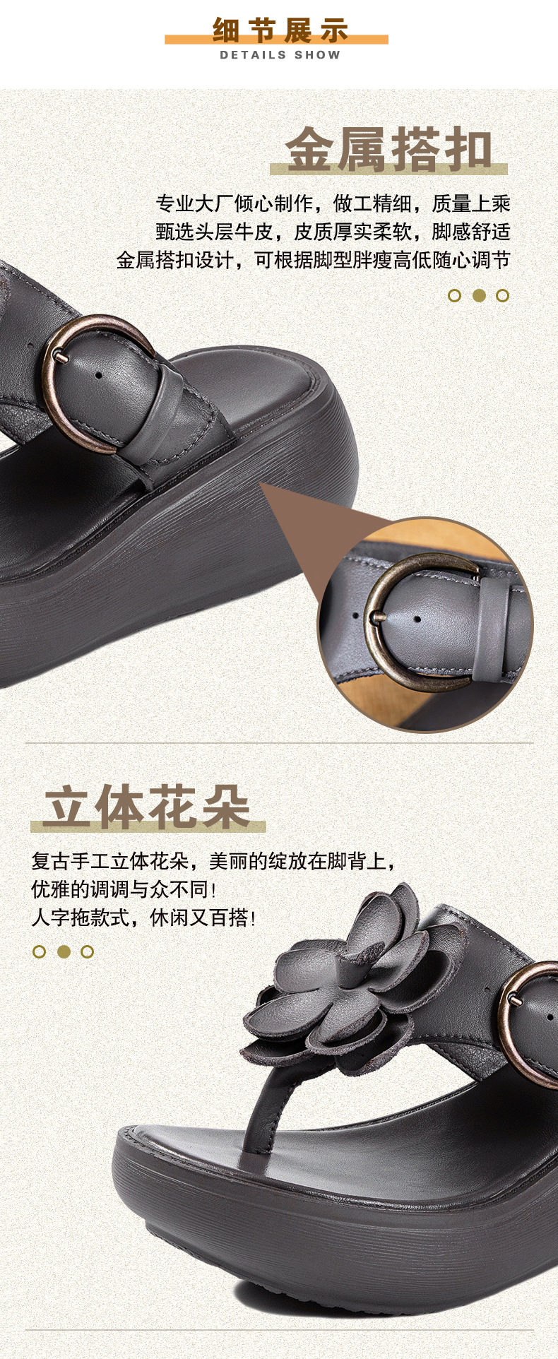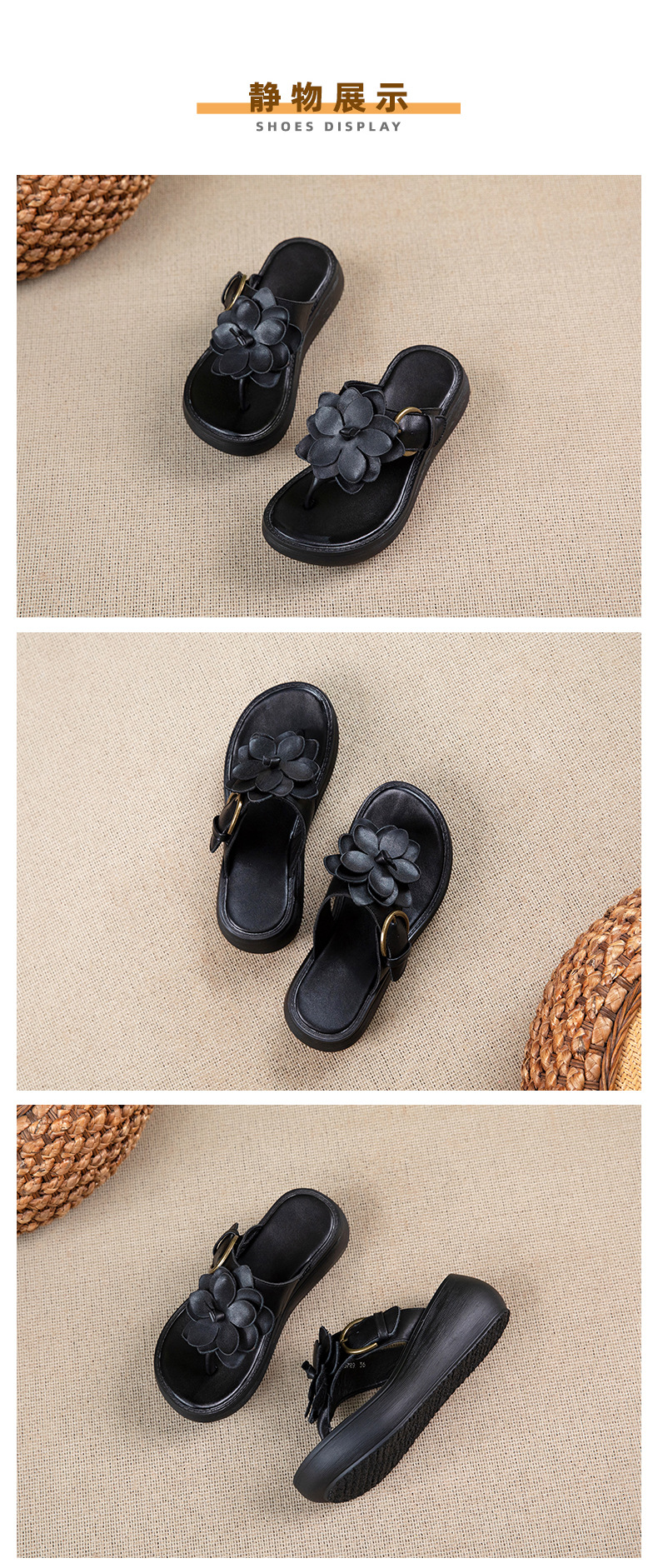 꽃 플립 플롭 여성 패션 여름 새로운 의상 캐주얼 웨지 샌들 가죽 두꺼운 바닥 플립 플롭 증가스토어 가기