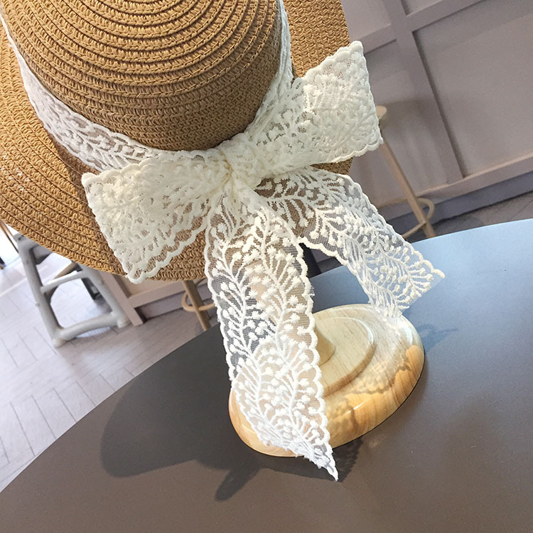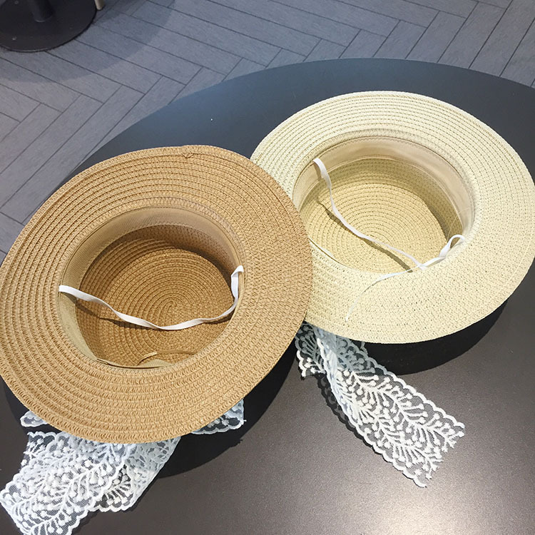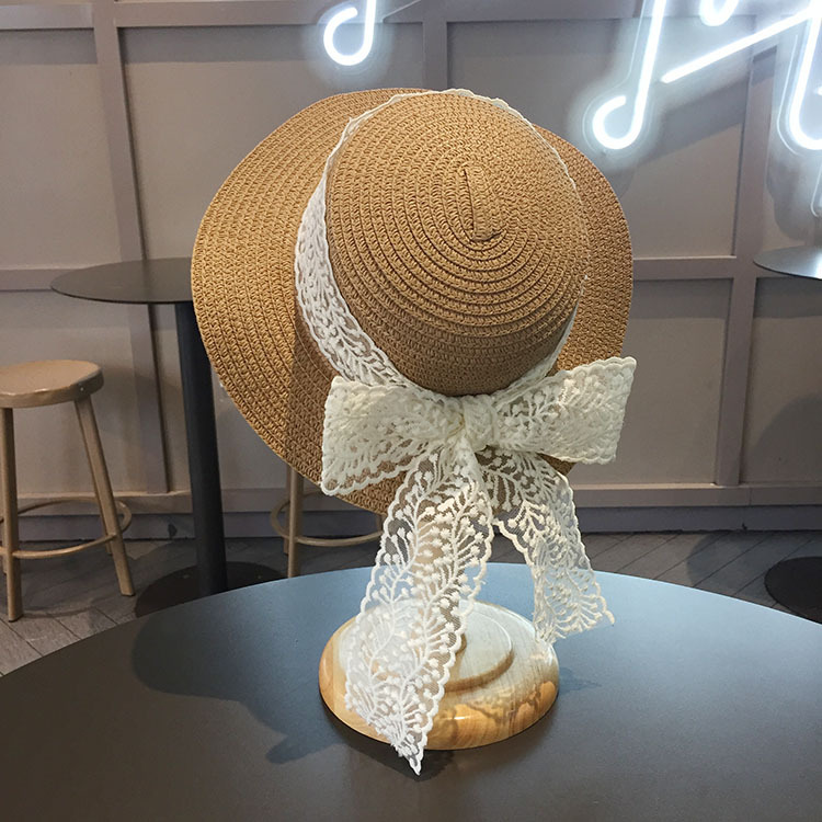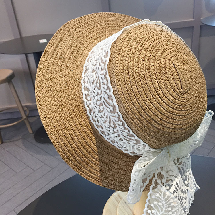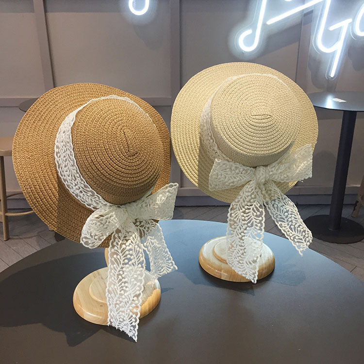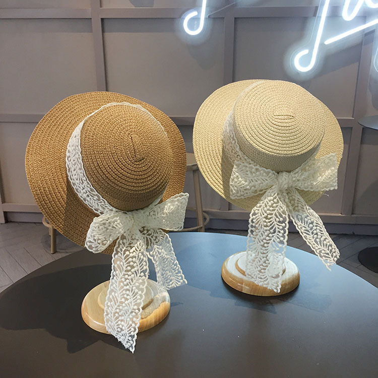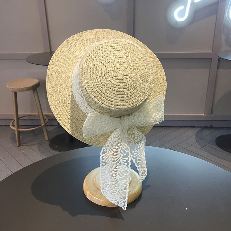 平沿蕾丝蝴蝶结草帽
