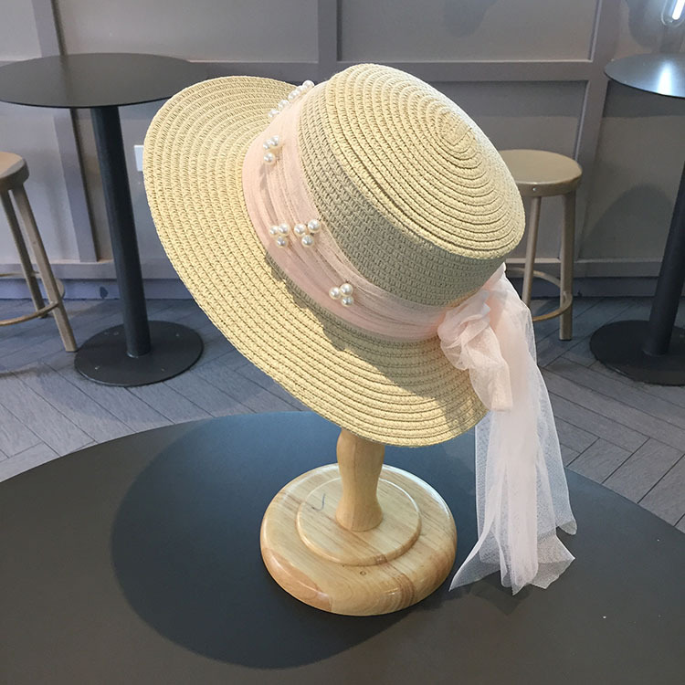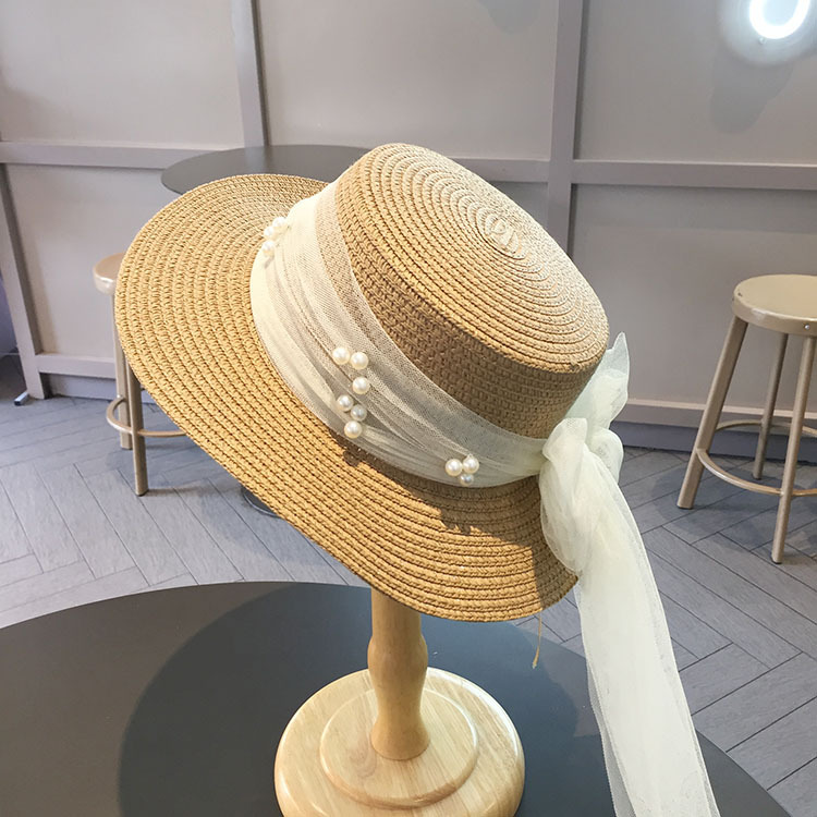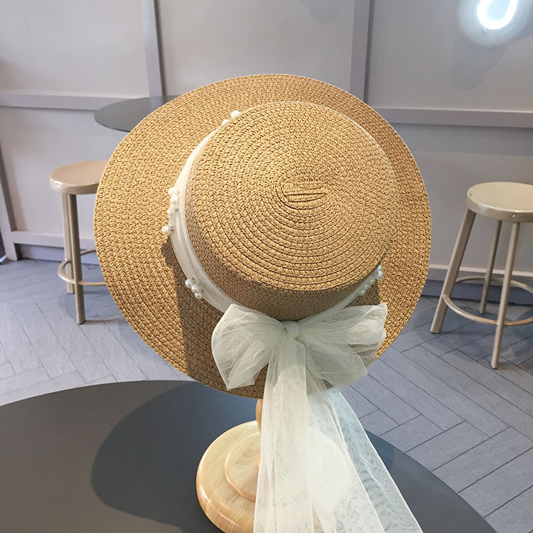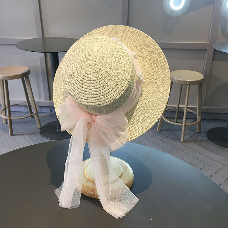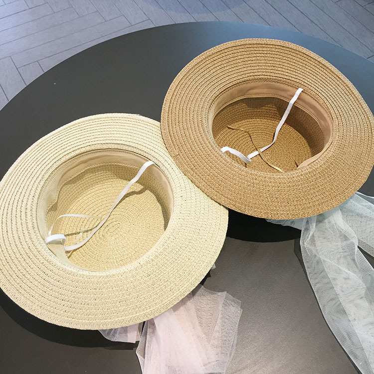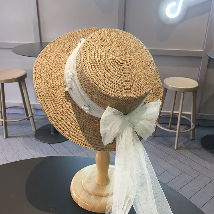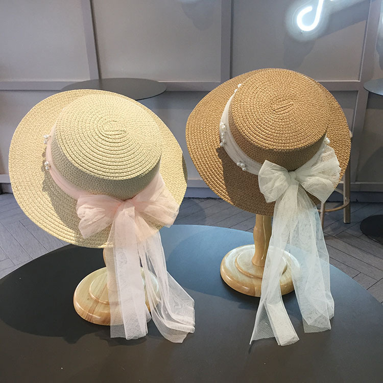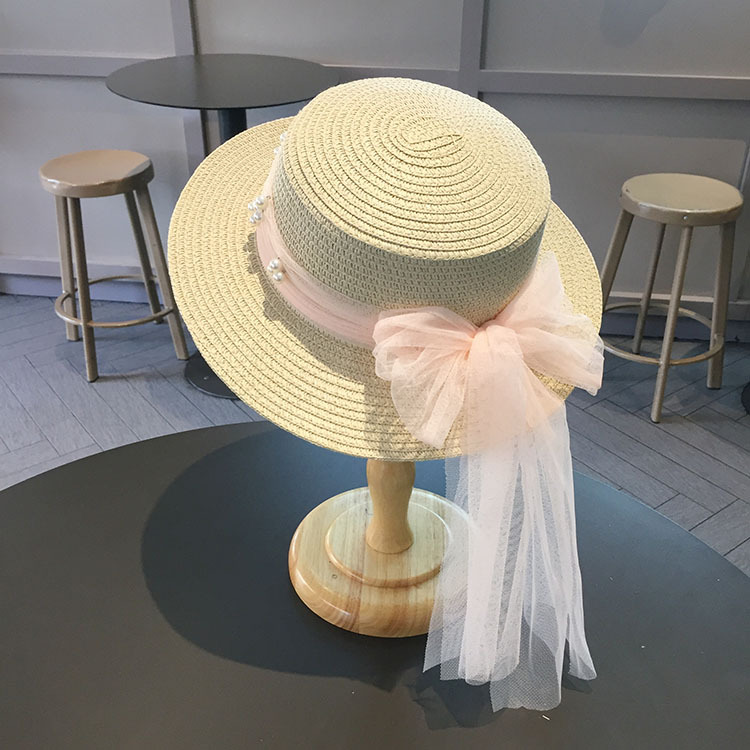 平沿蕾丝蝴蝶结草帽
